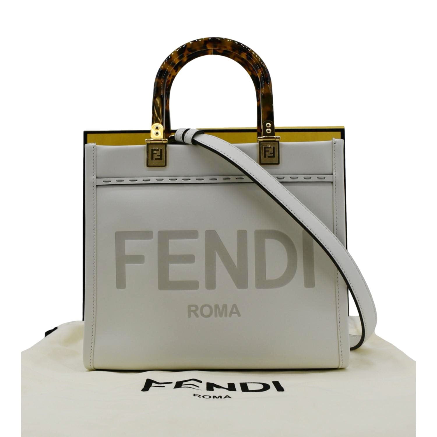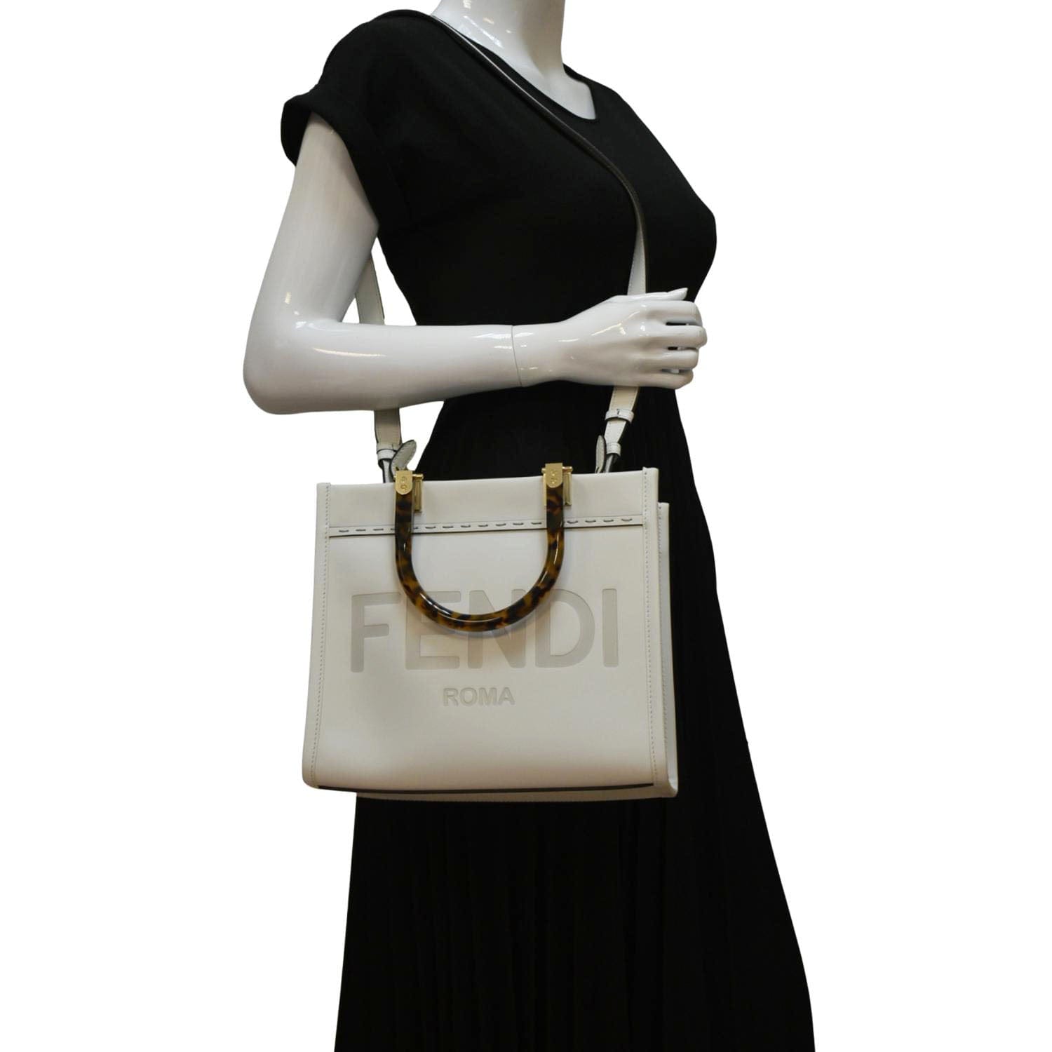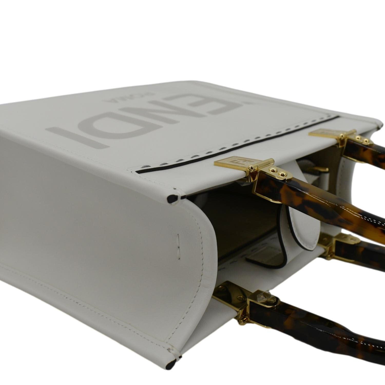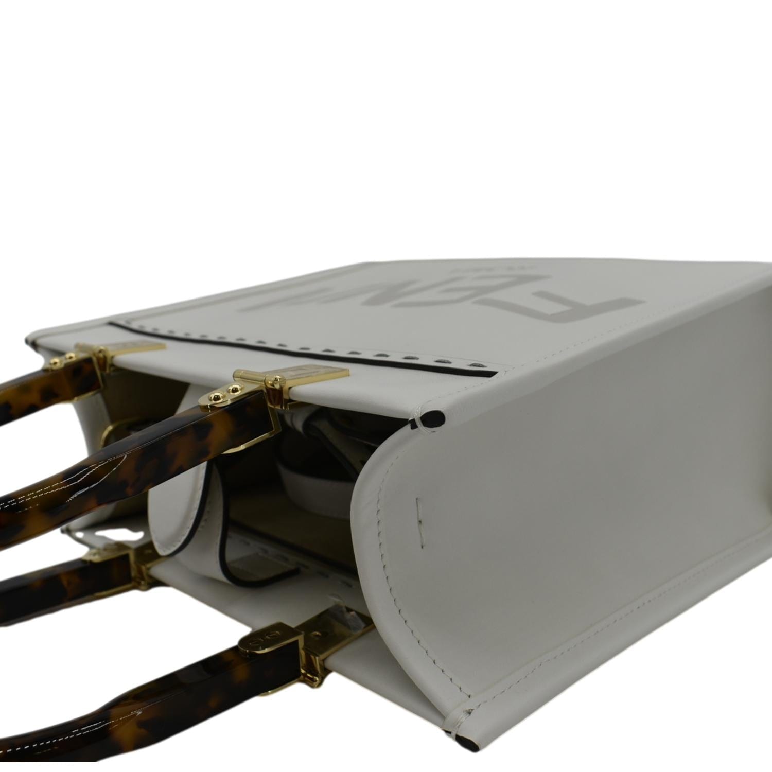 The FENDI Sunshine Small Leather Shoulder Bag in Off White features a sleek and stylish design. Made from high-quality leather, this versatile bag is perfect for both casual and formal occasions.