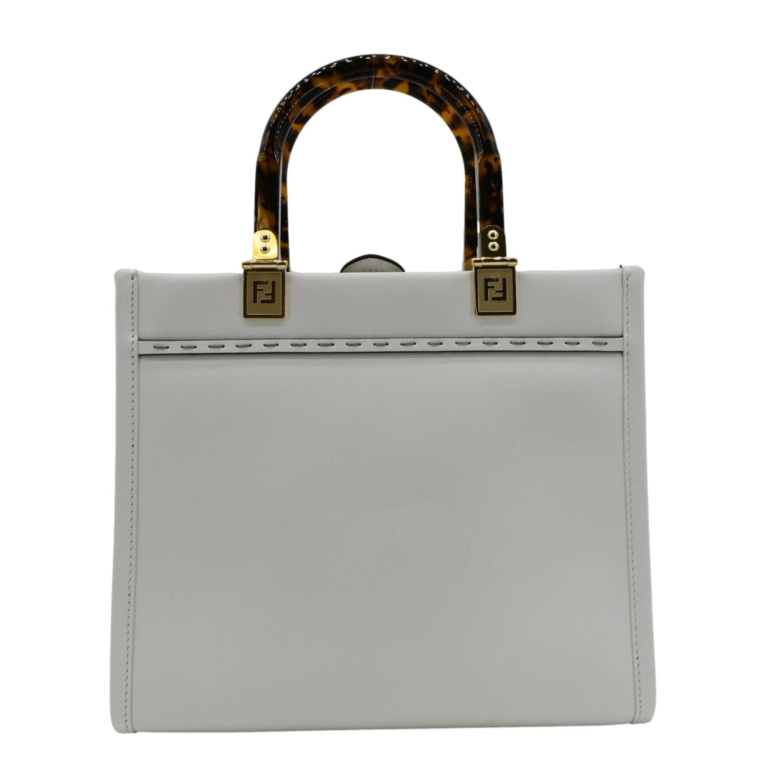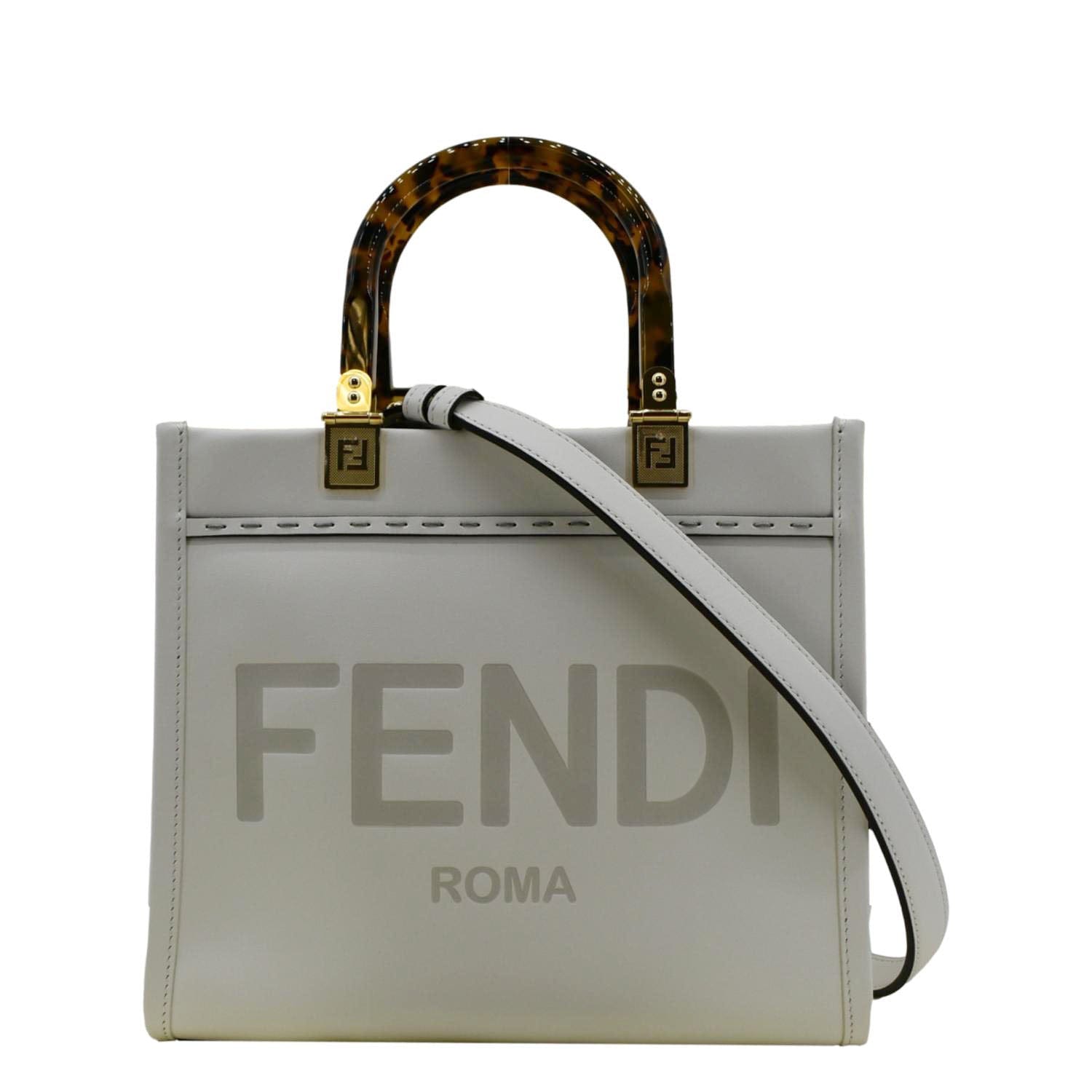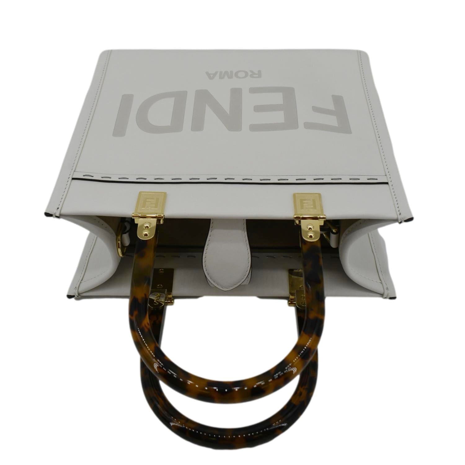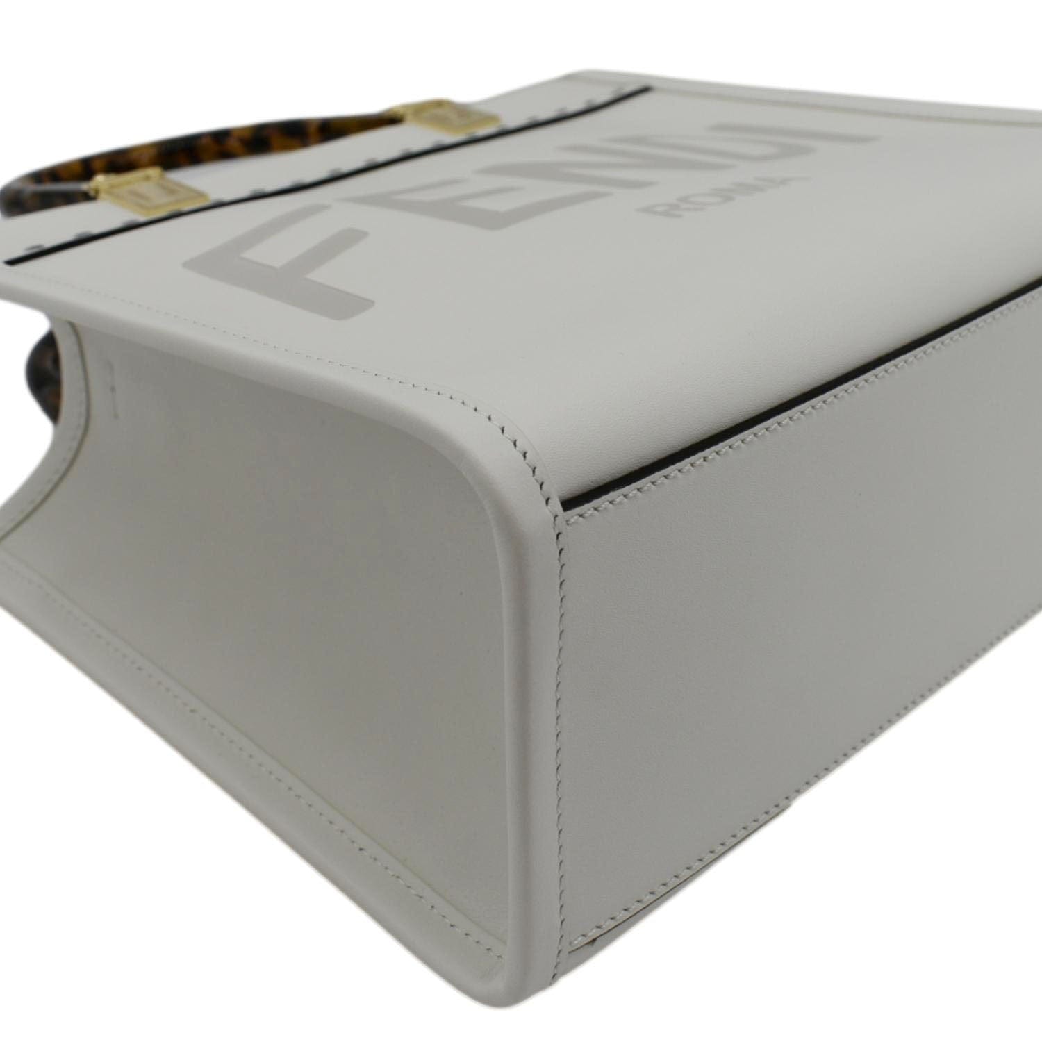 The FENDI Sunshine Small Leather Shoulder Bag in Off White features a sleek and stylish design. Made from high-quality leather, this versatile bag is perfect for both casual and formal occasions.