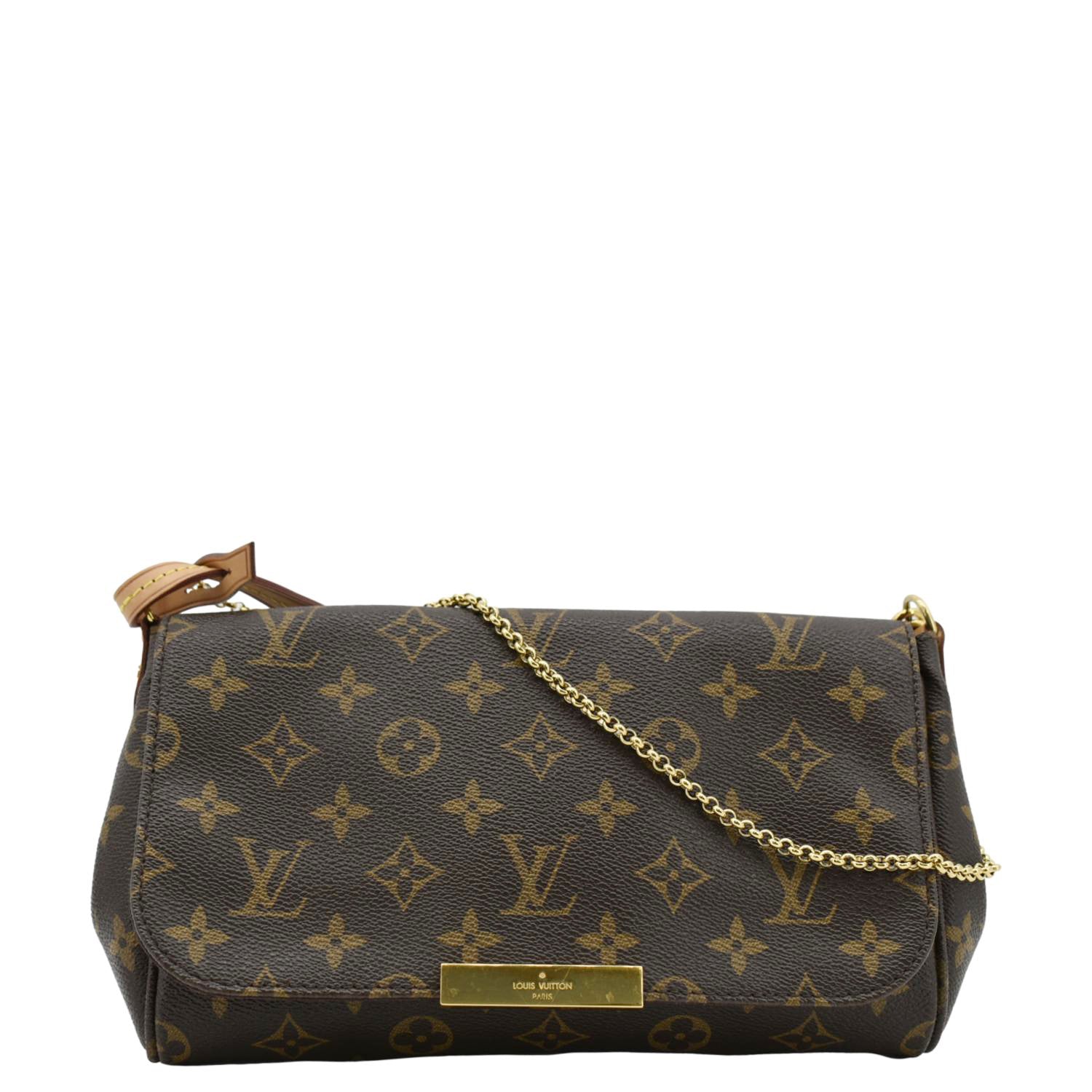 The LOUIS VUITTON Favorite MM Monogram Canvas Crossbody Bag in Brown is a versatile and stylish accessory. It features the iconic monogram canvas, a gold-tone chain strap, and a magnetic flap closure, making it perfect for both casual and formal occasions.