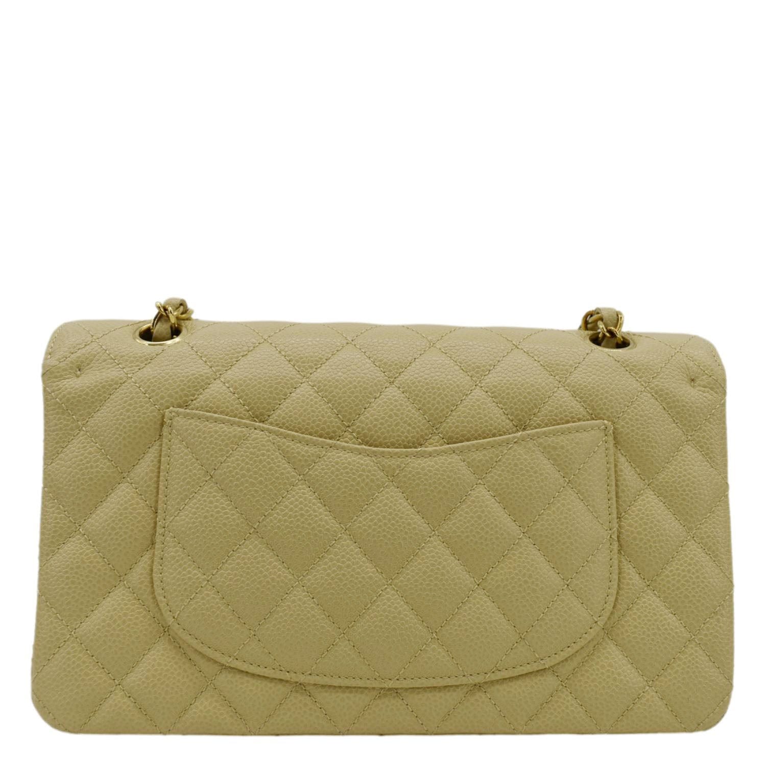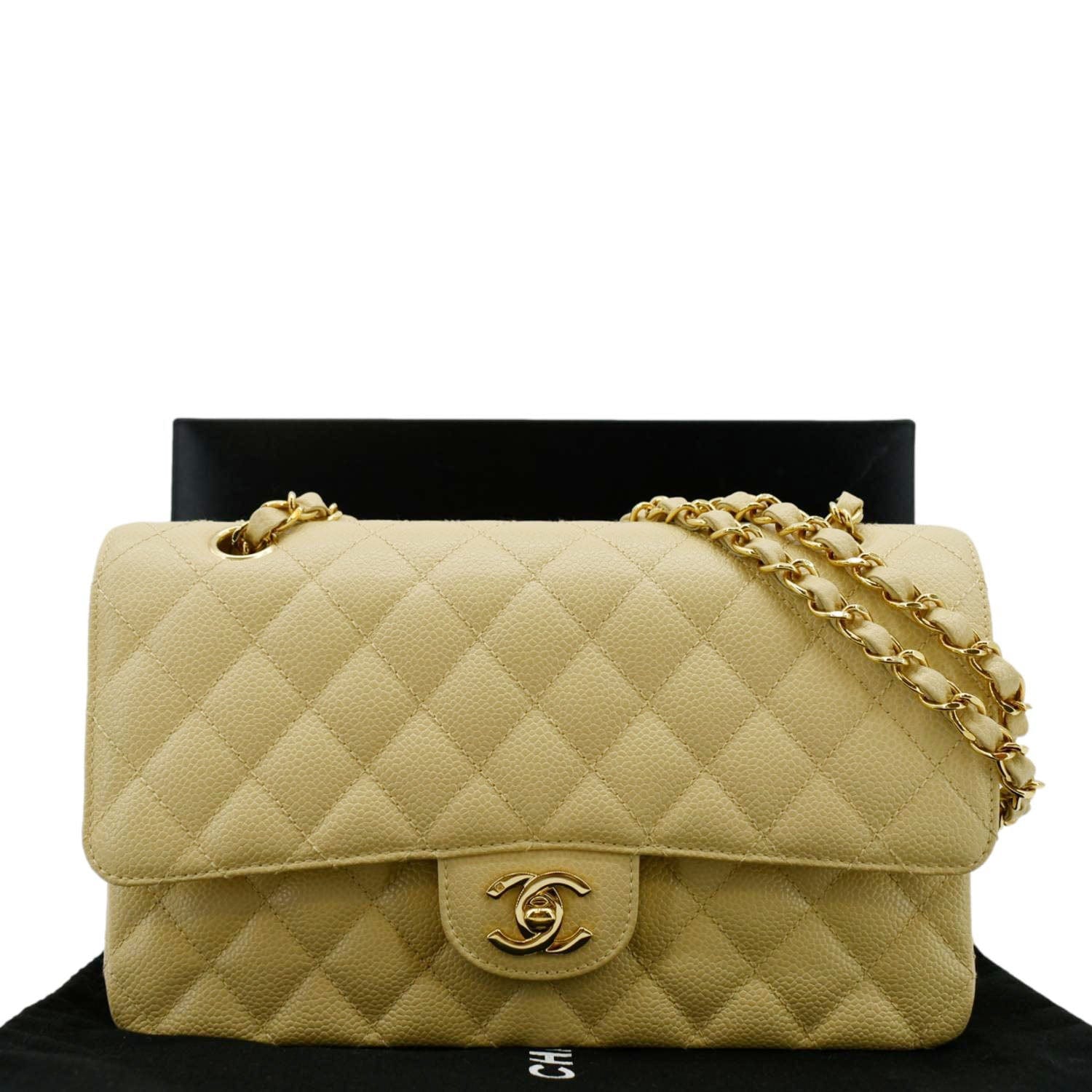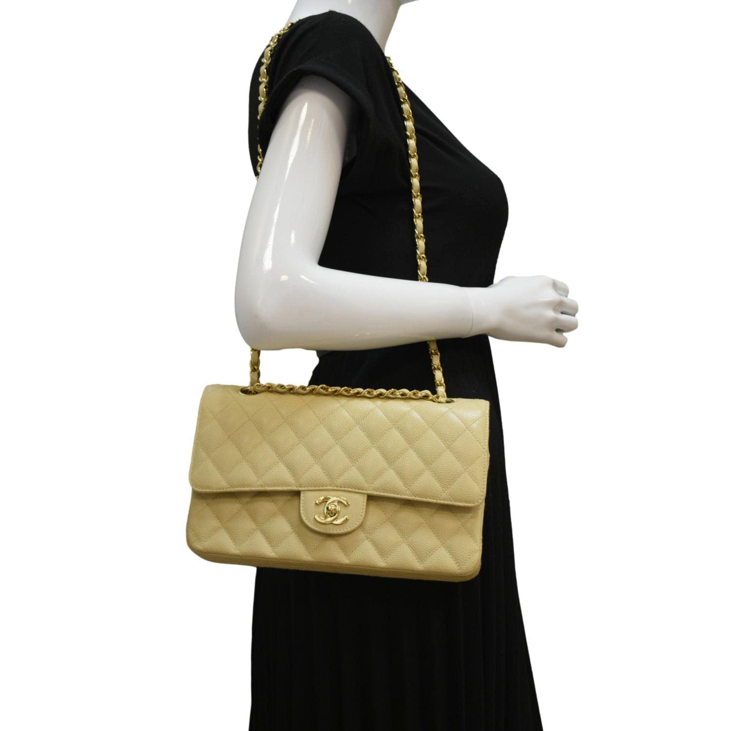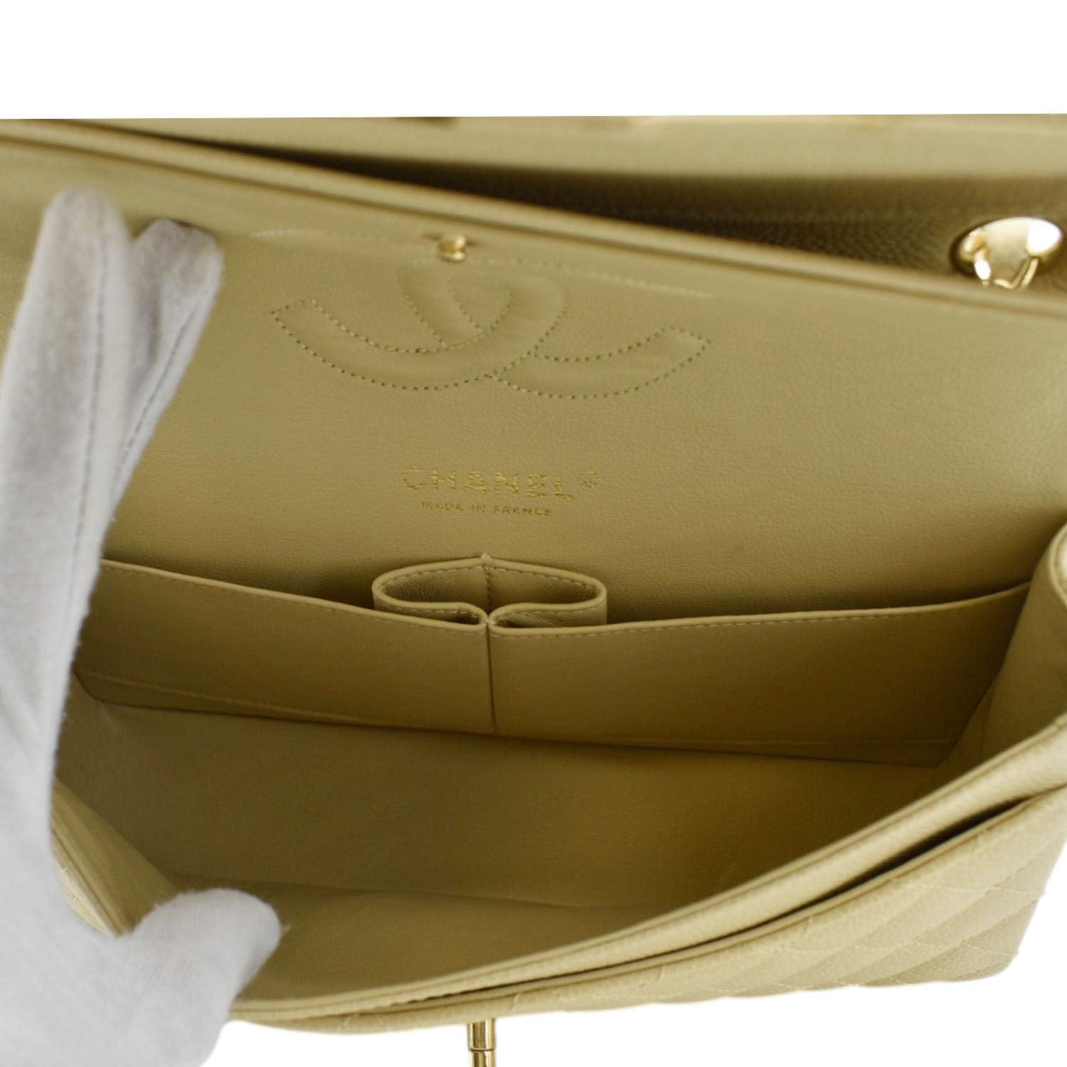 CHANEL Classic Caviar Leather Double Flap Cream Shoulder Bag
