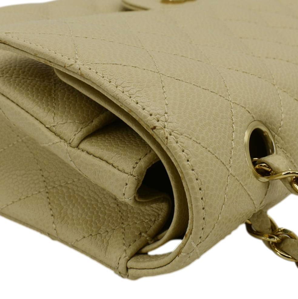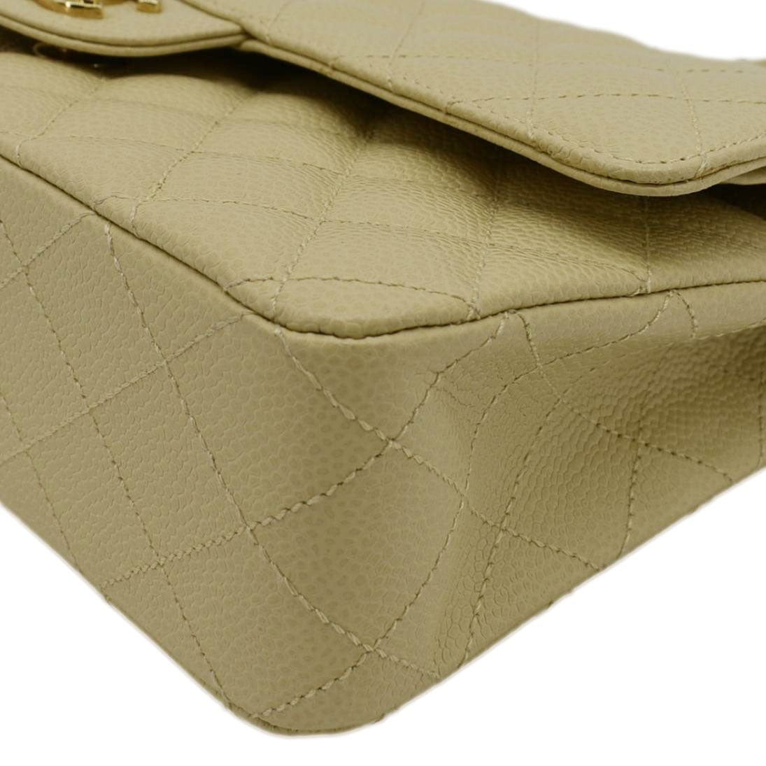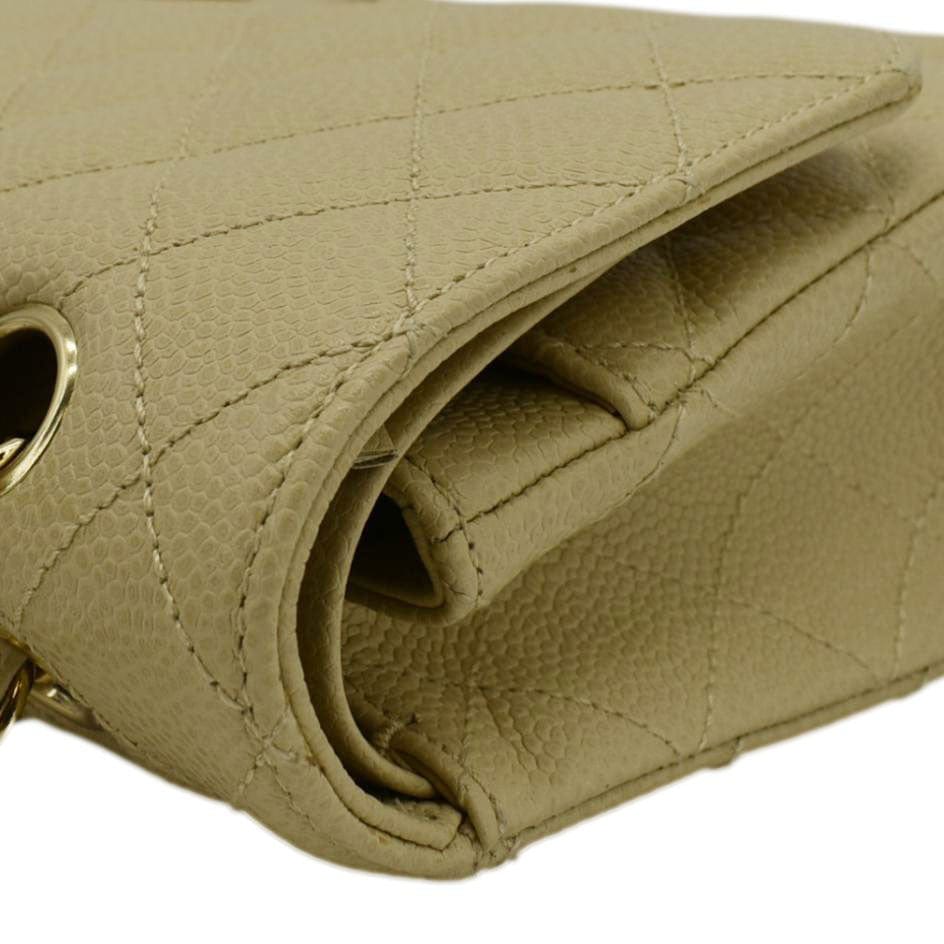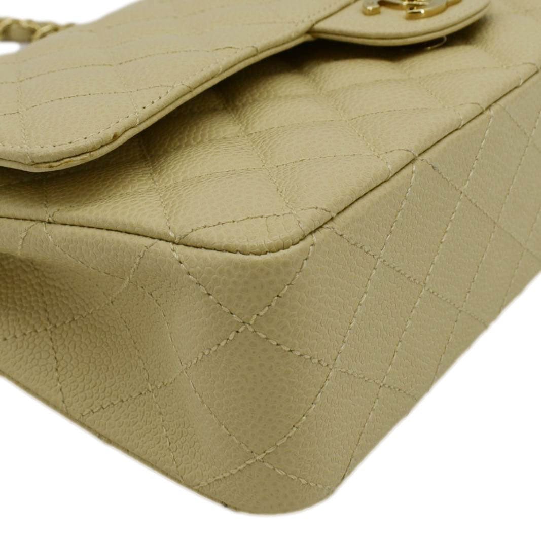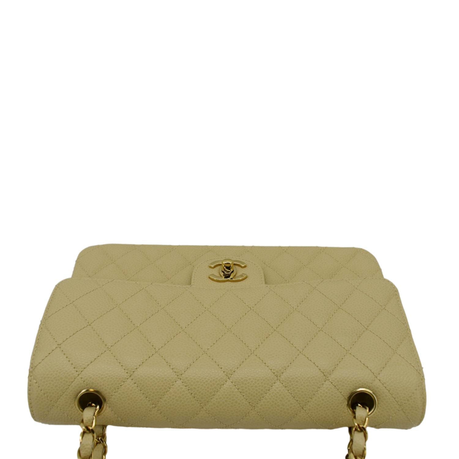 CHANEL Classic Caviar Leather Double Flap Cream Shoulder Bag