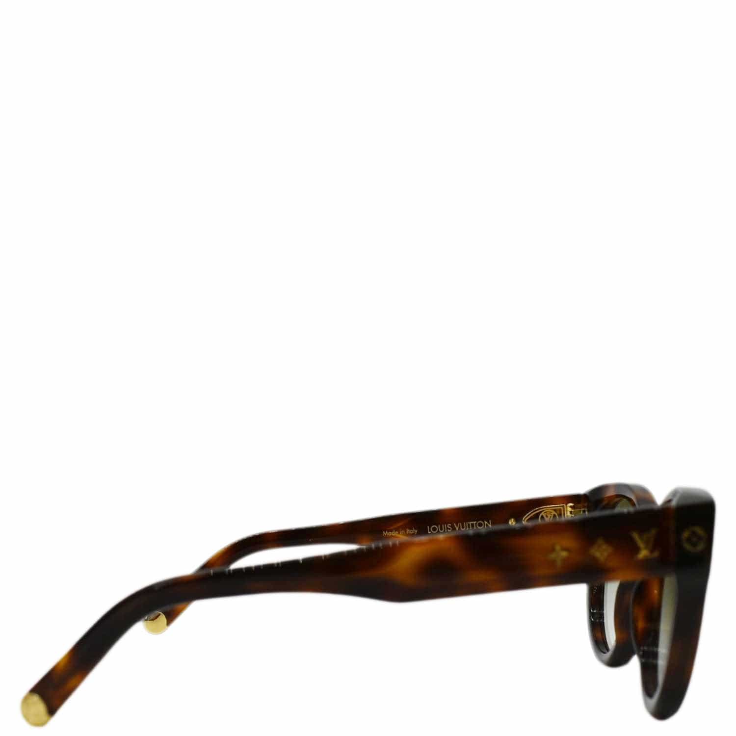 The "LOUIS VUITTON My Monogram Z1527W Round Sunglasses Brown Green Lens" showcases a classic round frame with brown accents and green lenses. These sunglasses combine timeless elegance with the iconic Louis Vuitton monogram detail, perfect for a stylish and sophisticated look.