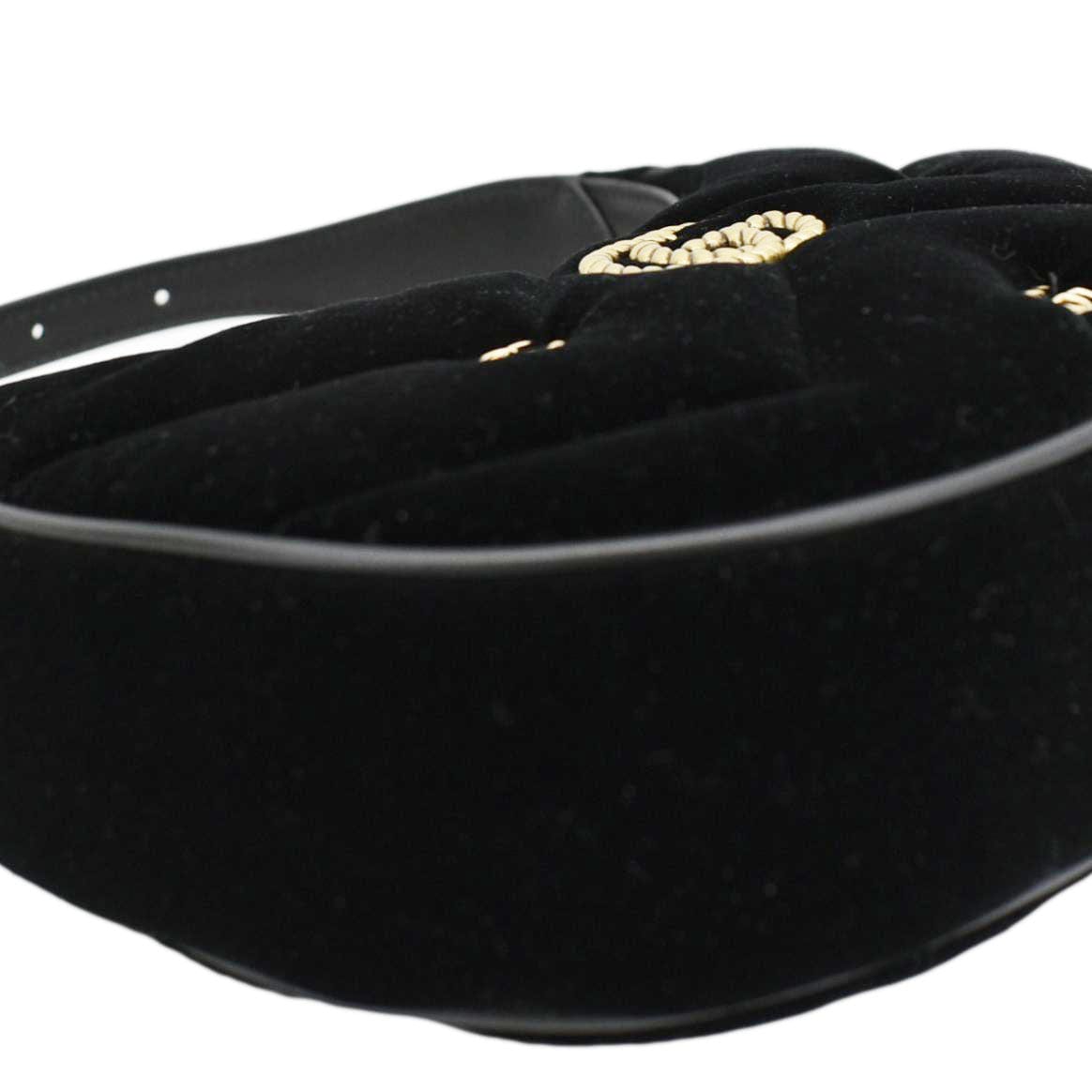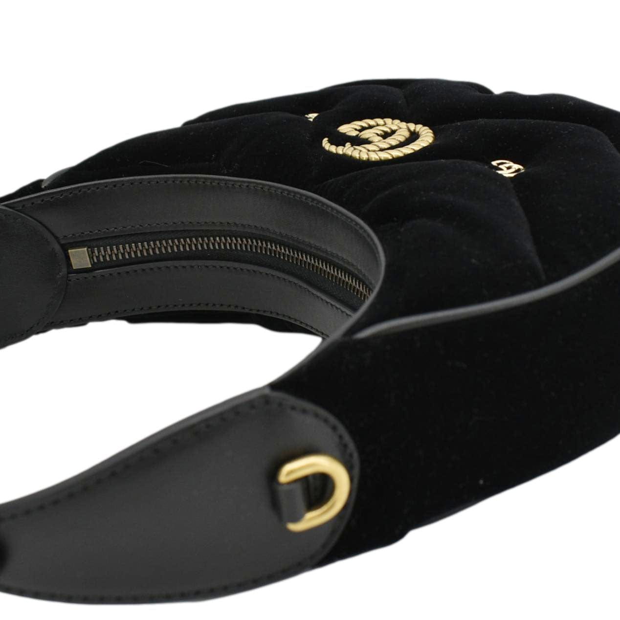 GUCCI Leather GG Marmont Half Moon Mini Black Shoulder Bag