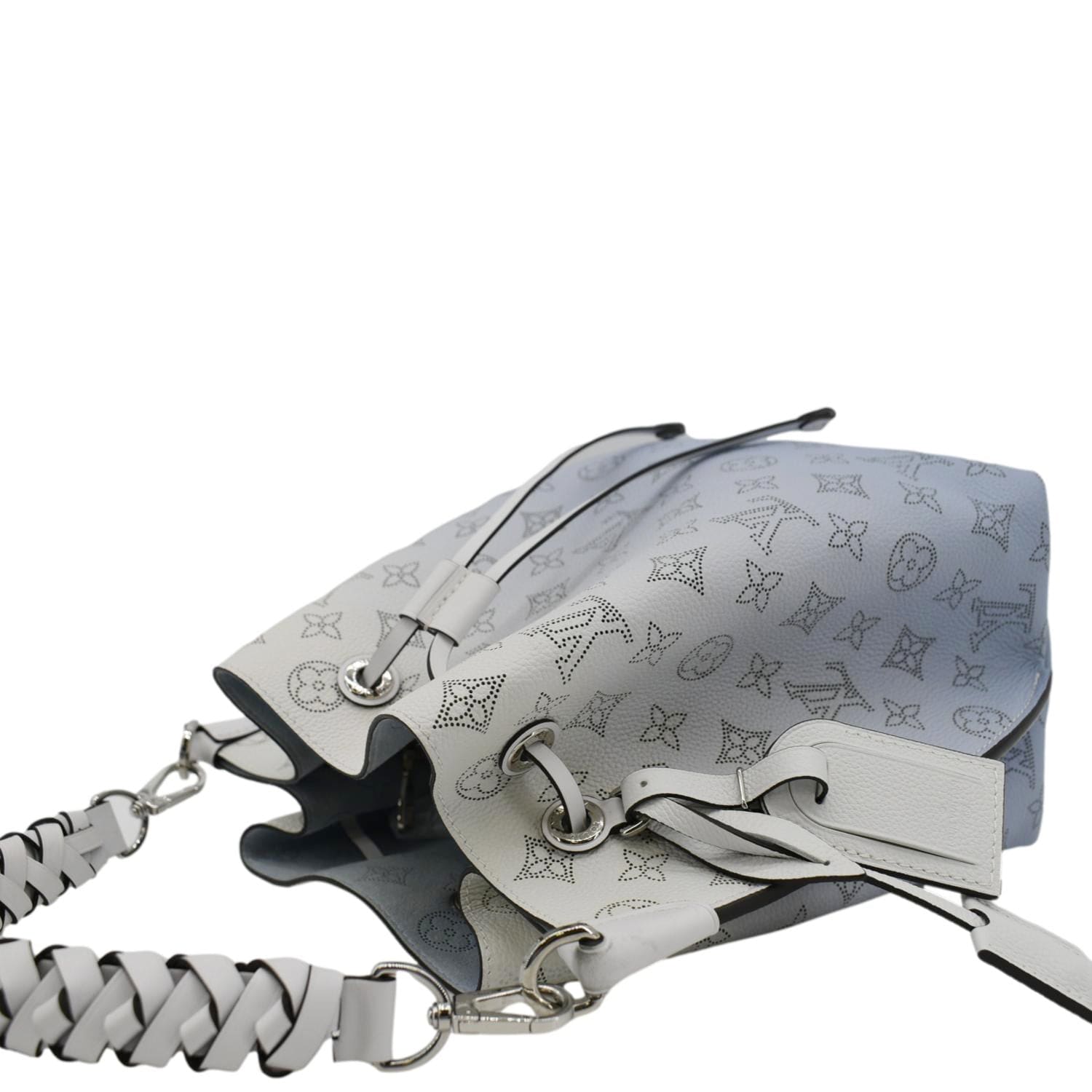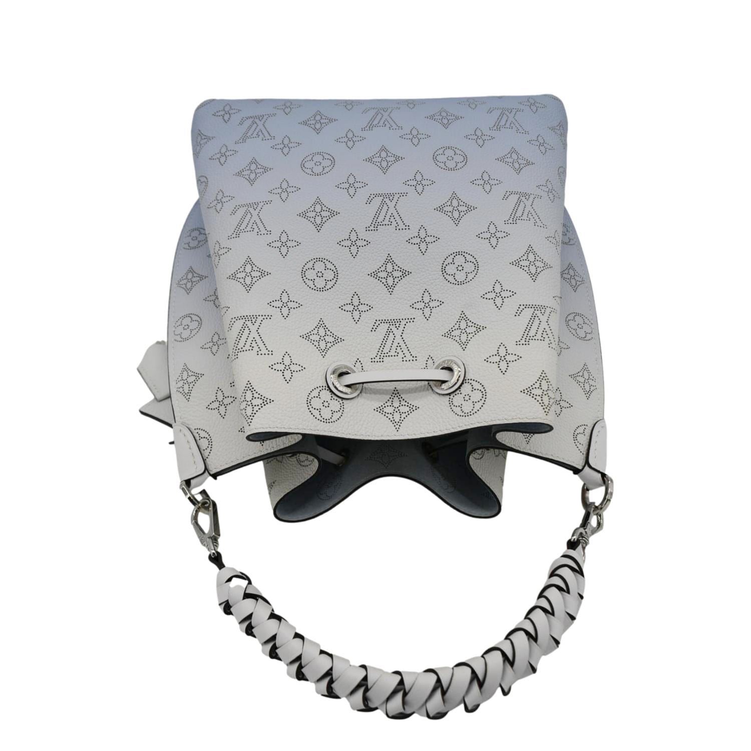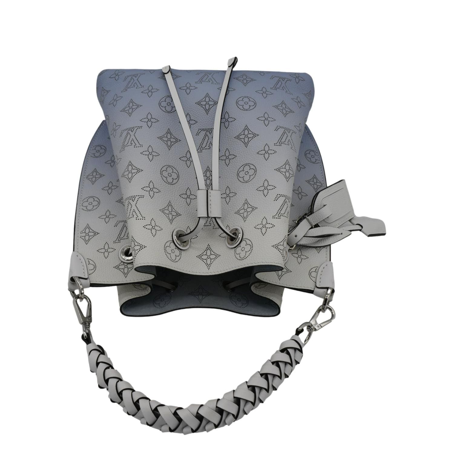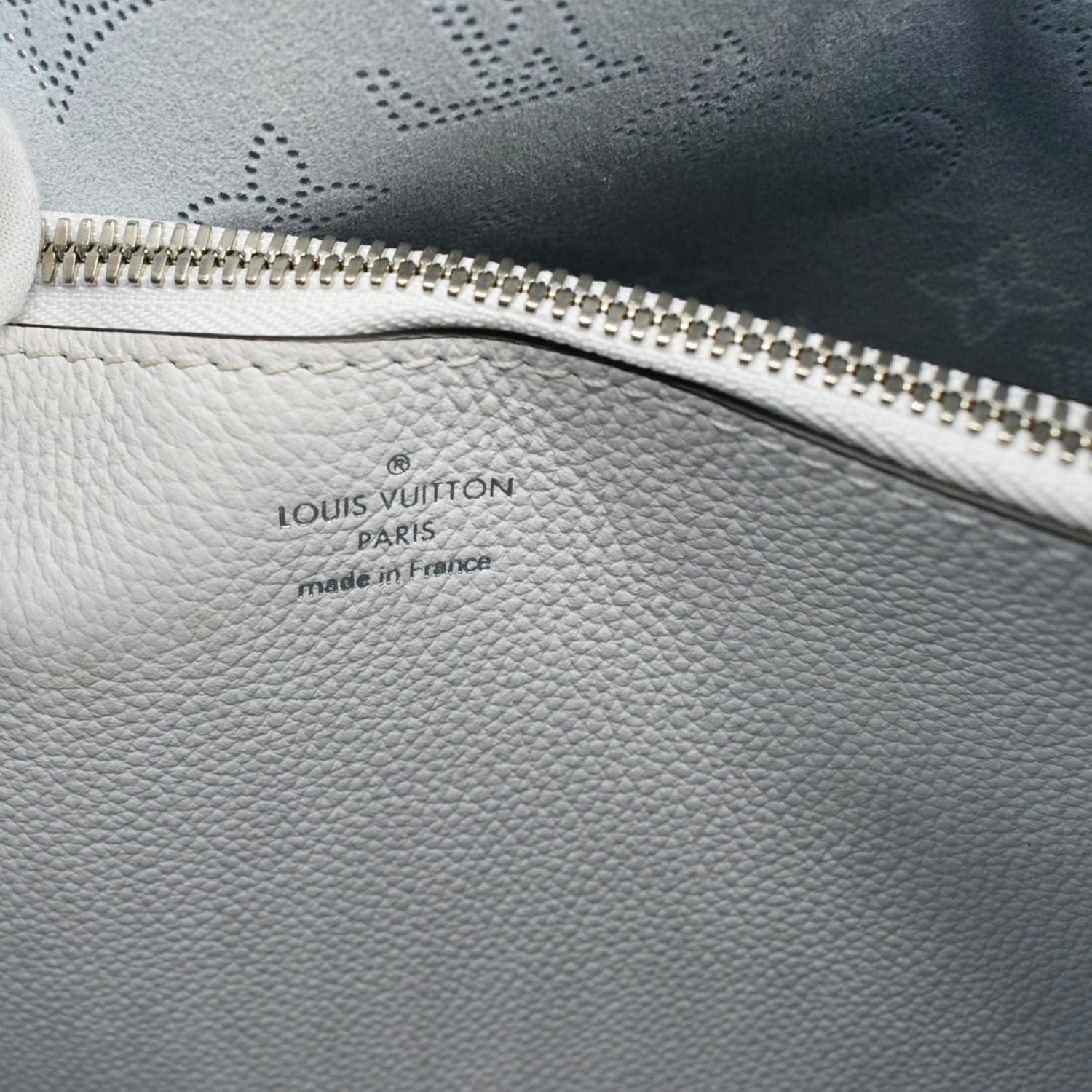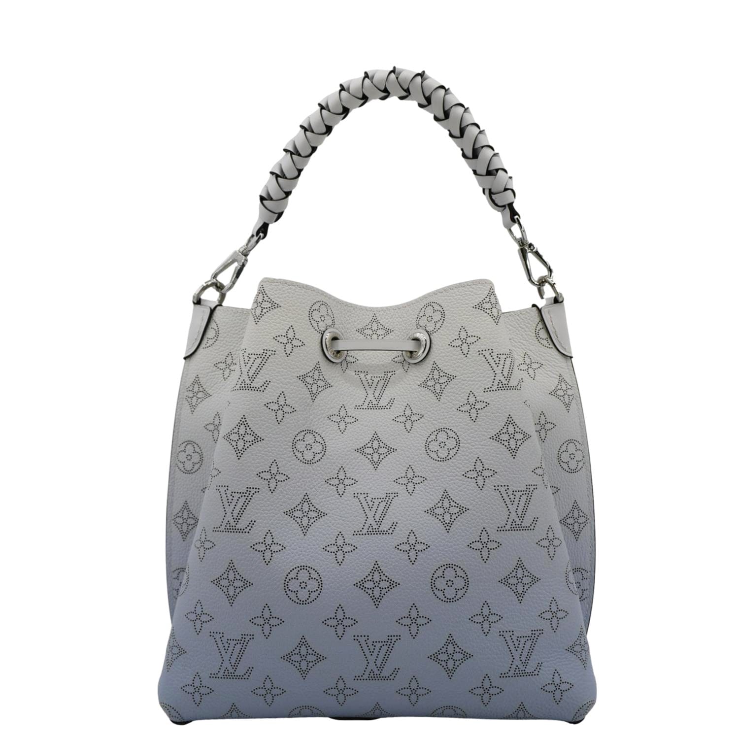 LOUIS VUITTON Muria Mahina Perforated Leather Shoulder Bag Light Blue" is an elegant shoulder bag crafted from perforated leather, showcasing Louis Vuitton's signature Mahina design, ideal for adding a touch of luxury to any ensemble.