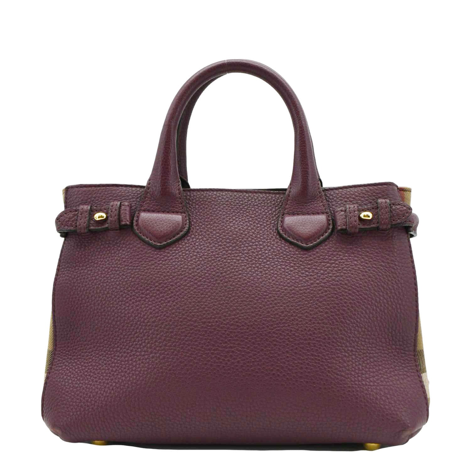 BURBERRY House Check Leather Banner Small Maroon Shoulder Bag