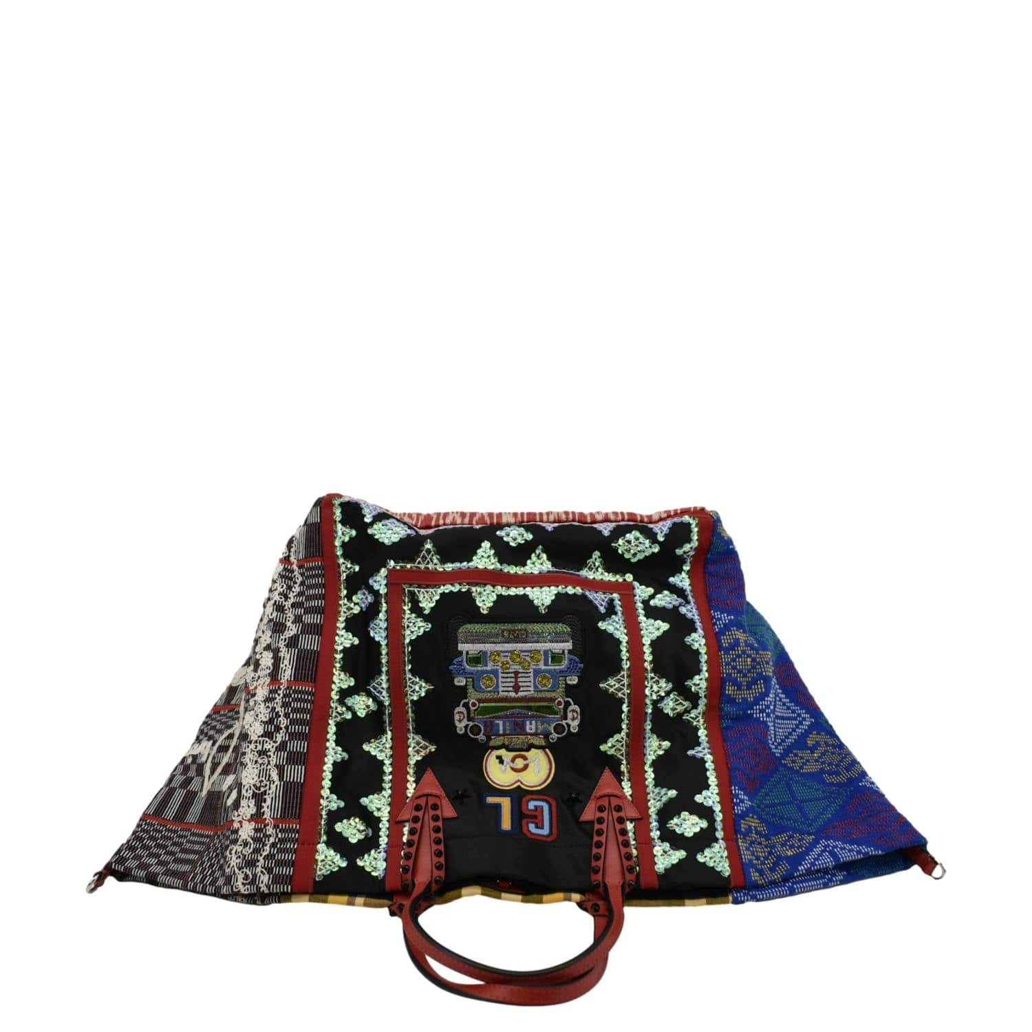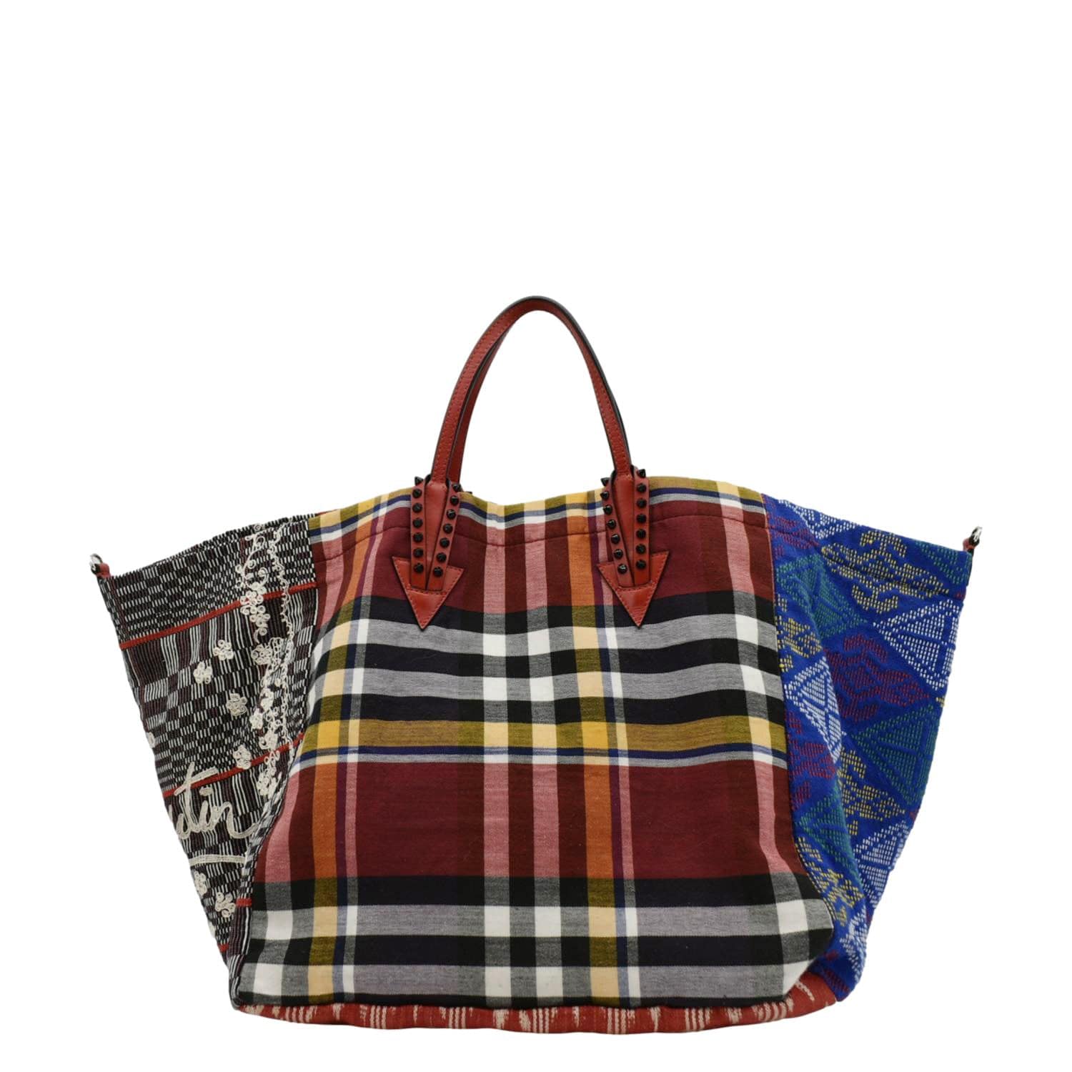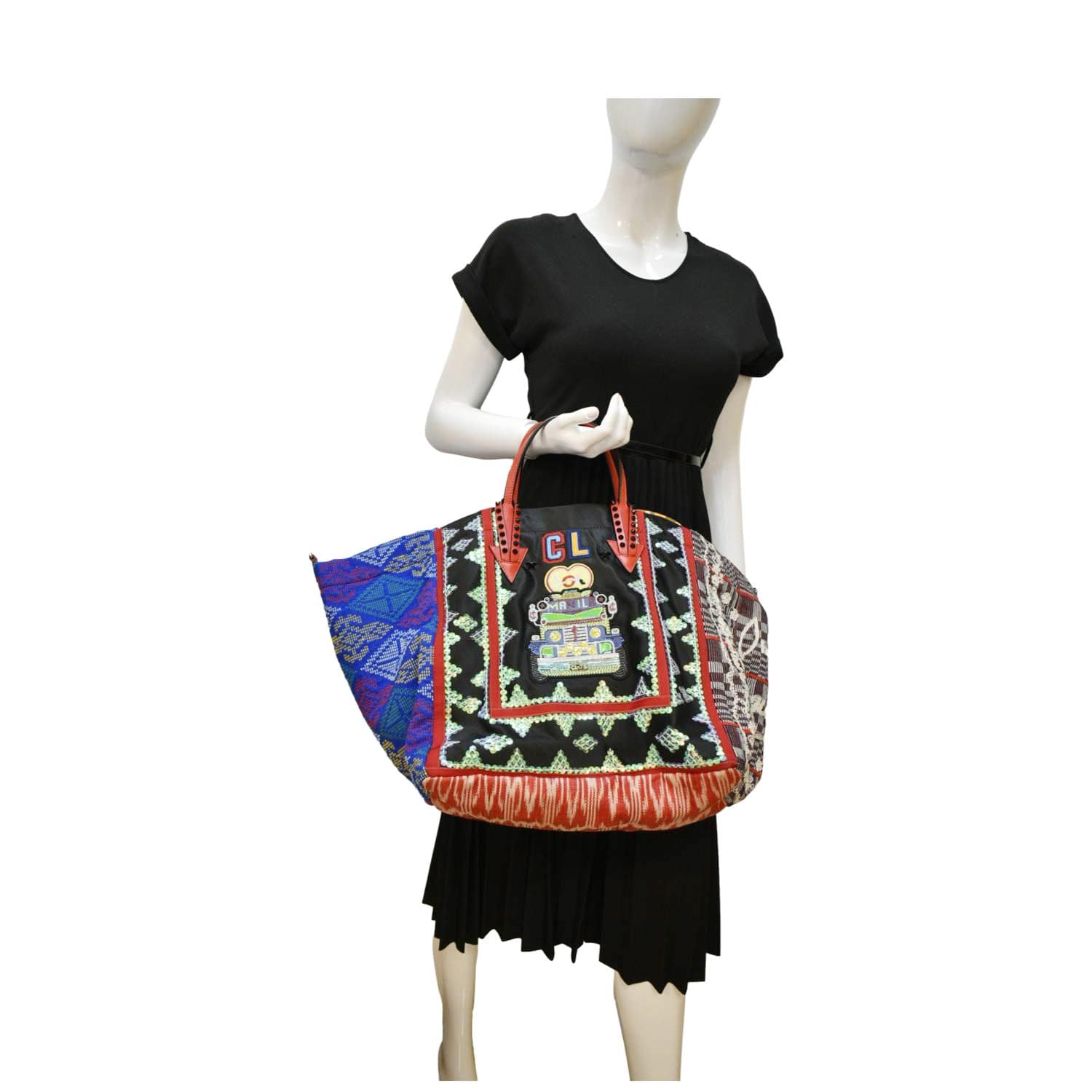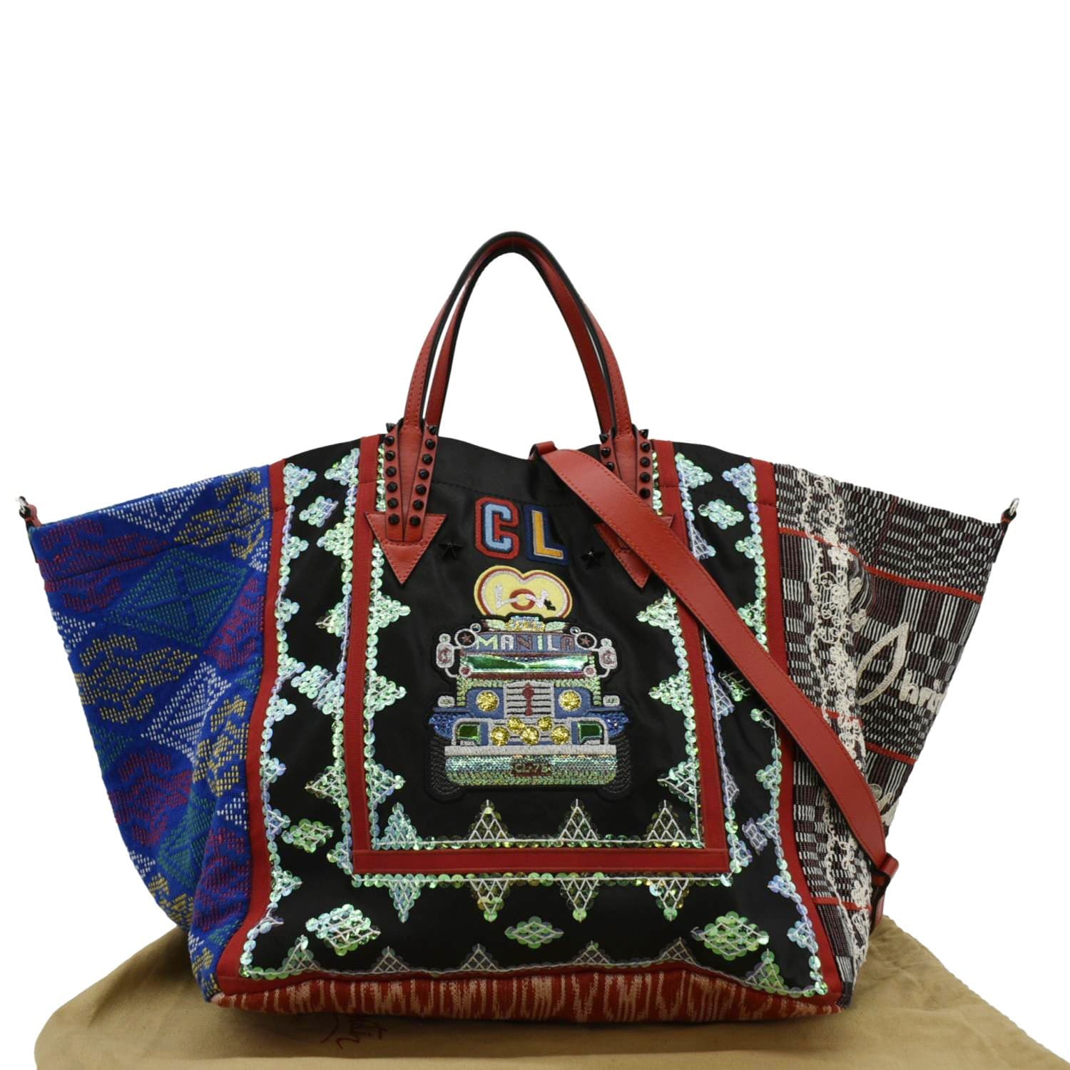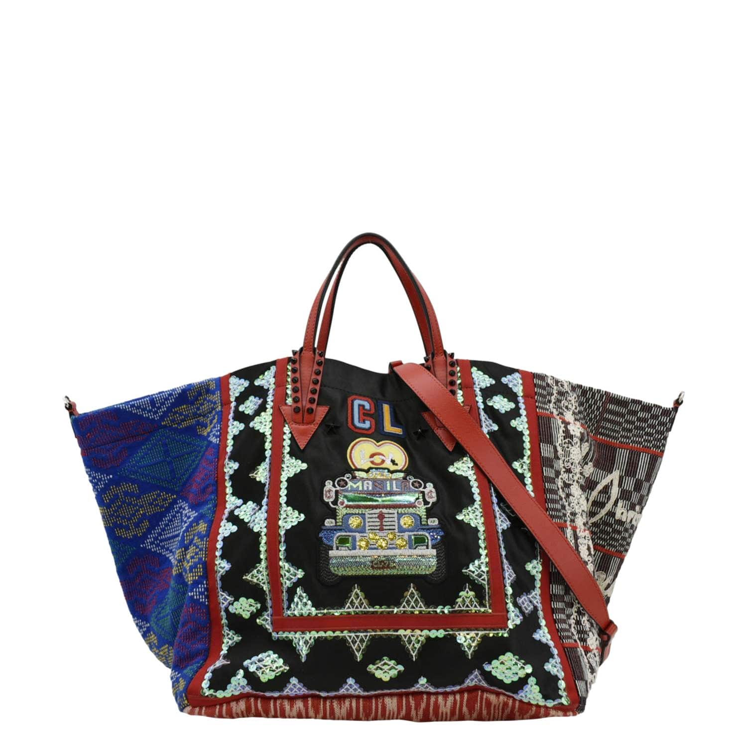 The Christian Louboutin Manila Caba Embroidered Jacquard Tote Bag in Multicolor is a vibrant and eye-catching accessory. Featuring intricate embroidery on jacquard fabric, this tote bag combines bold patterns with luxurious design, making it a standout piece for any fashion-forward wardrobe.