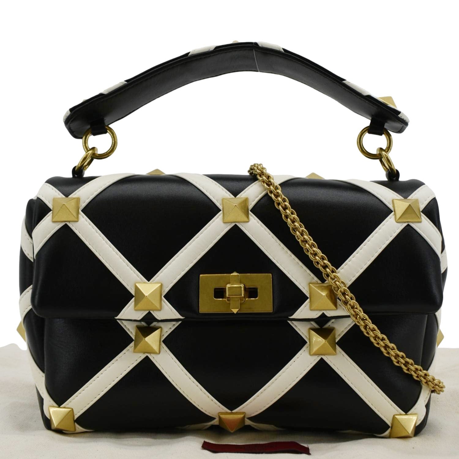 The VALENTINO Garavani Roman Stud Leather Crossbody Bag in Black is a chic and elegant accessory, featuring luxurious leather adorned with signature Roman studs and a versatile crossbody strap for hands-free convenience.