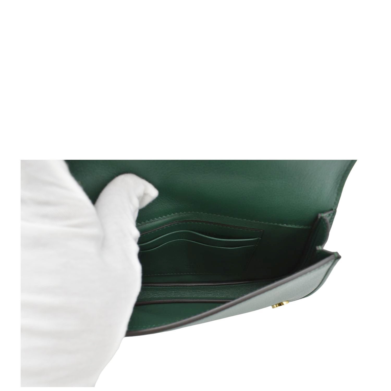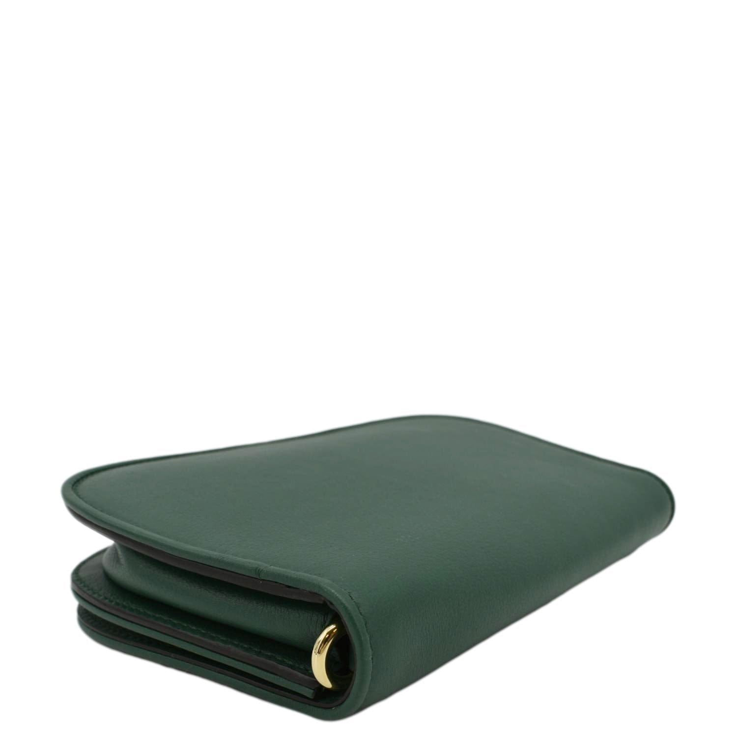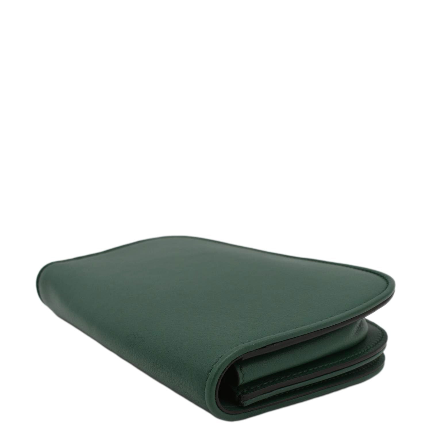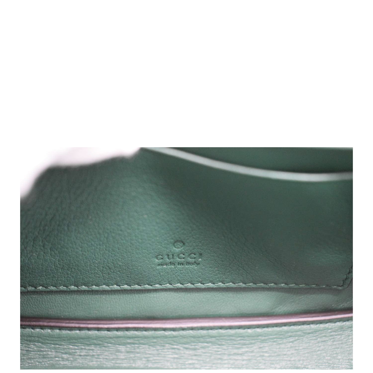 The Gucci Mini Blondie Wallet in Green, model 698630, is crafted from Leather. This compact wallet features a striking green hue and the iconic GG logo, combining style and practicality for everyday use.