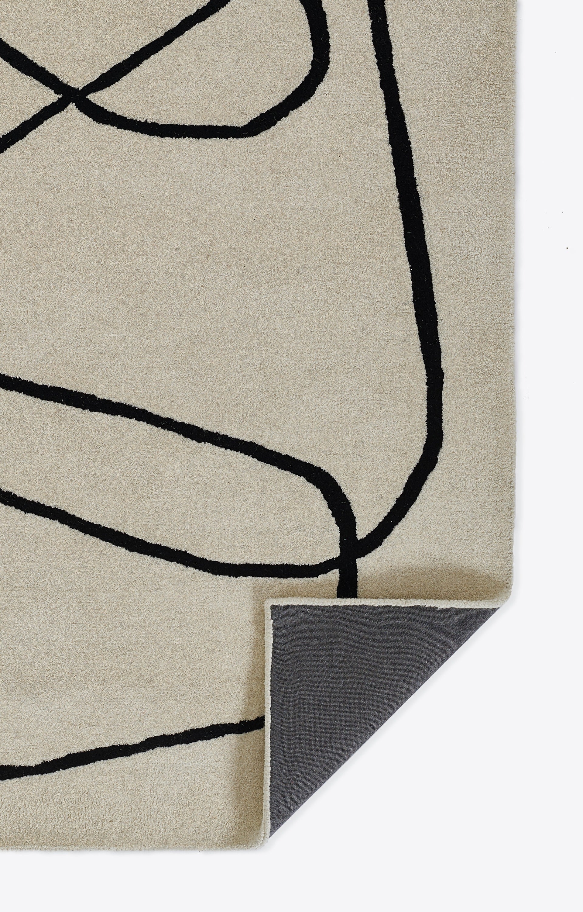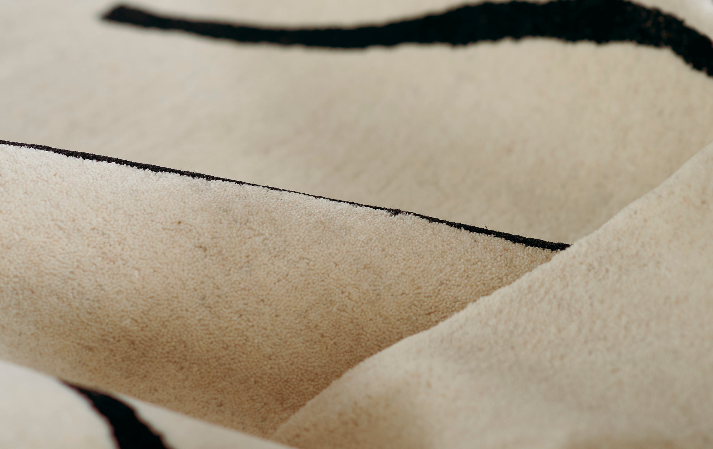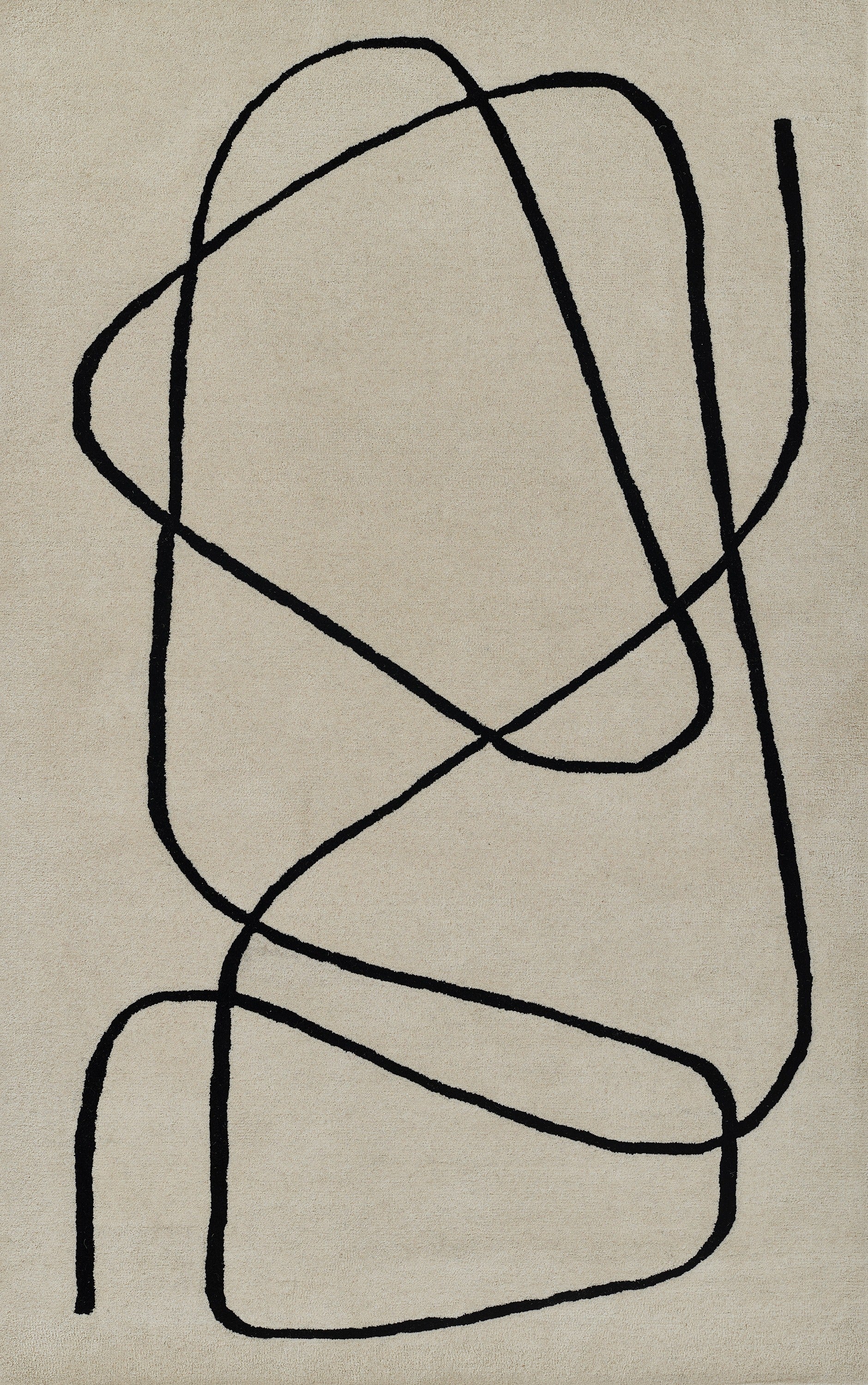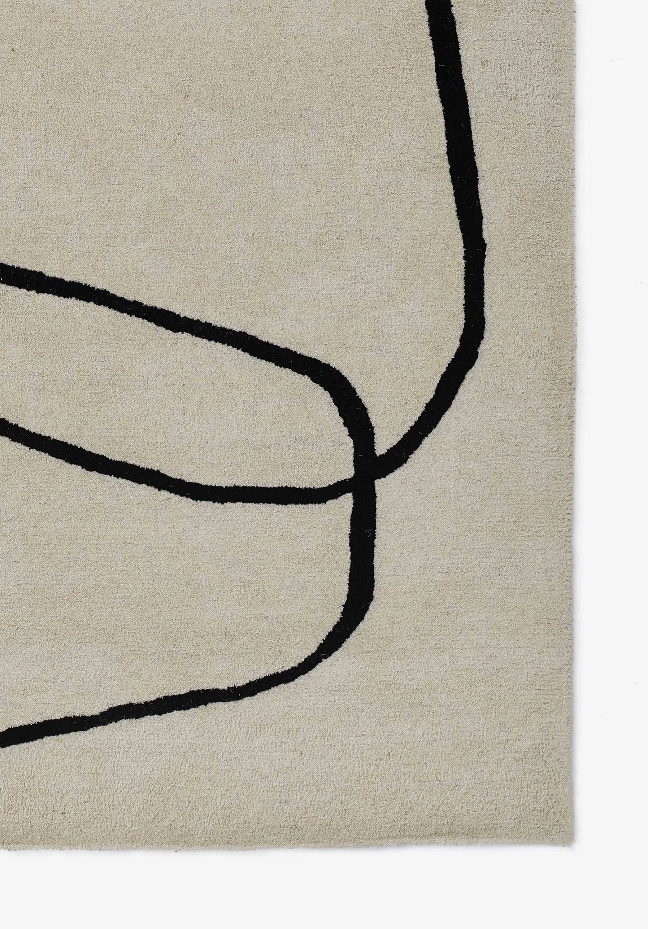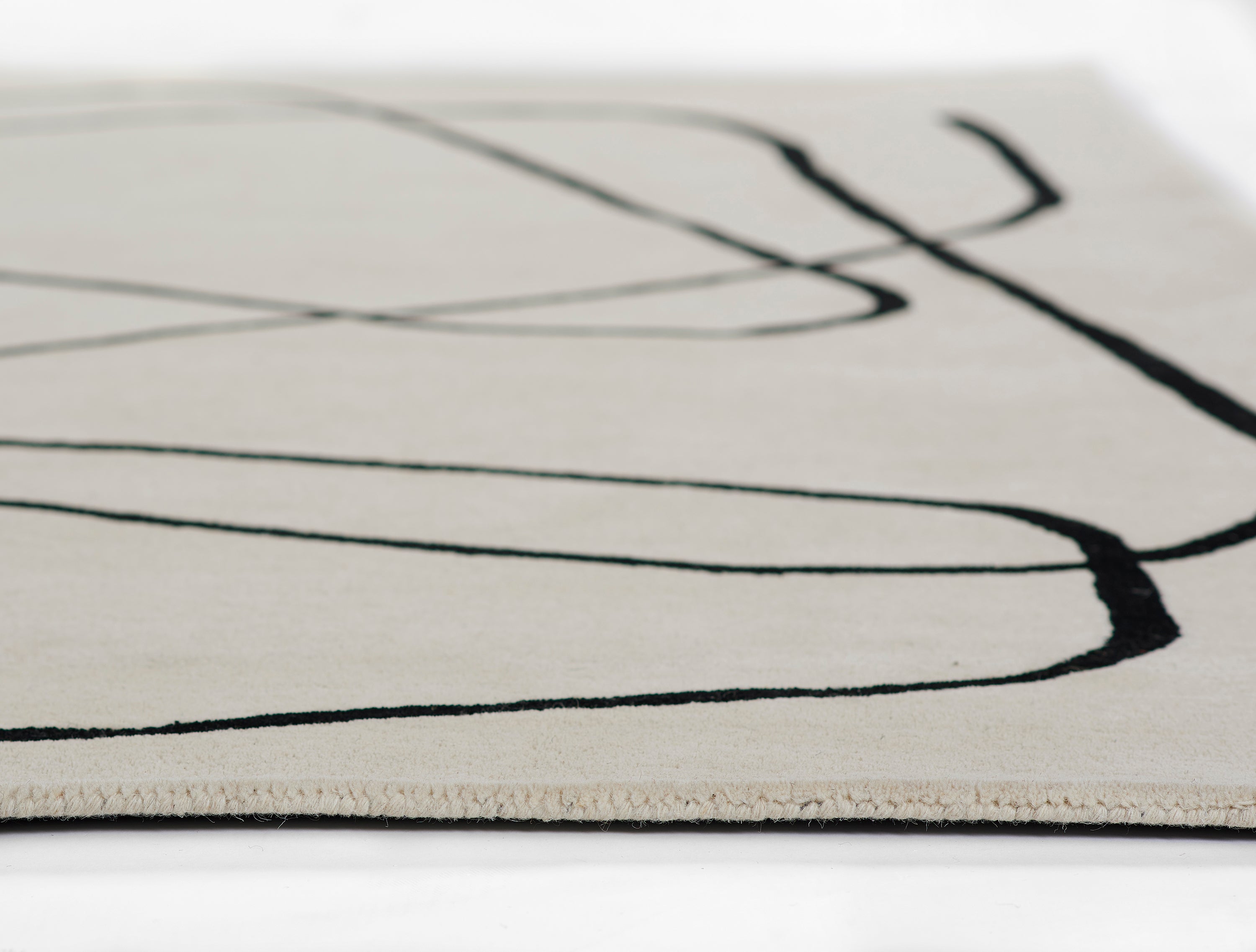 Completely abstract in nature, this highly contrasted heavy linework with a light ivory background is beautiful rug to place in your bedroom or living area. With its light presence, yet bold design, it is sure to be a conversation starter as your eye follows the pattern that flows through the rug. Hand tufted using 100% New Zealand wool, and part of the Simba line, it brings a high-fashion sort of style into your interior.