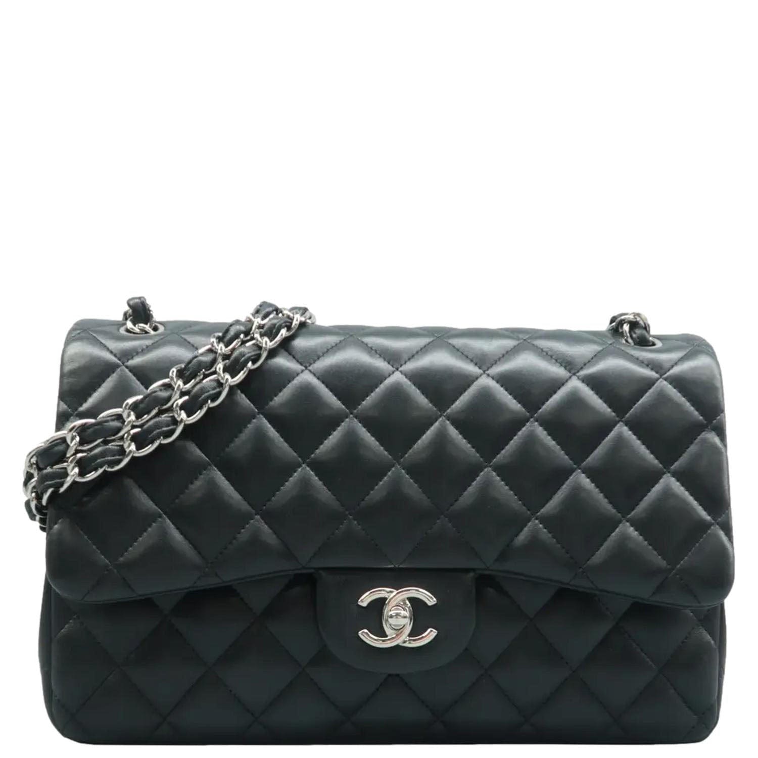 CHANEL Quilted Leathe Jumbo Classic Flap r Black Shoulder Bag