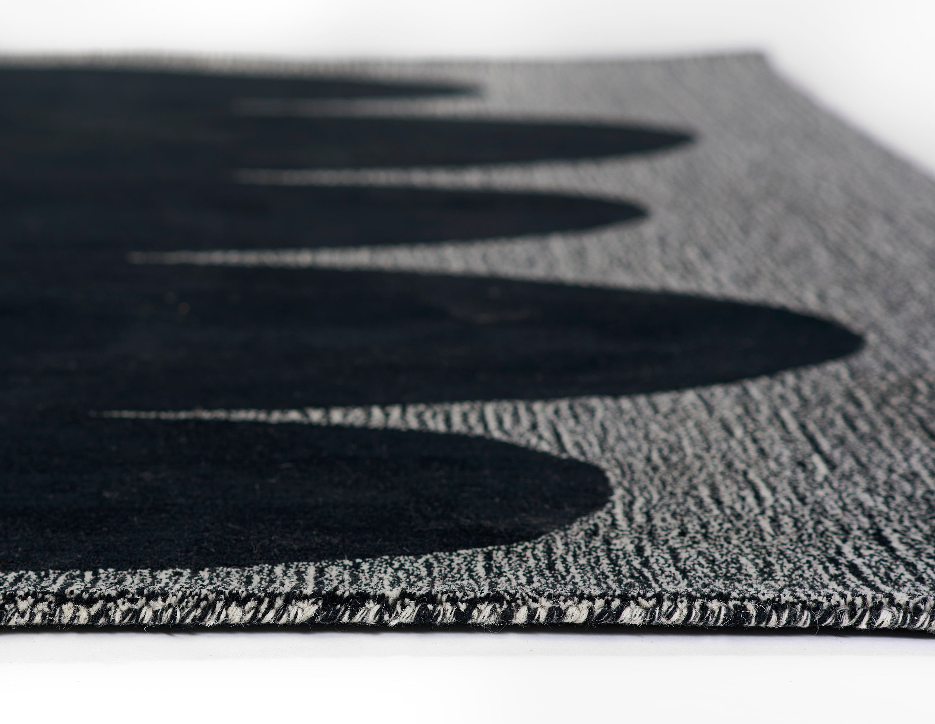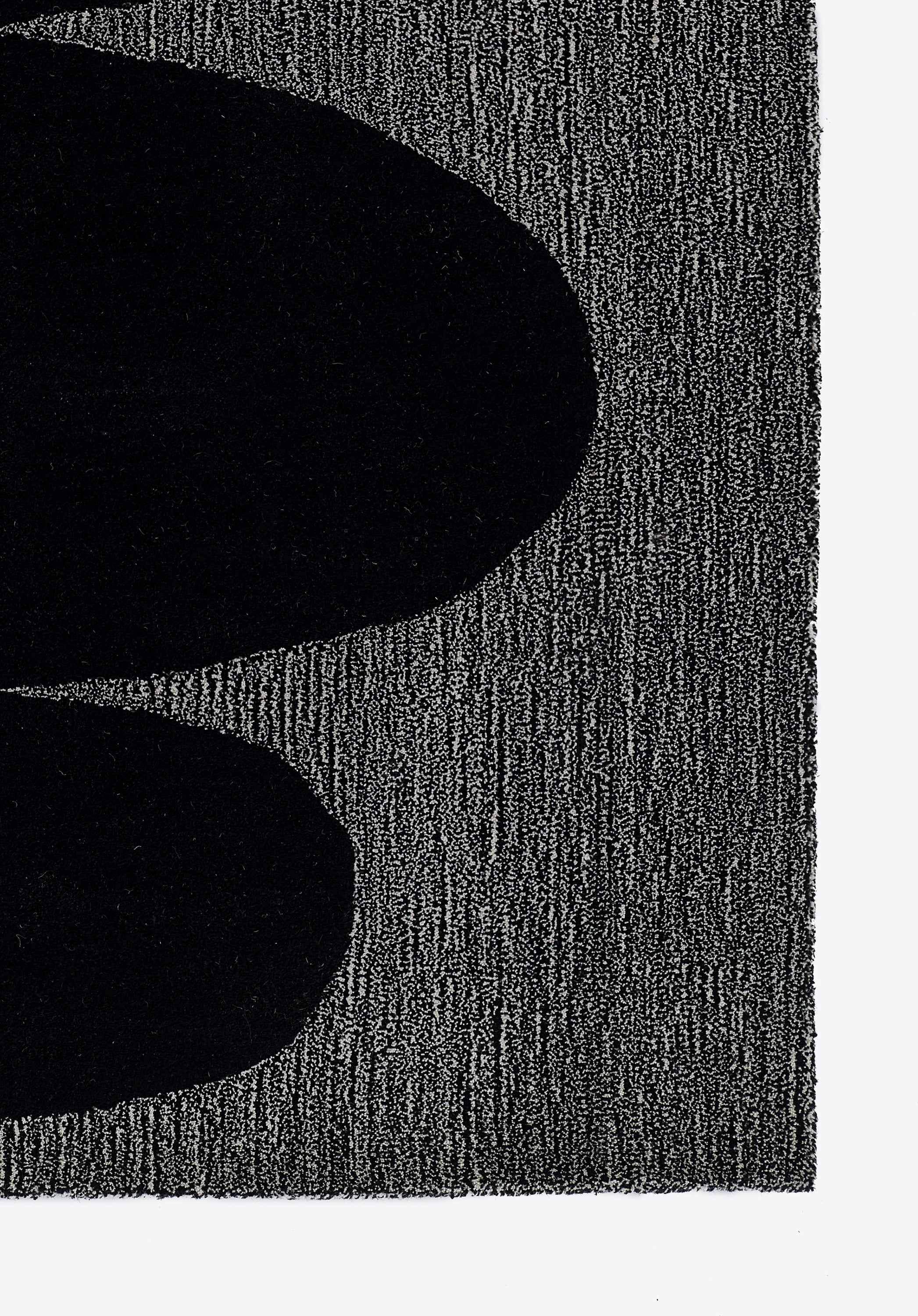 This deeply moody black and grey rug from the Simba collection, although bold, is super soothing on the eyes. The simplicity it embodies in the oval shapes incorporated in the design resemble the practice of stacking smooth rocks as a method of meditation and creating spiritual balance. Composed of 100% New Zealand wool and showcasing impeccable handmade quality, this piece will last for years to come in your home thanks to its durability and dark color.