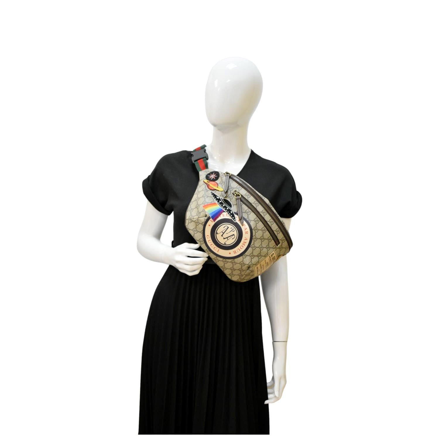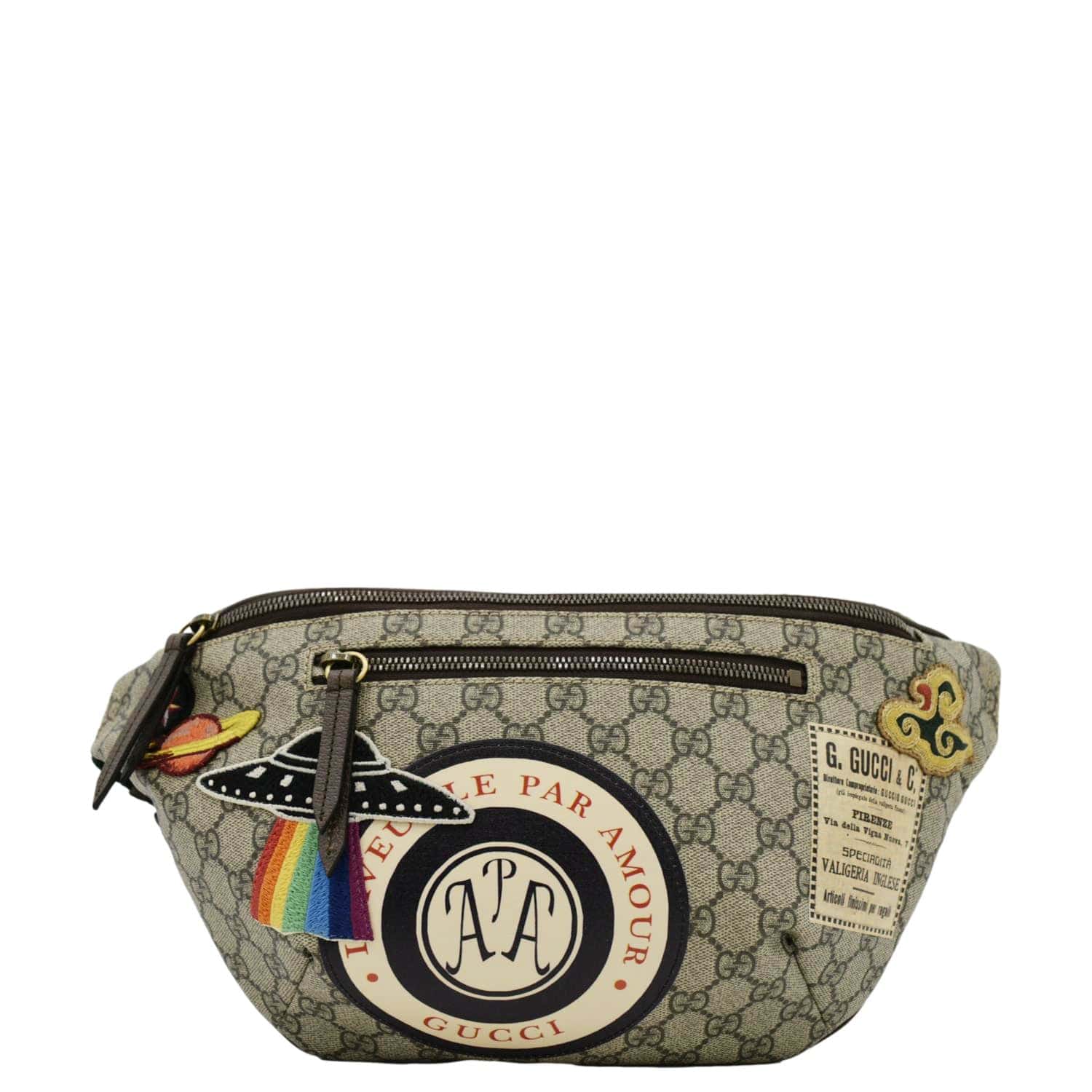 The GUCCI Courrier GG Supreme Canvas Belt Waist Bum Bag in Beige combines practicality with luxury. Featuring the iconic GG Supreme canvas, it has multiple compartments and an adjustable belt for versatile styling and convenient carrying.