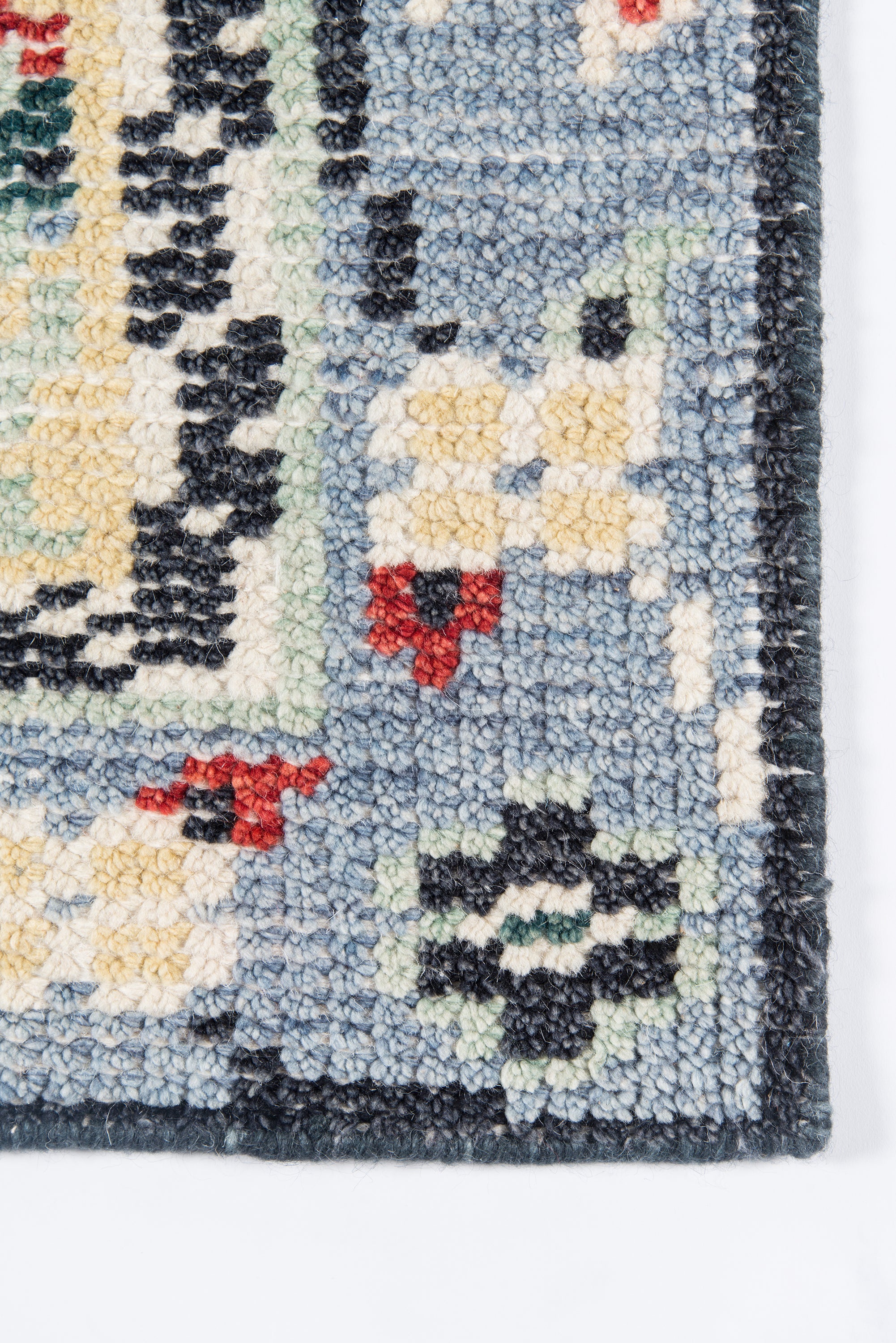 A springtime palette of soft greens, bright reds and blues brings an aire of nostalgia to this traditional area rug. The hand-hooked rug design puts a new spin on homespun style with a charming floral theme that fills the decorative border and central medallion with a multicolor spray of buds in bloom. The classical rug pattern incorporates natural wool and cotton fibers, their varying textures turning the undeniable softness of the rug field into a floorcovering with comfortable complexity.