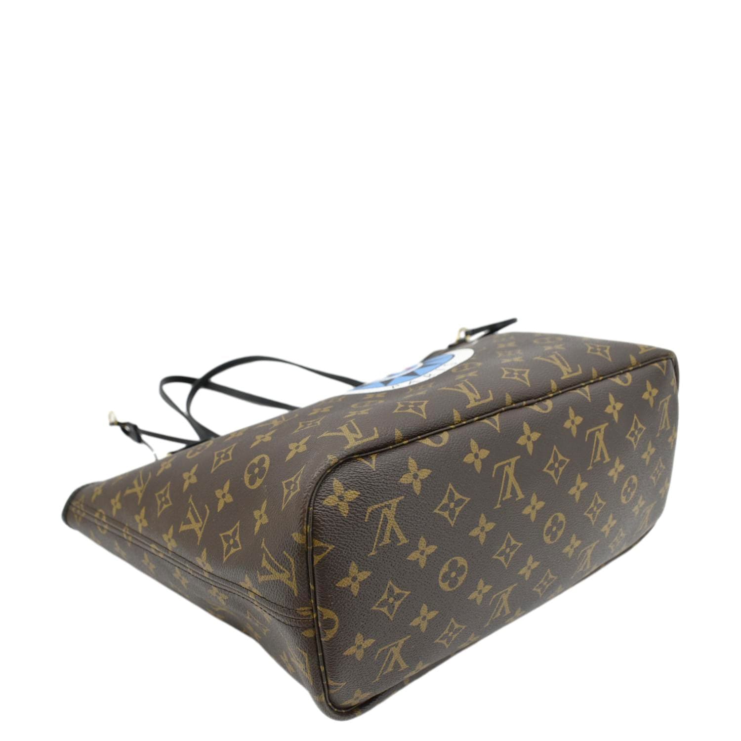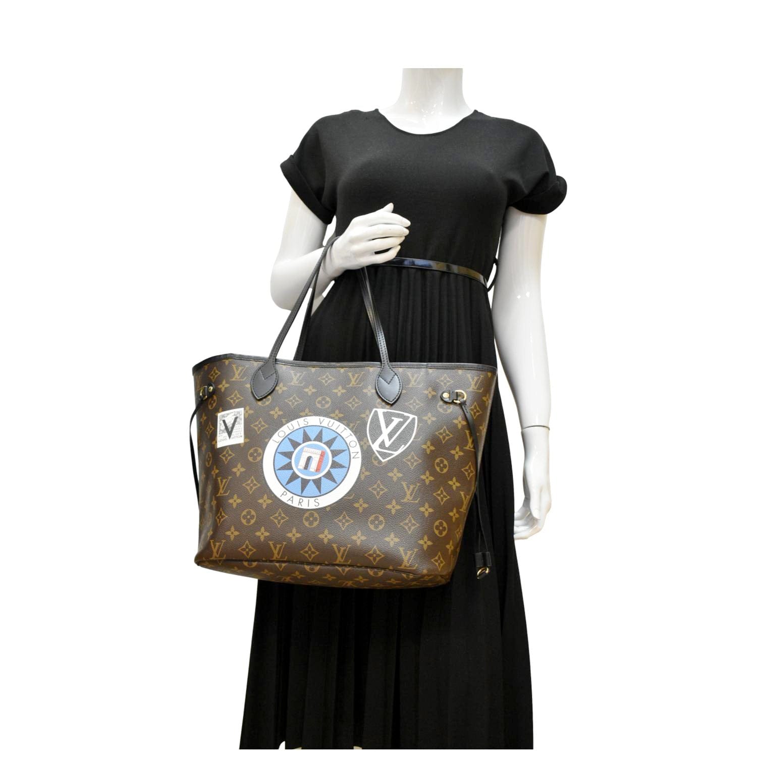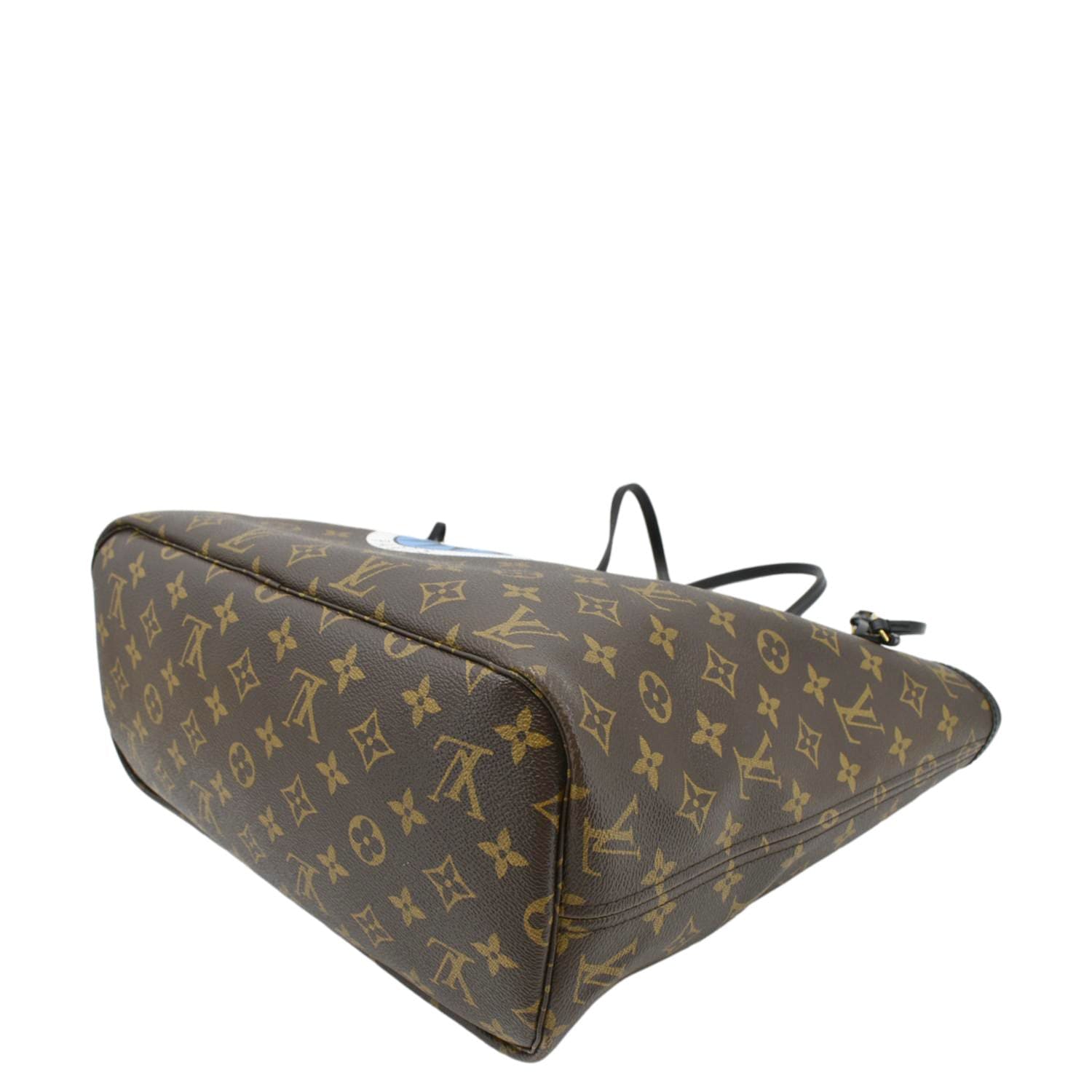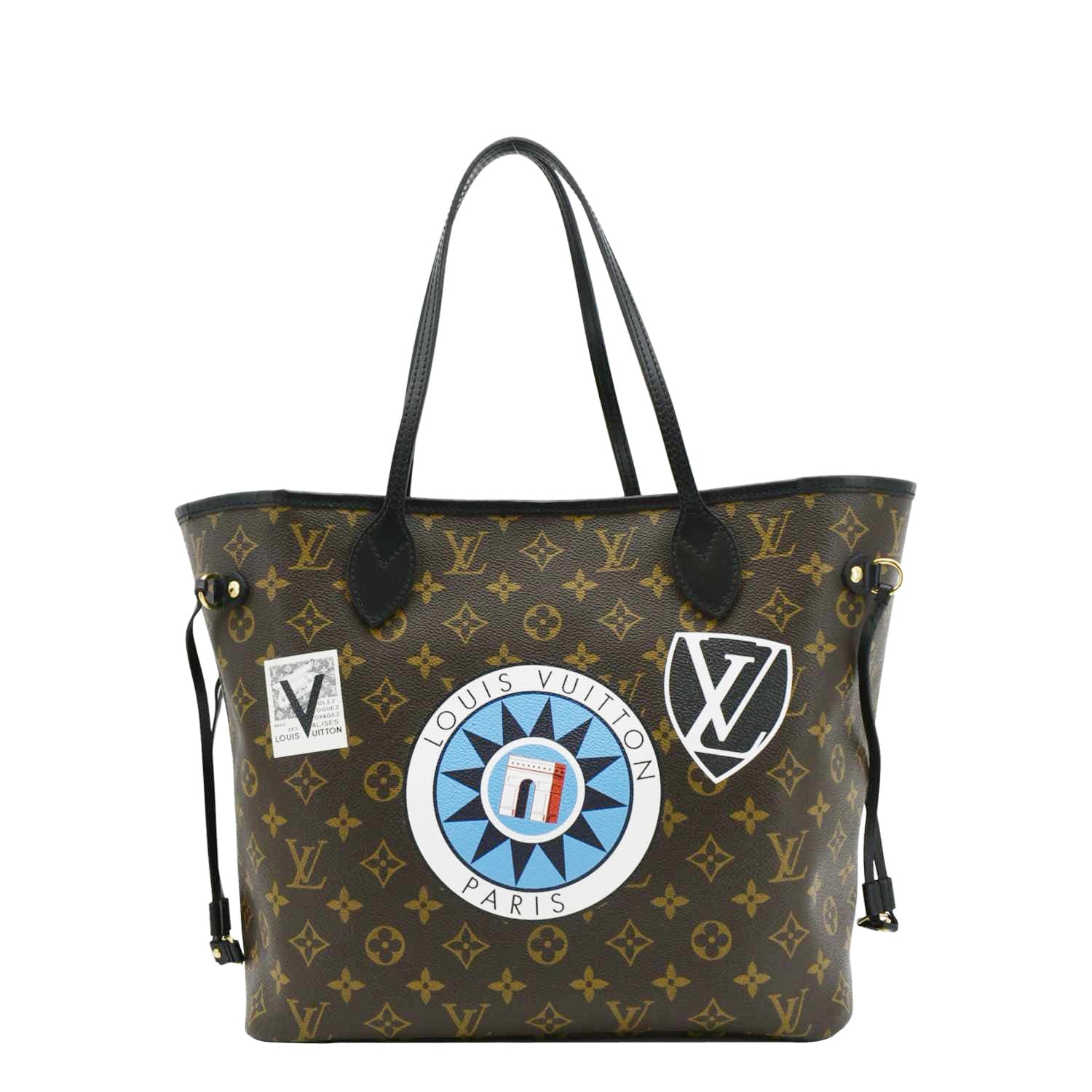 The LOUIS VUITTON Neverfull World Tour Monogram Canvas Tote Bag in Brown is a stylish and spacious bag featuring the iconic Monogram canvas adorned with playful travel-inspired stickers. Its roomy interior and versatile design make it perfect for everyday use.
