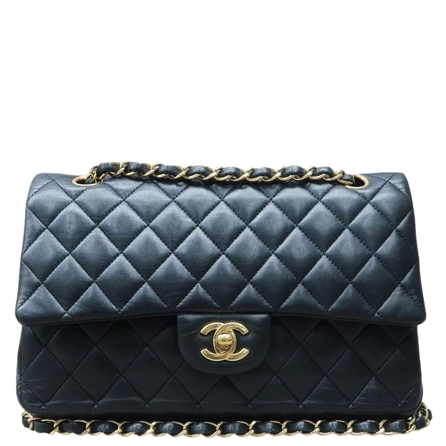 The "CHANEL Classic Medium Double Flap Quilted Leather Shoulder Bag" in Black is timeless and elegant. Featuring signature quilted leather and gold-tone hardware, it embodies the iconic Chanel style, perfect for any occasion.