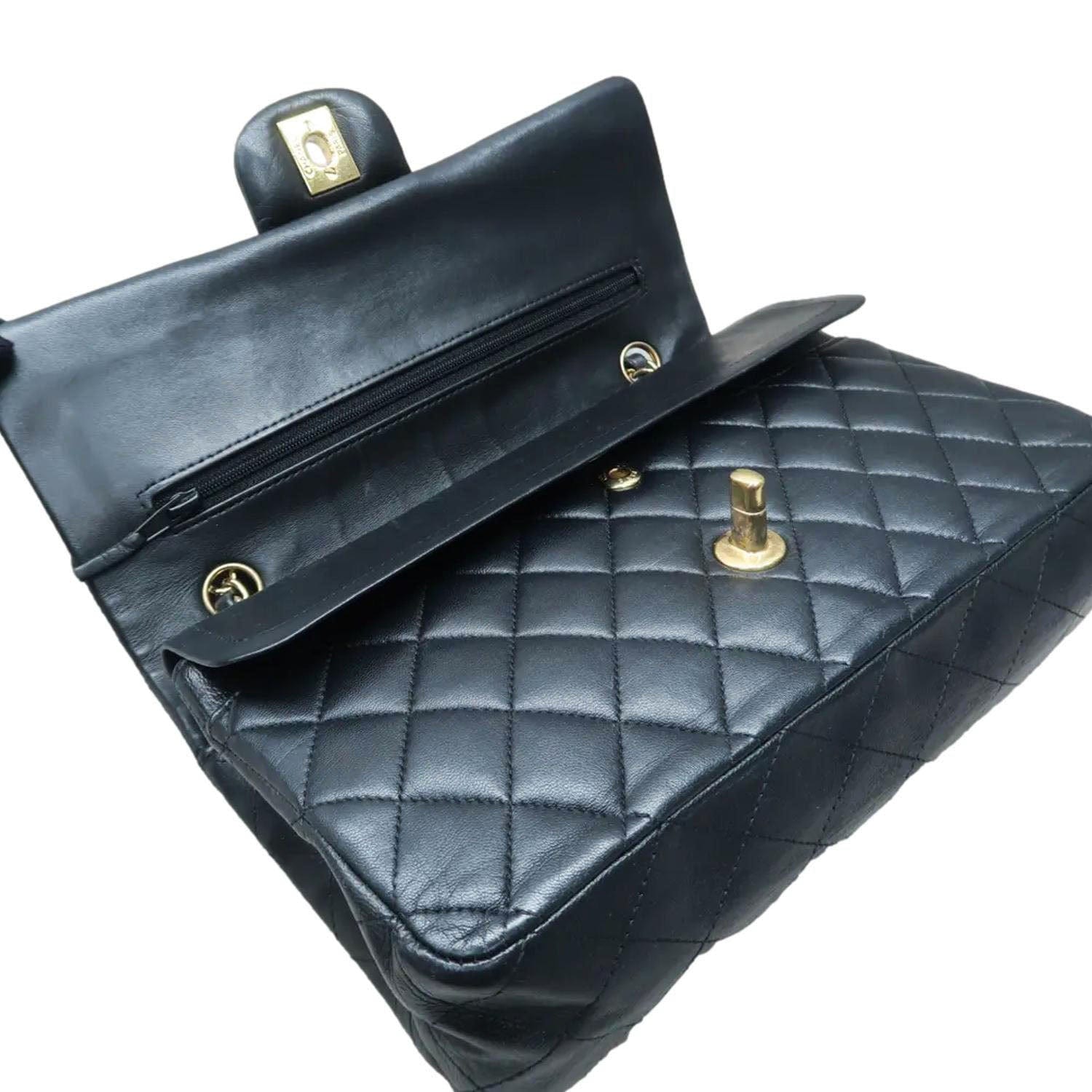 CHANEL Quilted Leather Classic Double Flap Black Shoulder Bag