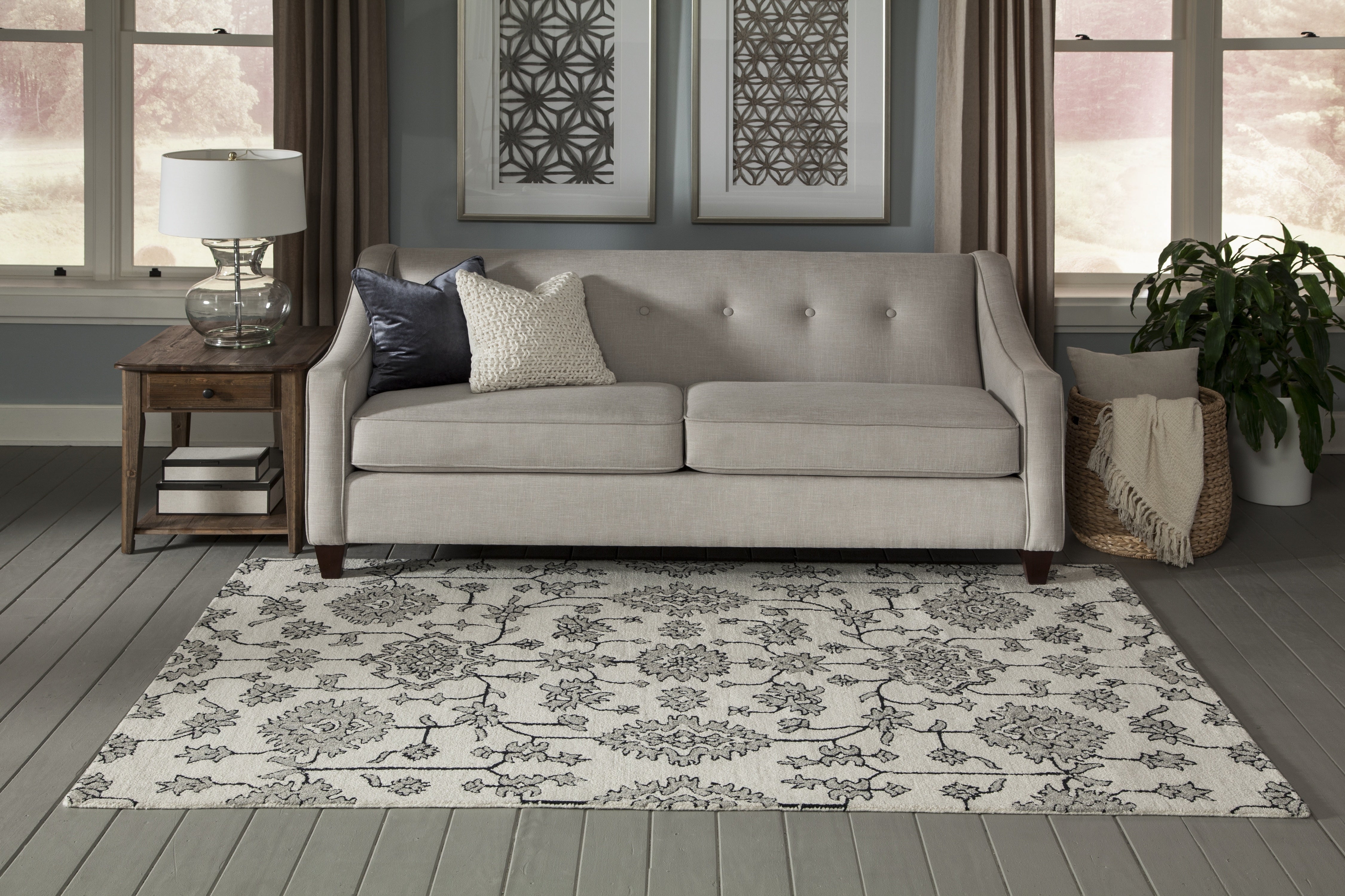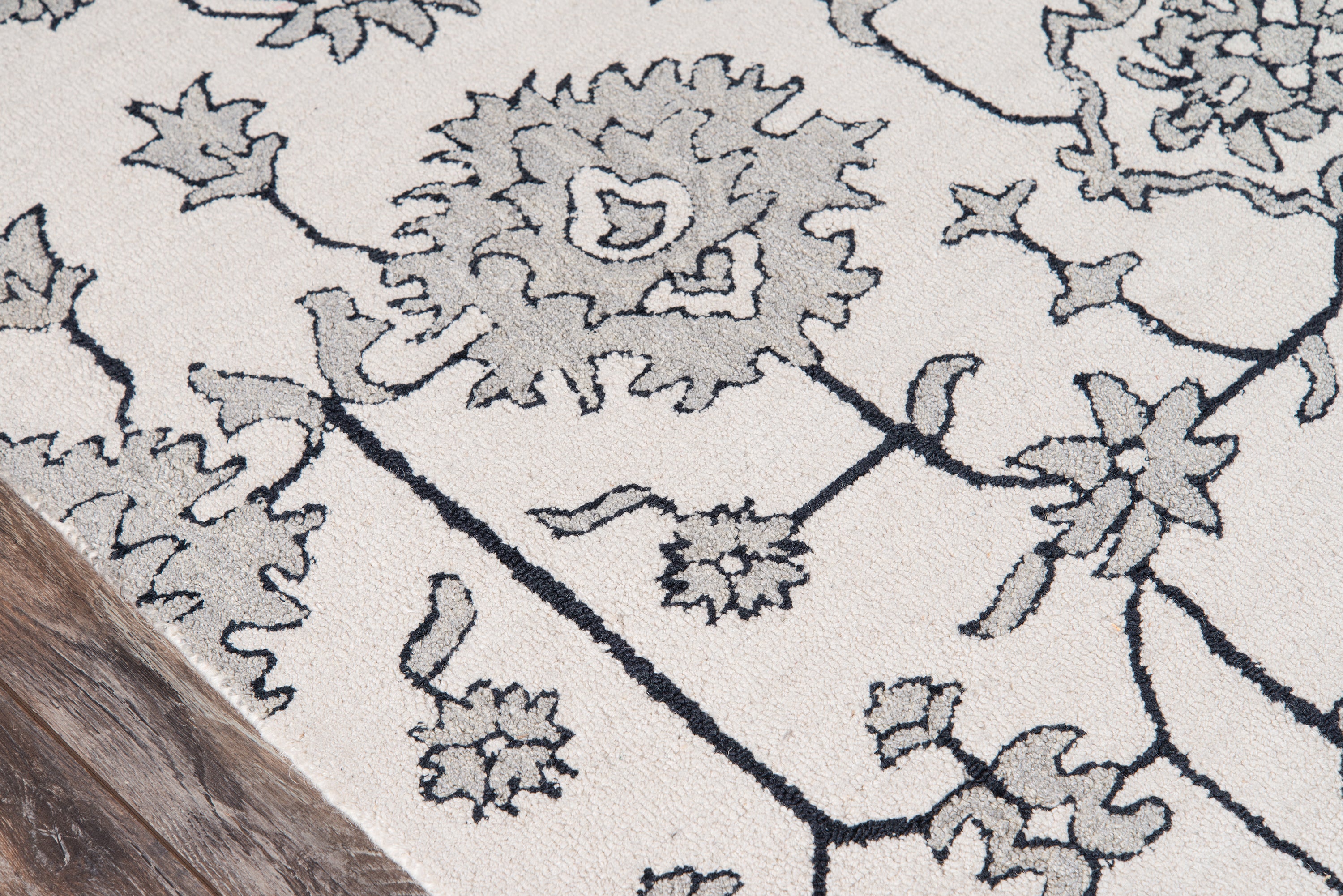 Vintage-style lace detailing in delicately faded neutrals lends this traditional area rug the aura of a European retreat. Ornamental medallions and floral-and-vine motifs provide the perfect focal point for every floor space, with a demure dove grey, sky blue and beige color palette that exudes subtle charm. Hand tufted from a dynamic blend of wool and viscose fibers, each area rug combines classical design with enduring durability that will adorn your floor.