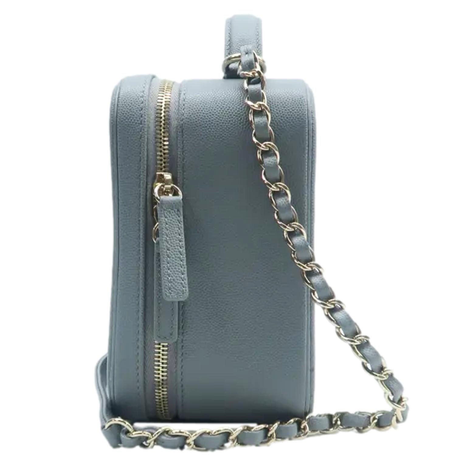 CHANEL Caviar Quilted Vanity Case Medium Grey Shoulder Bag