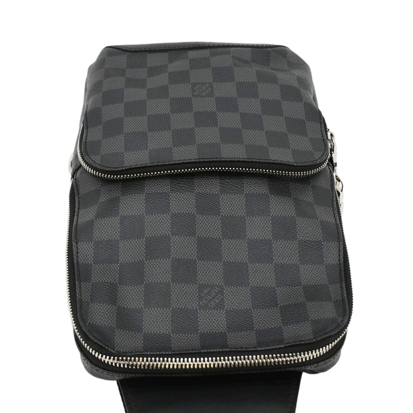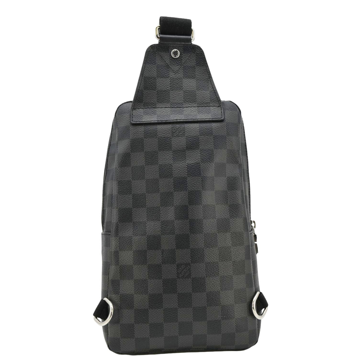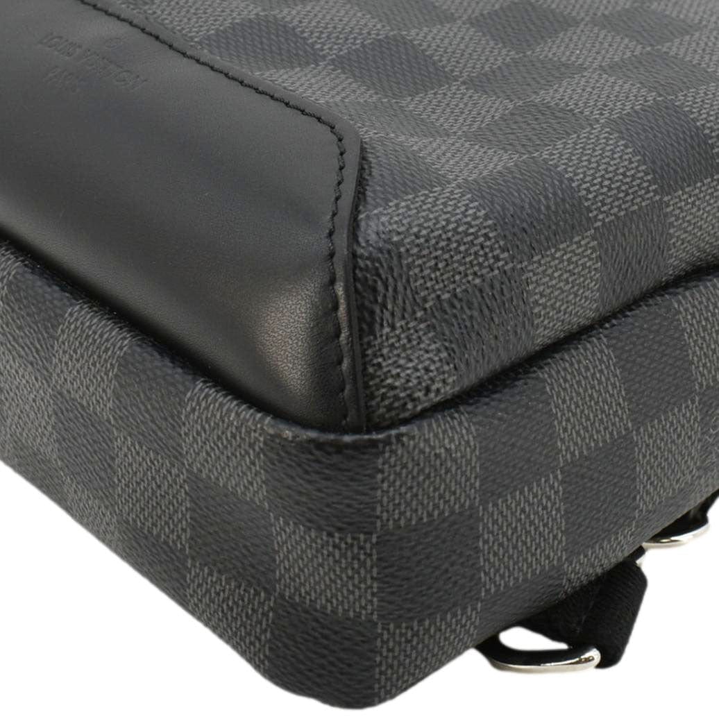 The LOUIS VUITTON Avenue Sling Backpack in Damier Graphite canvas combines a sleek black design with the iconic checkered pattern. This stylish and versatile bag features multiple compartments, an adjustable strap, and refined details, perfect for modern urban living.