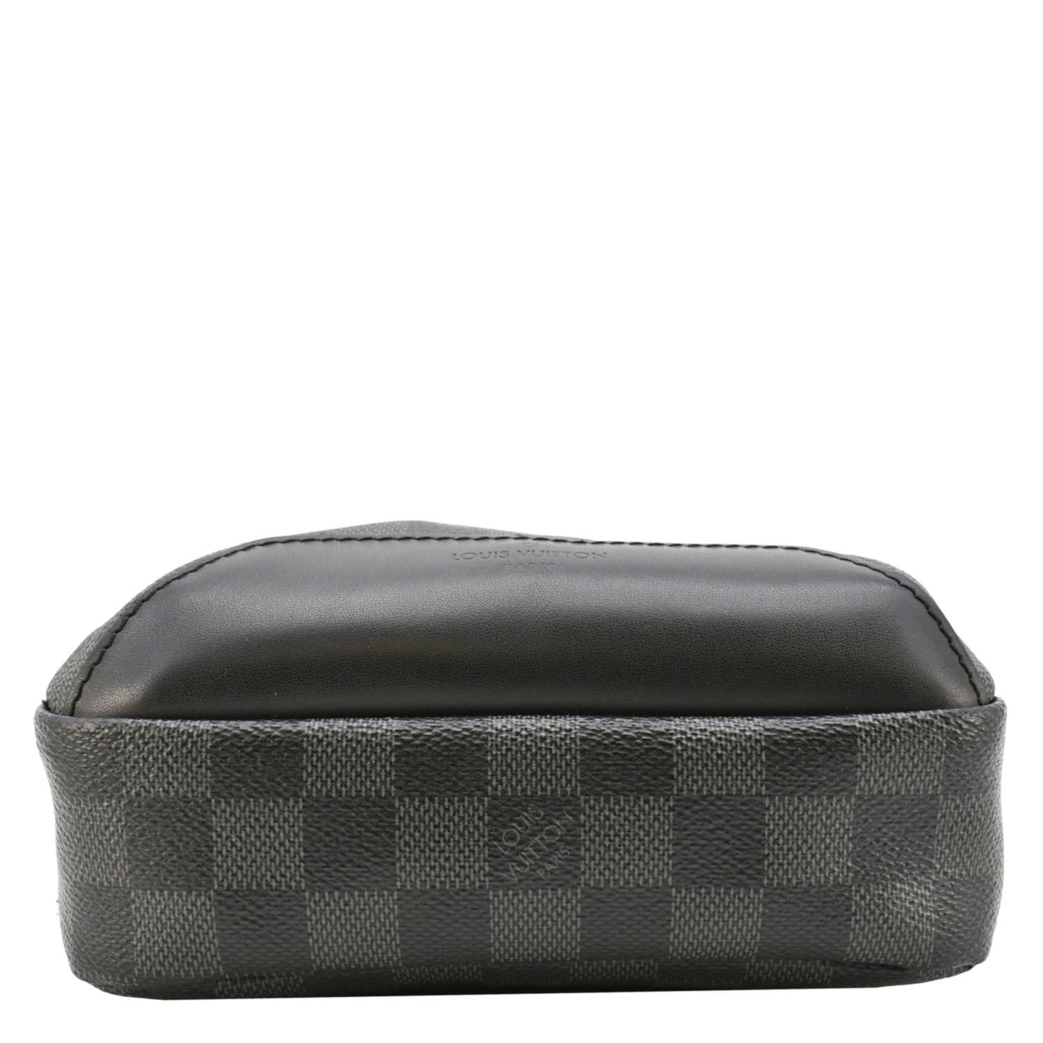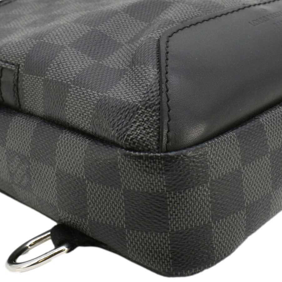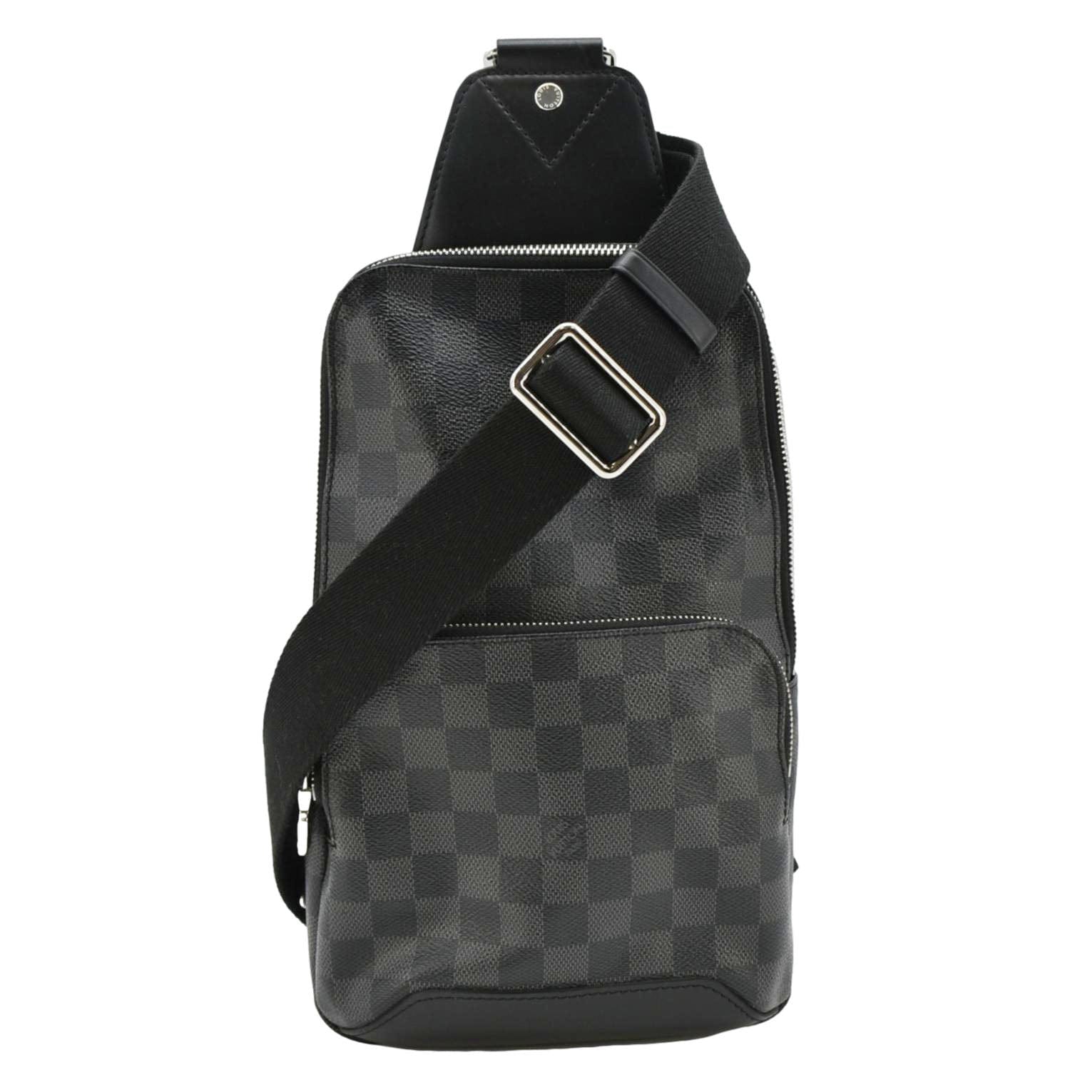 The LOUIS VUITTON Avenue Sling Backpack in Damier Graphite canvas combines a sleek black design with the iconic checkered pattern. This stylish and versatile bag features multiple compartments, an adjustable strap, and refined details, perfect for modern urban living.