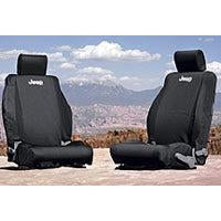 These custom-fit front and rear OEM Jeep seat covers from Mopar are water resistant and tough enough to stand up to rugged off-road conditions. Custom tailored for your Jeep Wrangler for a perfect fit. Covers do not block seat controls. Easy to install and easily removable for washing. Features the vehicle logo.