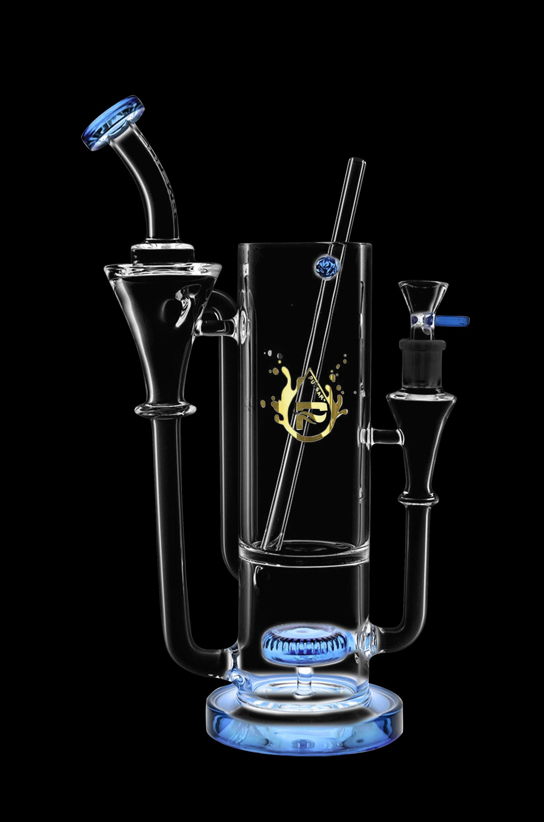 Dive into the world of high vibes and good times with the Avocado Gold Glow Pipe Duo from Pulsar's Fruit Series! This power-packed duo includes a 10" tall borosilicate glass beaker style water pipe and a 5.25" long spoon pipe, both handcrafted from top-notch boro glass. And let's not forget the essential poker tool with a glass top, completing the trio in a mesmerizing avocado glow design.