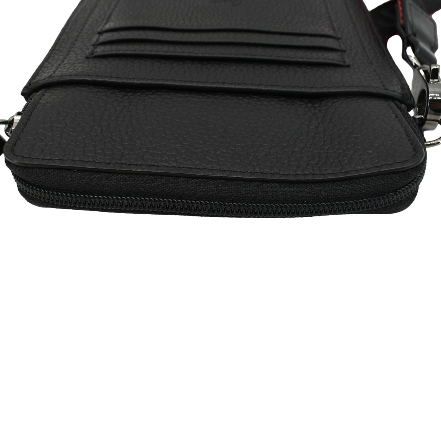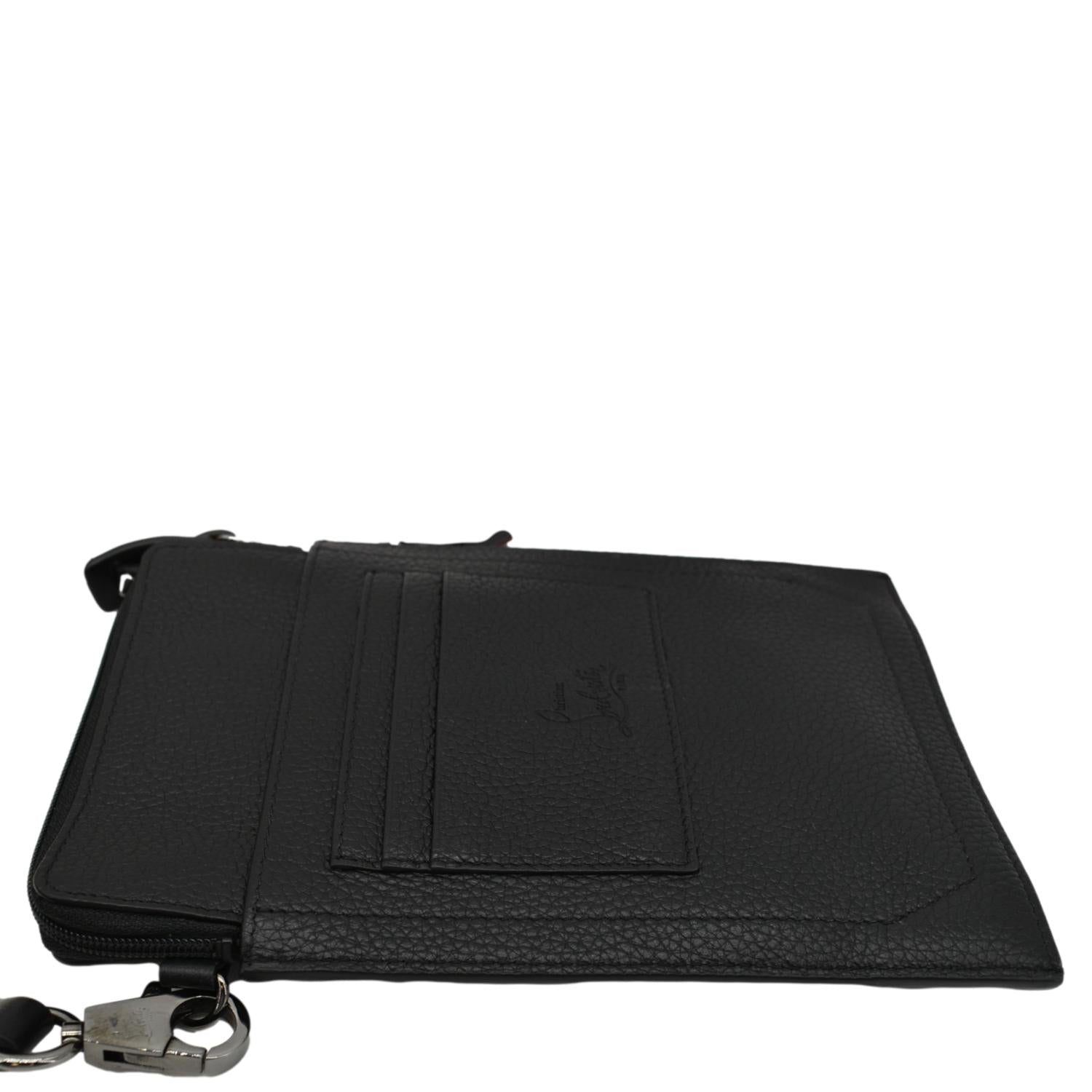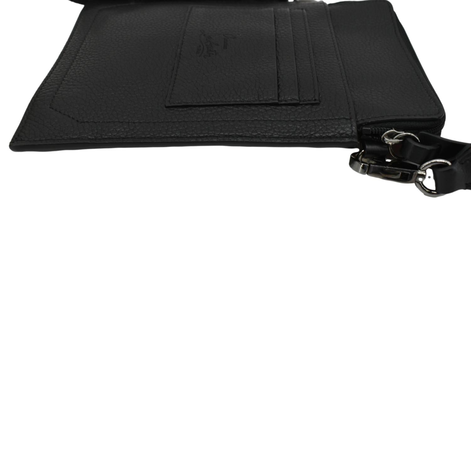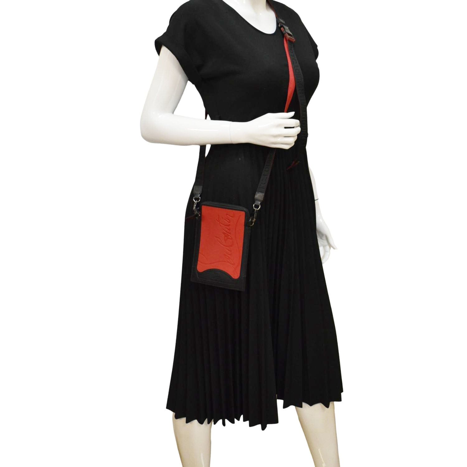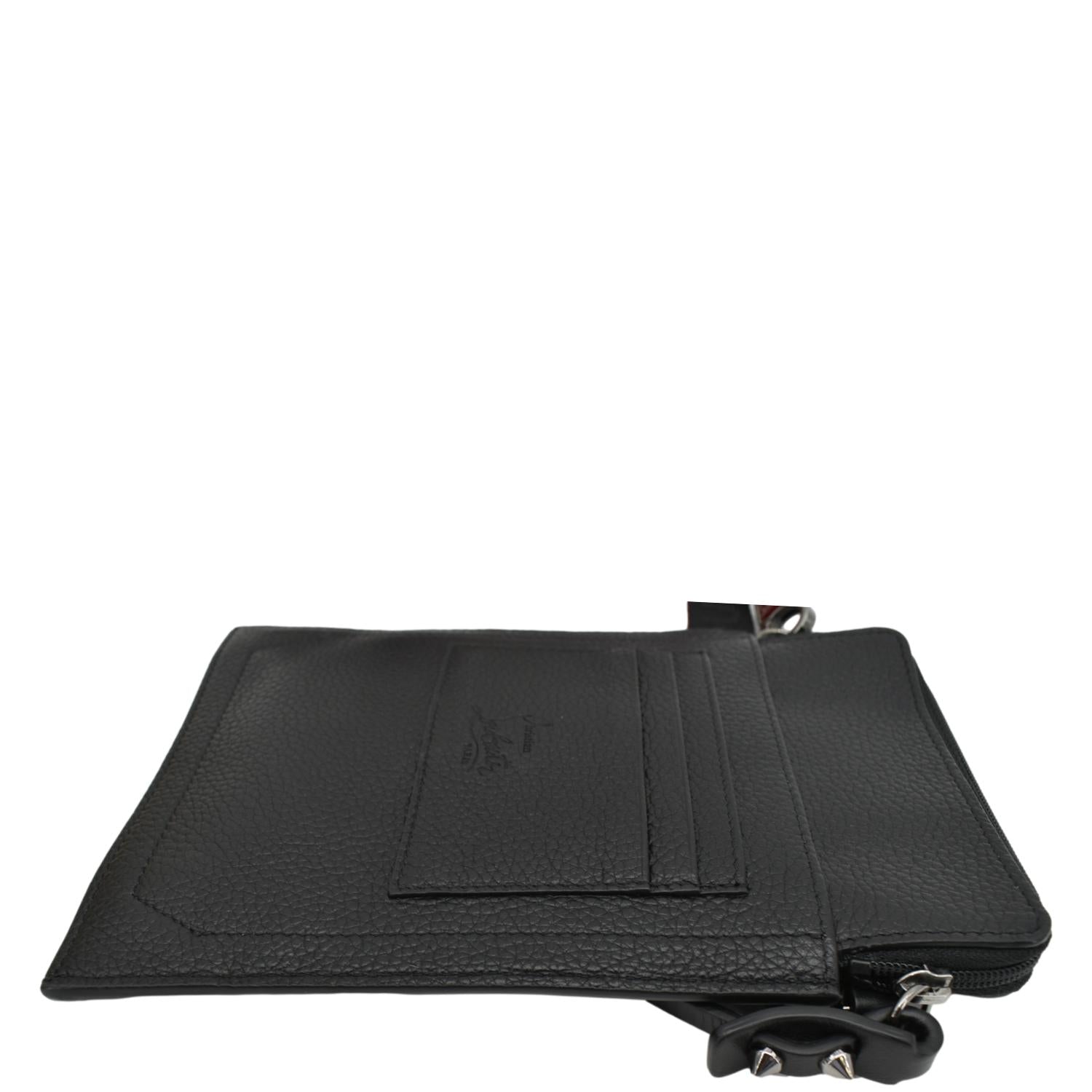 The Christian Louboutin Loubilab Leather Messenger Bag Pouch in Red features premium leather with the iconic Louboutin red. It includes an adjustable shoulder strap and multiple compartments for practical organization.