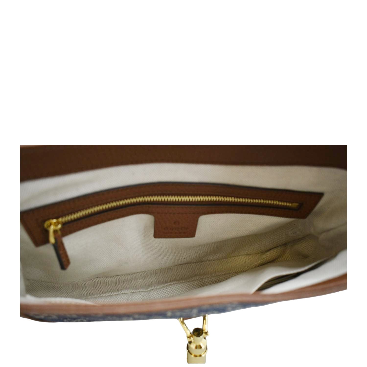 GUCCI Jackie's 1961 GG Jacquard Denim Hobo Bag in Navy Blue features iconic GG Jacquard denim and the signature piston closure, blending classic and modern styles.