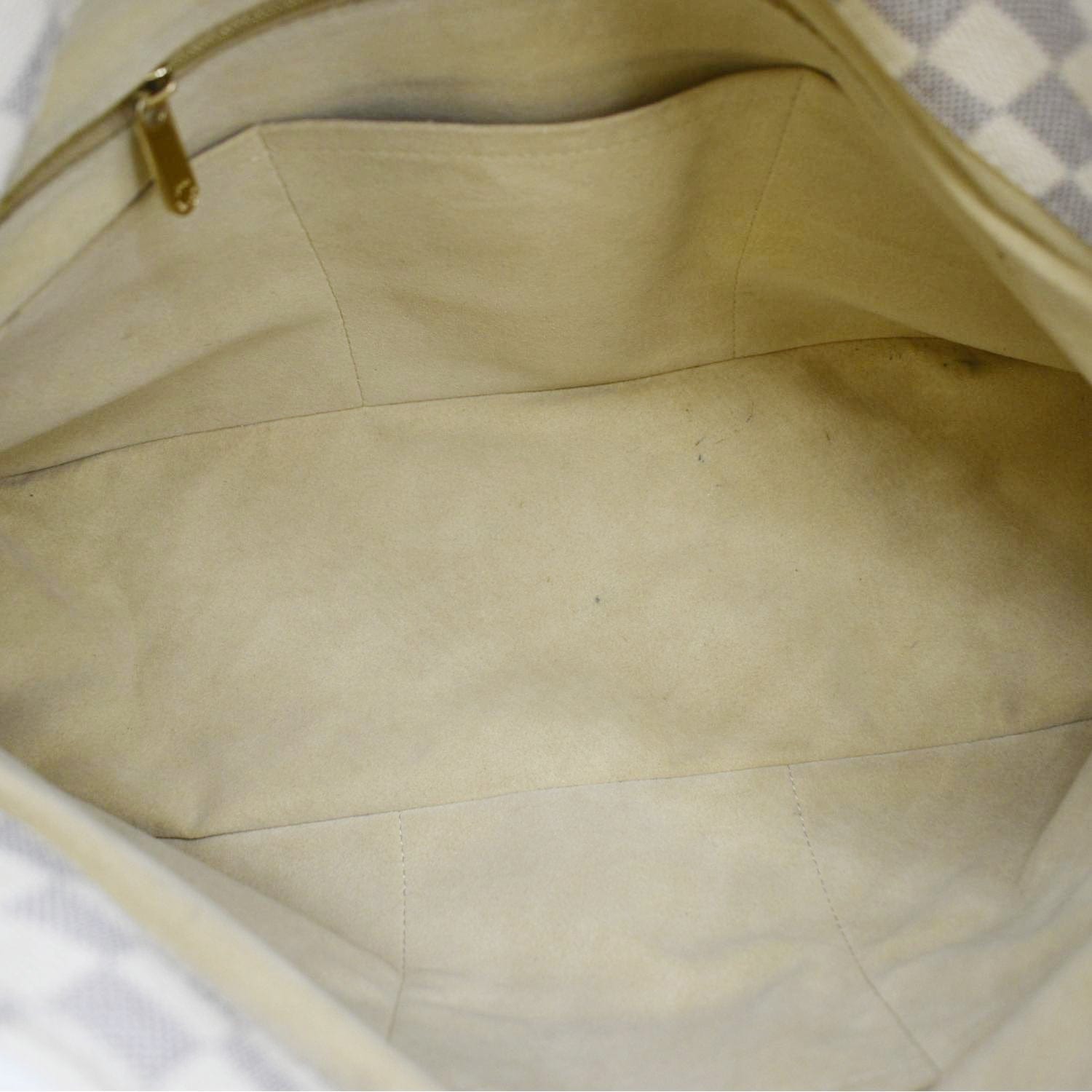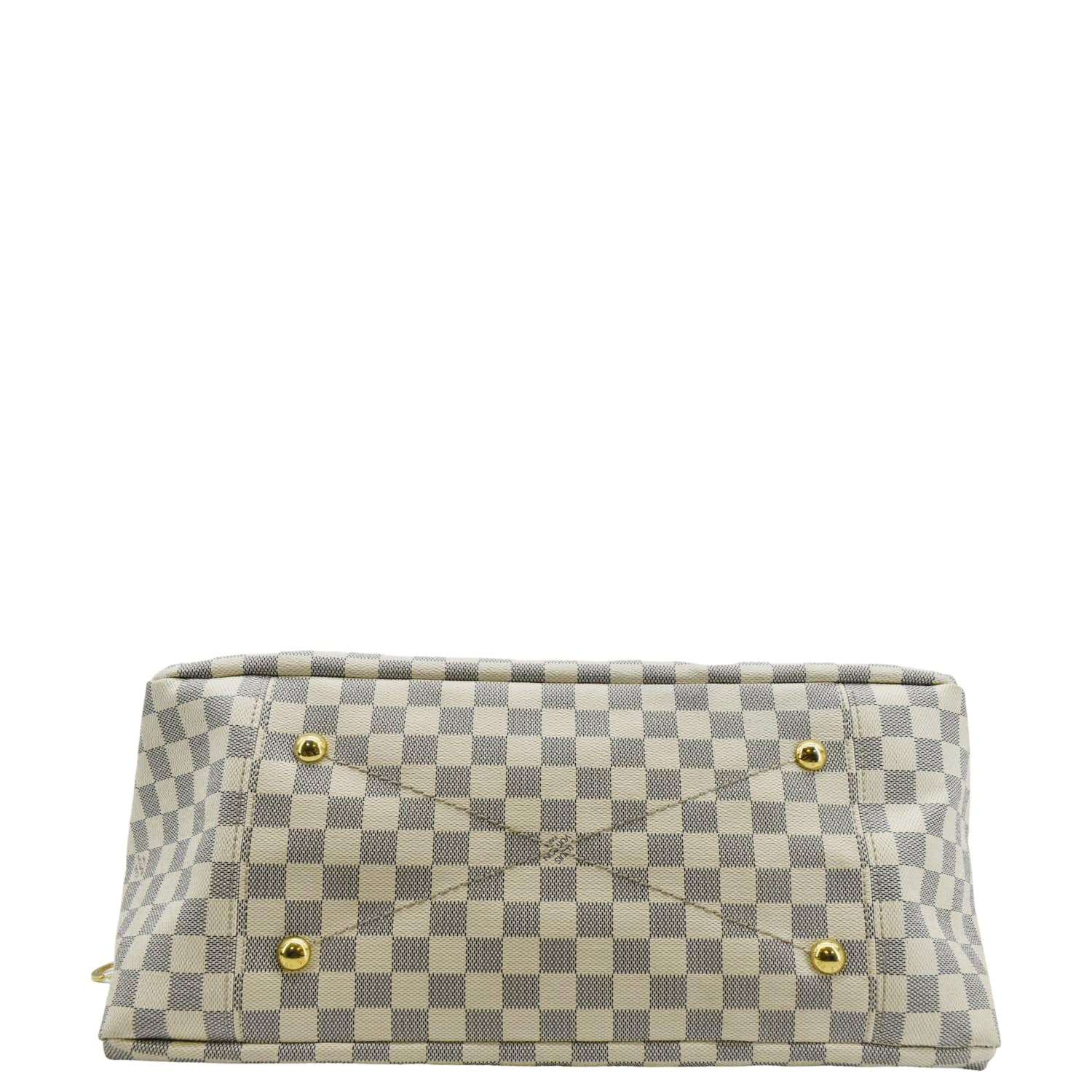 - Material: Damier Azur and leather