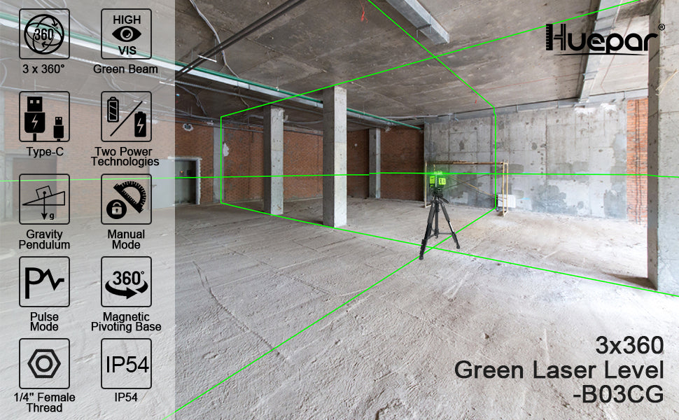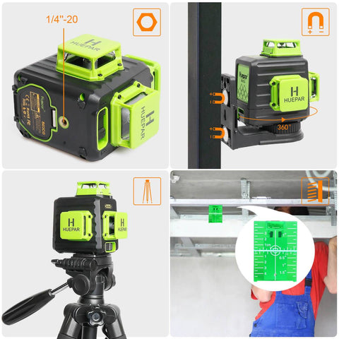 - 1 x Huepar B03CG Green Beam Self-Leveling 3D Cross Line Laser Level
