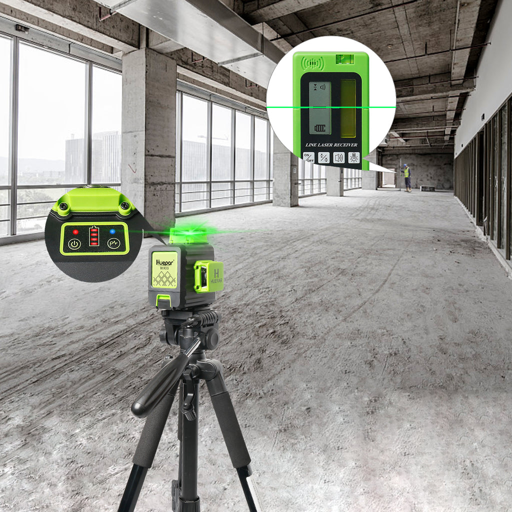 GREEN LASER & OUTDOOR PULSE MODE: This laser tool projects green laser which is up to 4 times brighter than standard red beams, the leveling laser has a working range up to 130Ft with an accuracy of +/- 1/9" at 33Ft. Besides brighter green beam, an outdoor pulse mode extends the laser range up to 200Ft with Huepar Line Laser Receiver in bright-light or outdoor conditions.