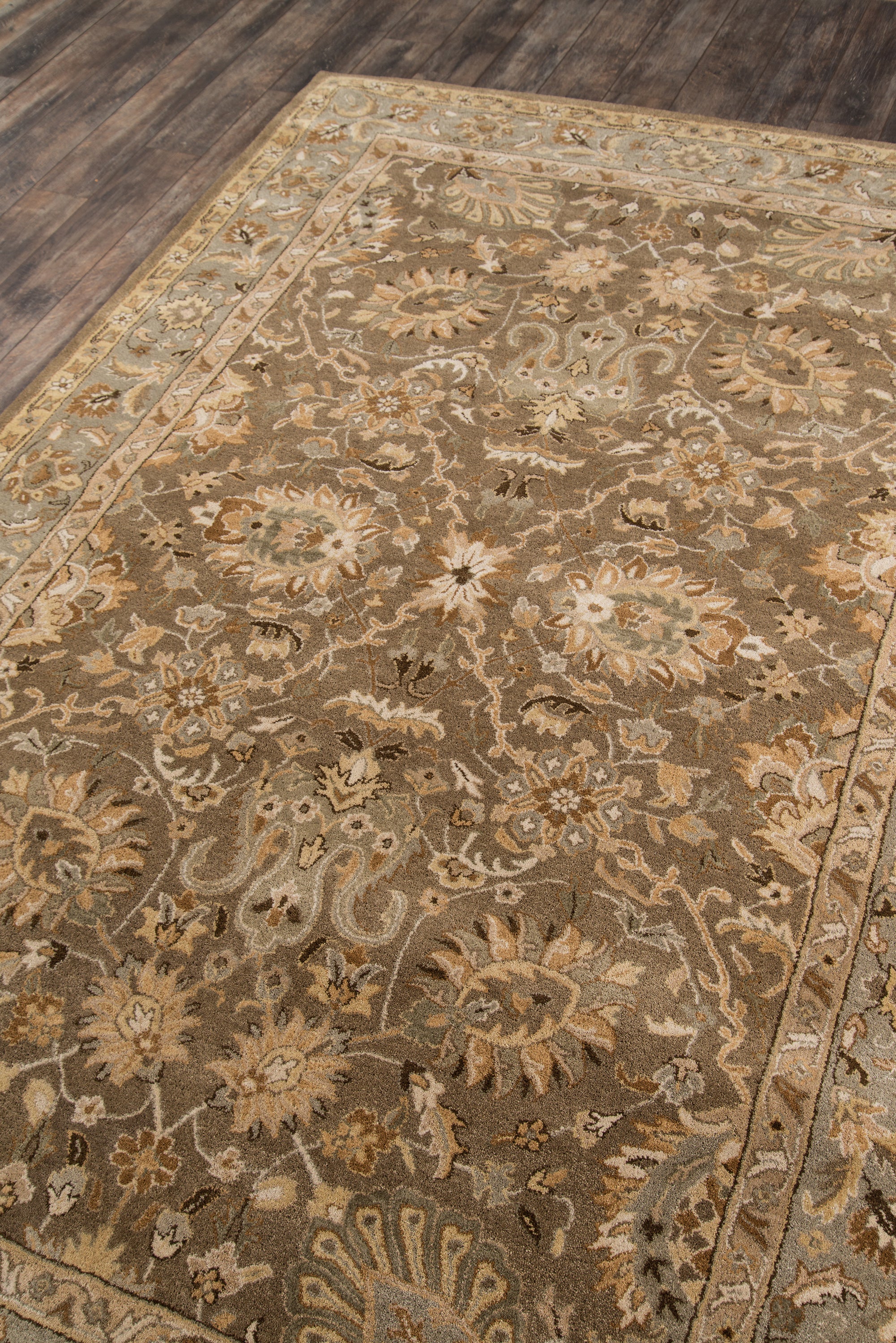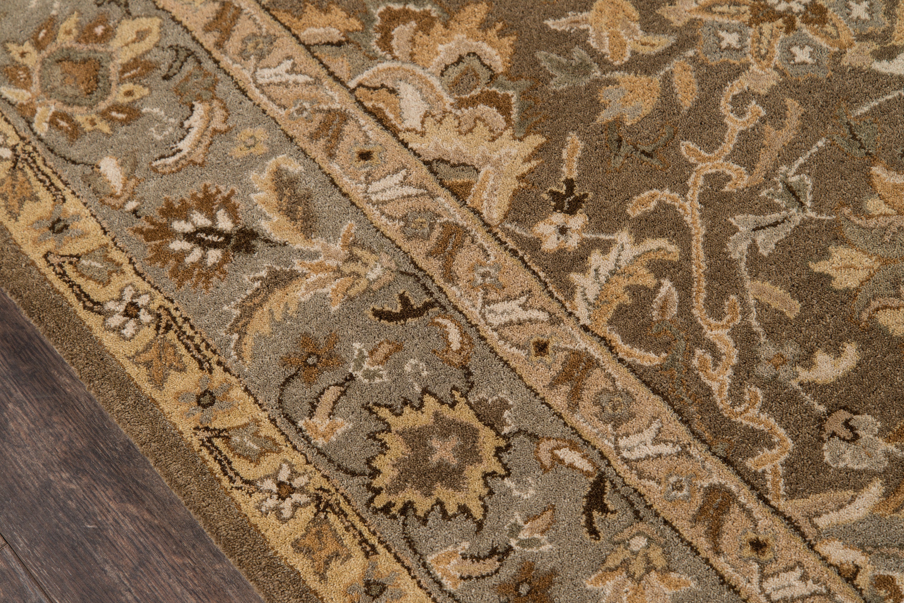 Elaborate embellishment throughout this traditional area rug collection draws inspiration from ancient Persian roots. Each rug is a decorative homage to the iconic Tabriz patterns of master weaver Haji Jalili as repeating palmette, flower and serrated leaf motifs reflect design origins that date back centuries. Hand tufted from natural wool fibers, the ornamental tapestry of the opulent floorcovering assortment is ideal for outfitting formal rooms in the finest interiors.