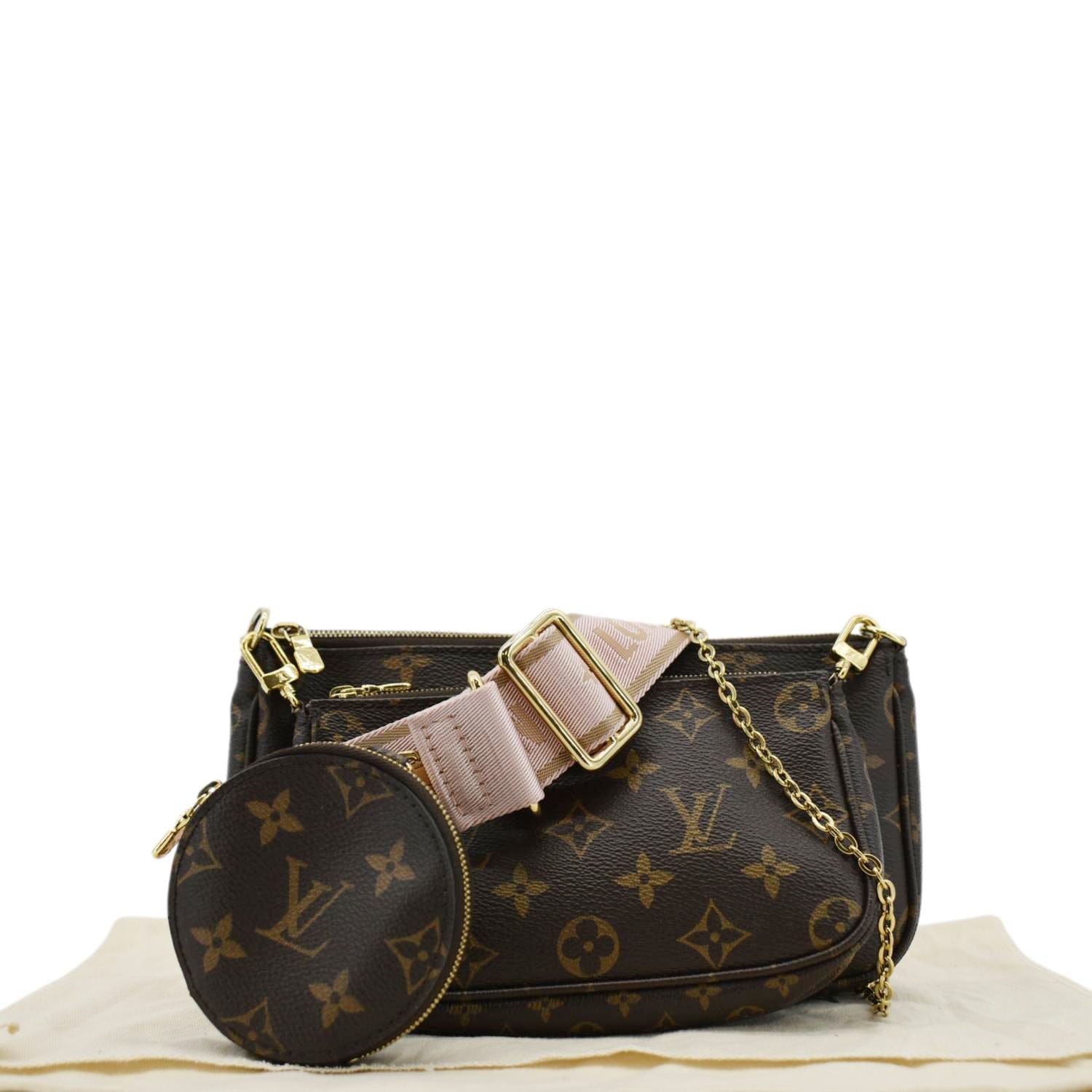 The Louis Vuitton Multi Pochette Accessoires Monogram Canvas Crossbody Bag in Brown is a luxurious and versatile accessory crafted from iconic Monogram Canvas, featuring multiple compartments and a detachable strap for easy carrying.