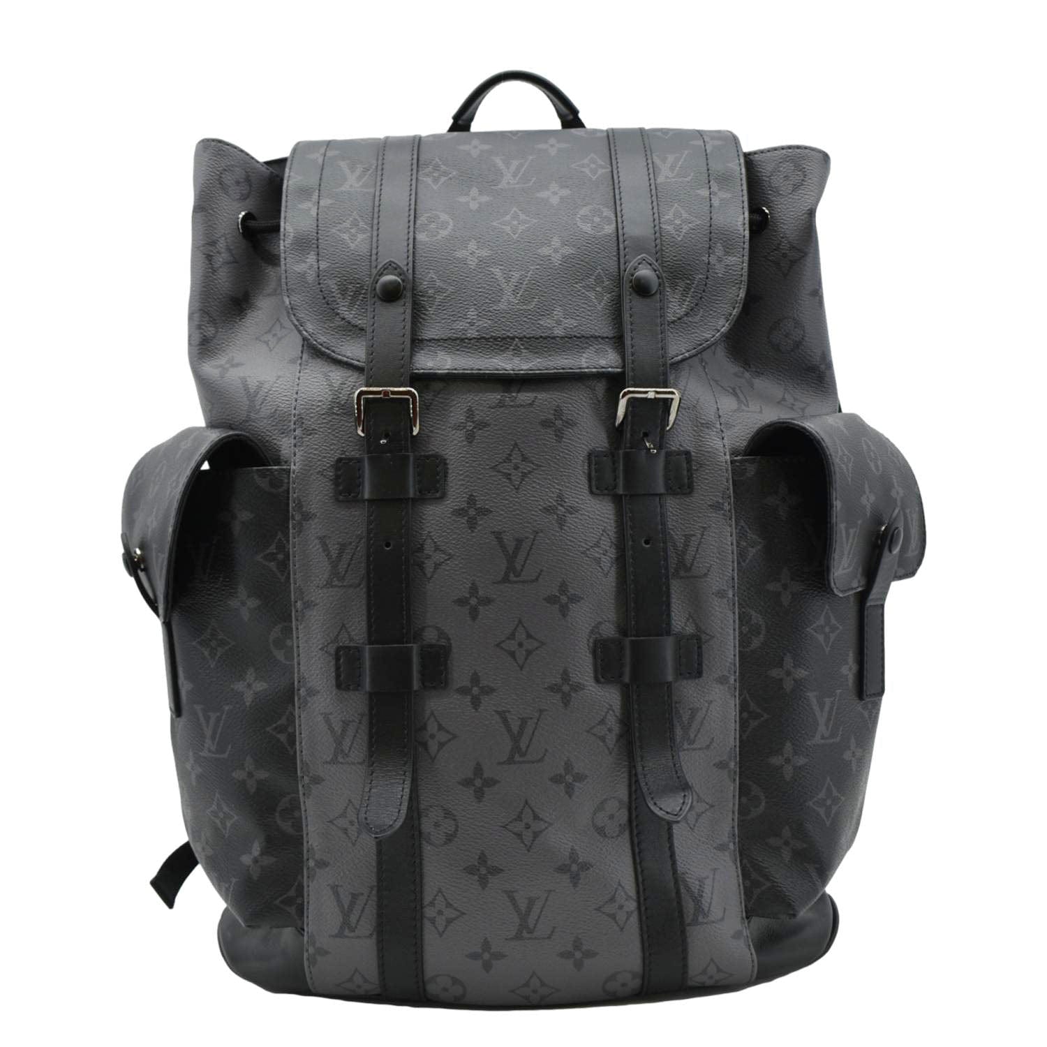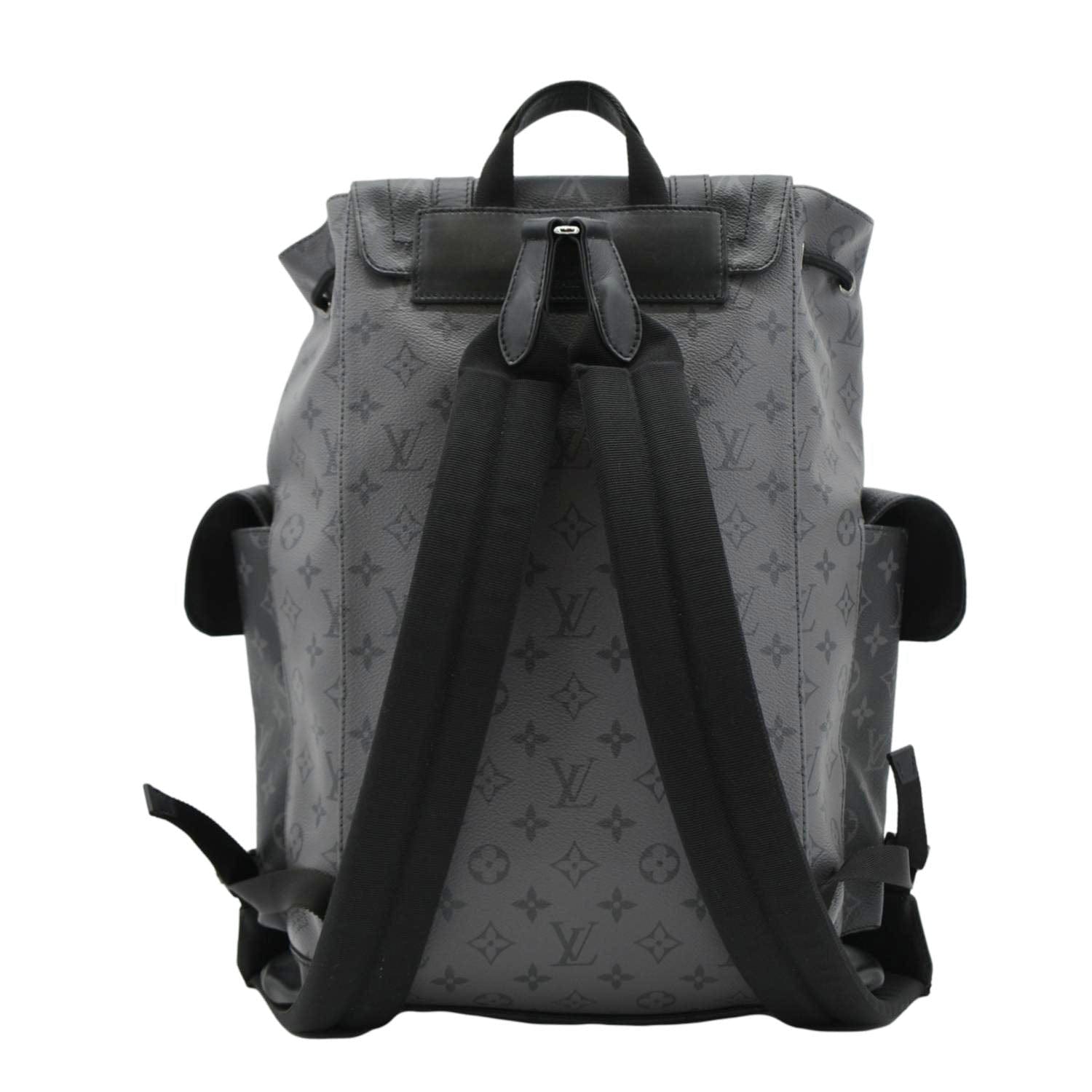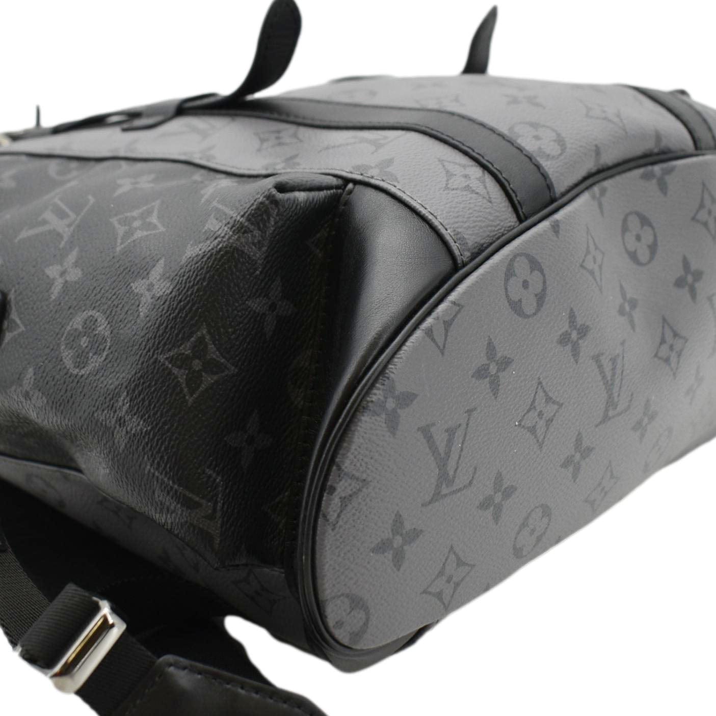 Embrace sophistication with our LOUIS VUITTON Christopher PM Reverse Monogram Eclipse Backpack in sleek black. A timeless statement piece, perfect for both urban adventures and refined city strolls.