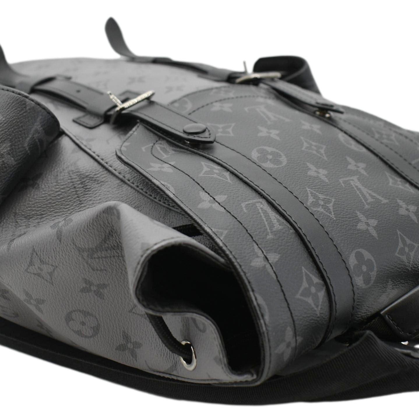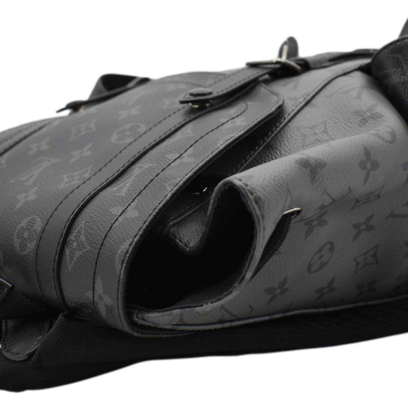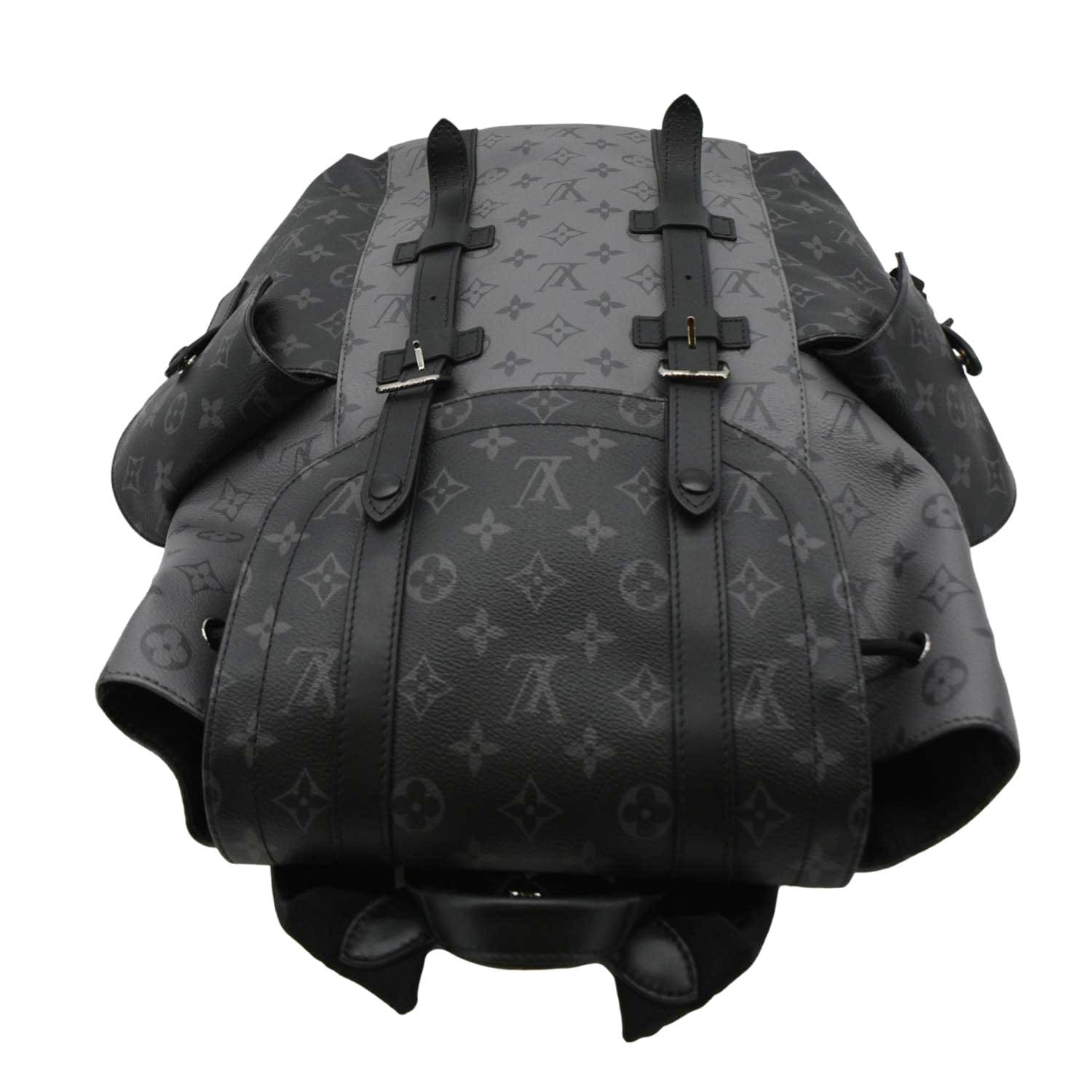 Embrace sophistication with our LOUIS VUITTON Christopher PM Reverse Monogram Eclipse Backpack in sleek black. A timeless statement piece, perfect for both urban adventures and refined city strolls.