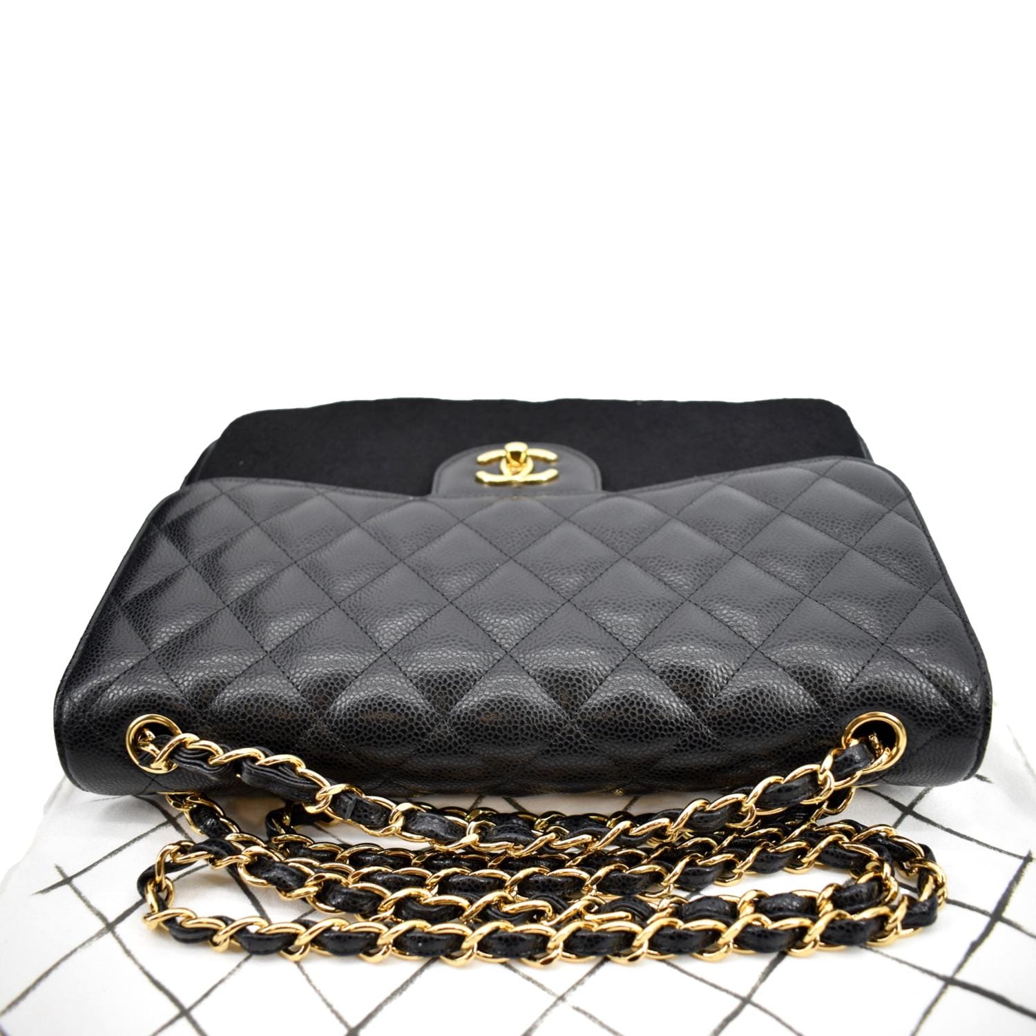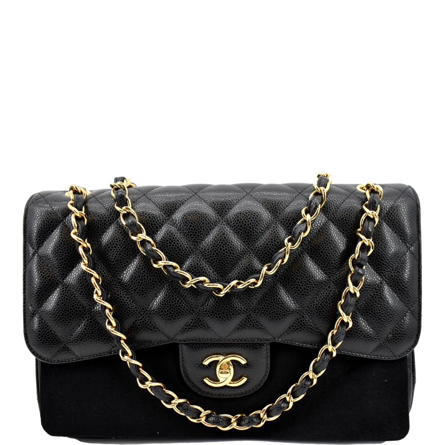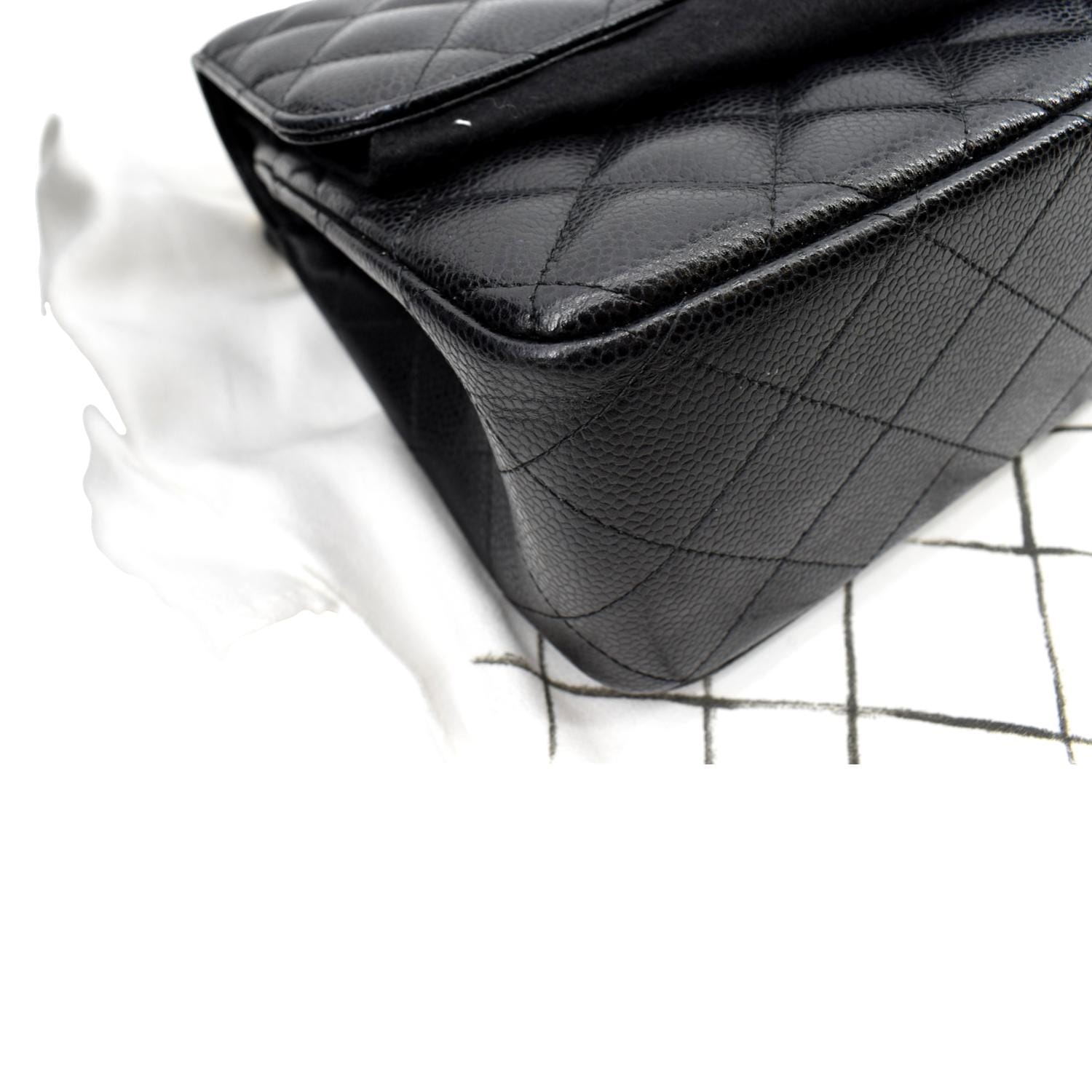 CHANEL Caviar Leathe Jumbo Double Flapr Black Shoulder Bag