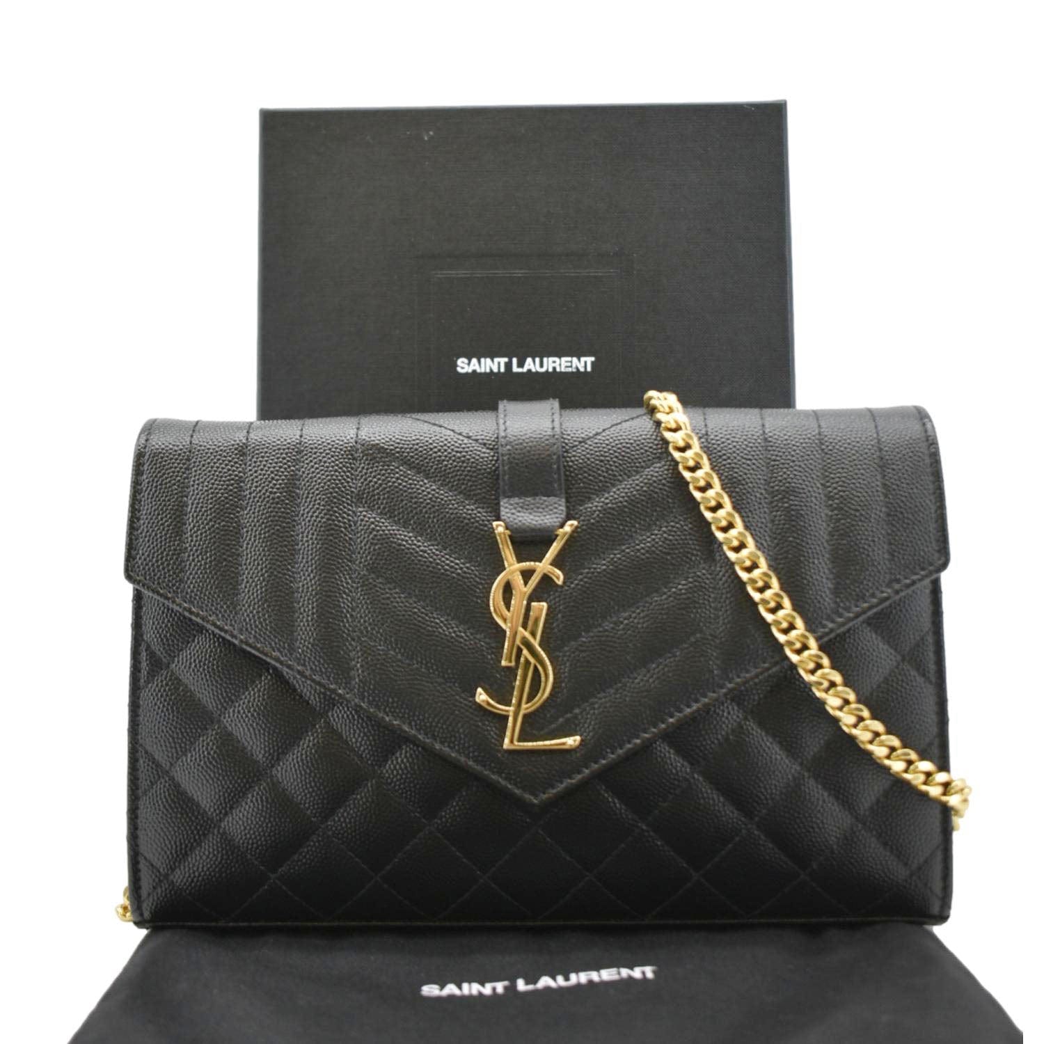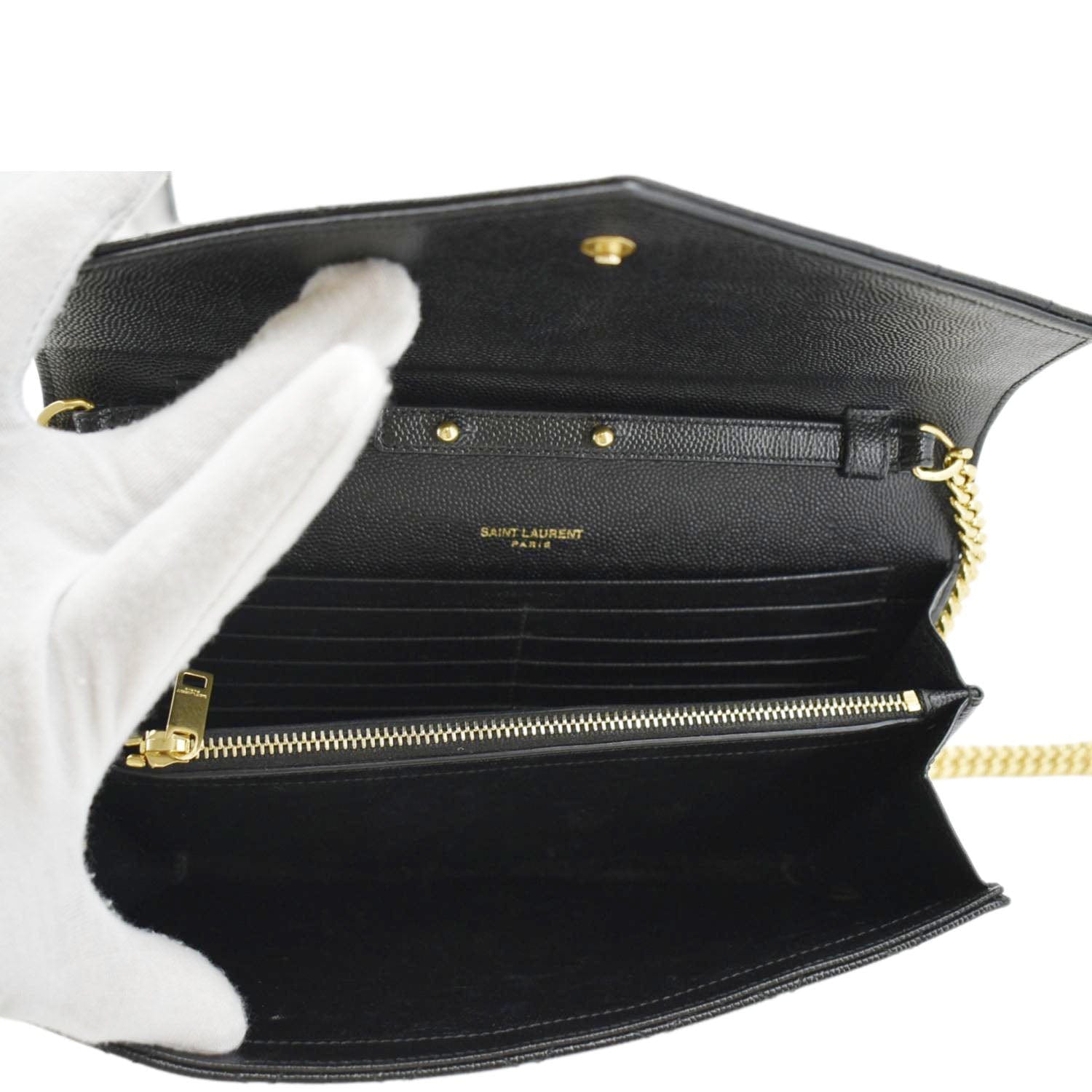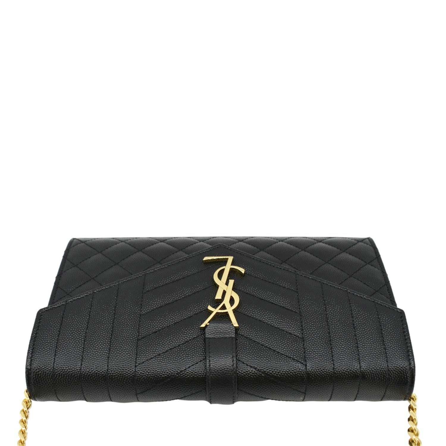 YVES SAINT LAURENT Mixed Matelasse Black Leather Chain Wallet