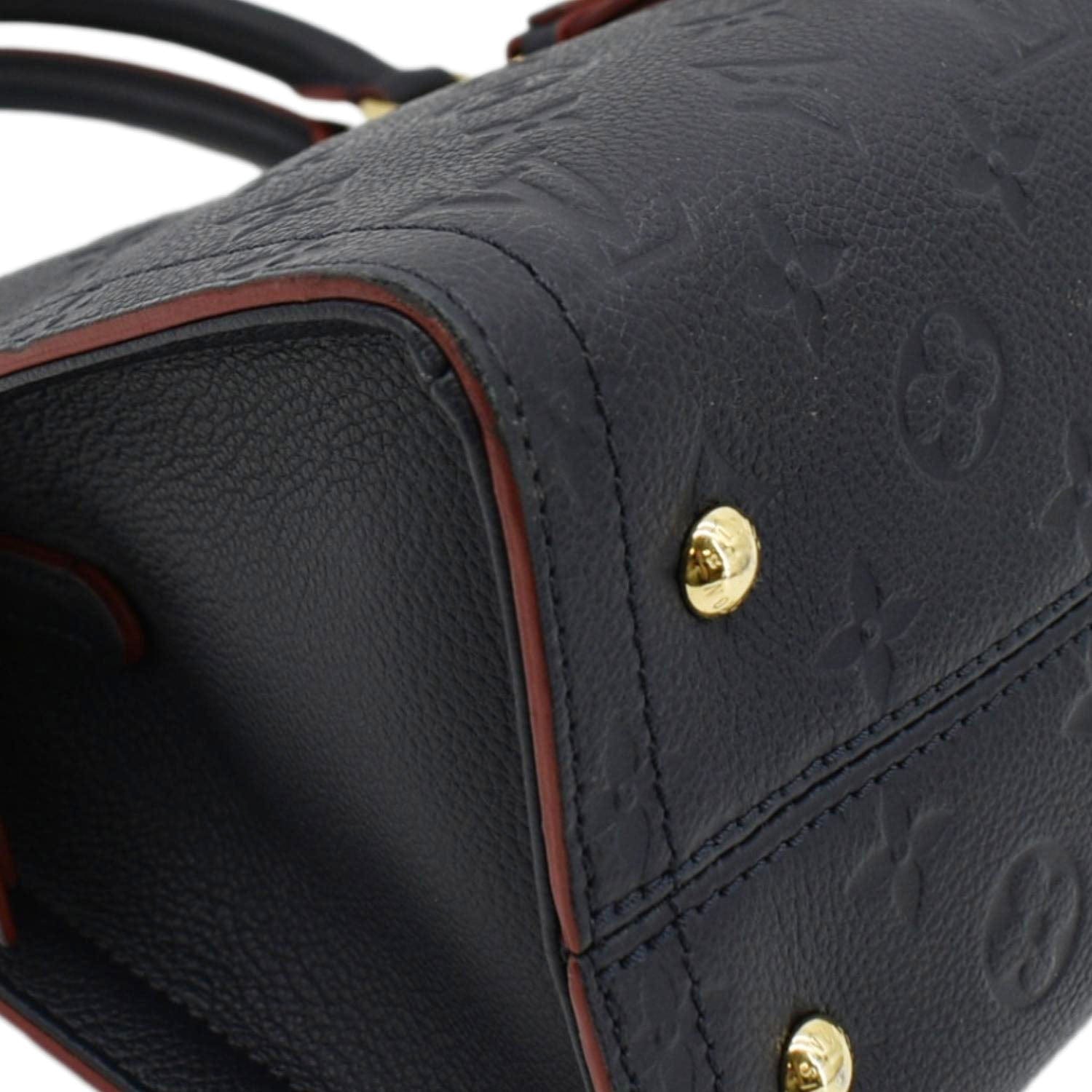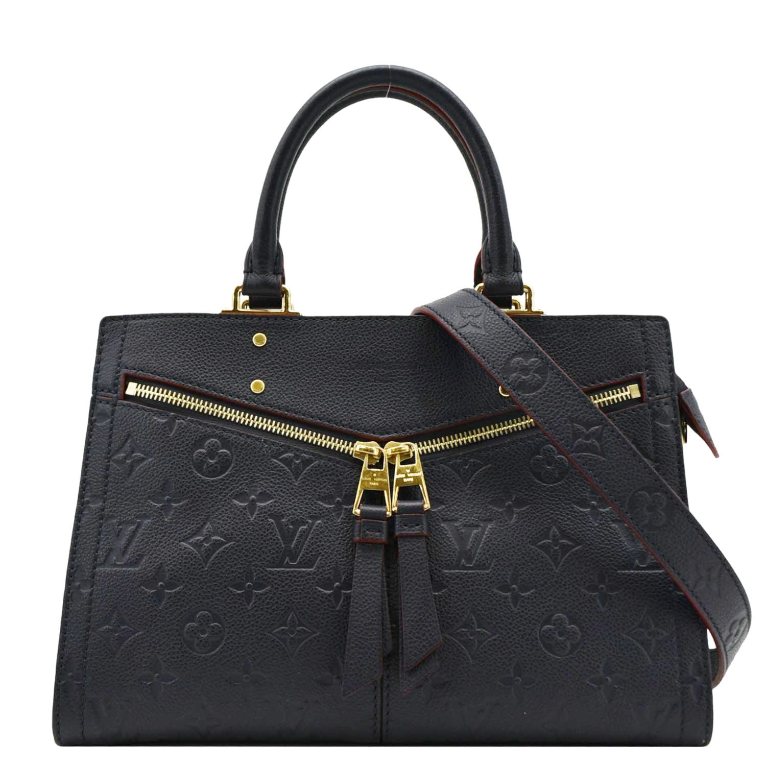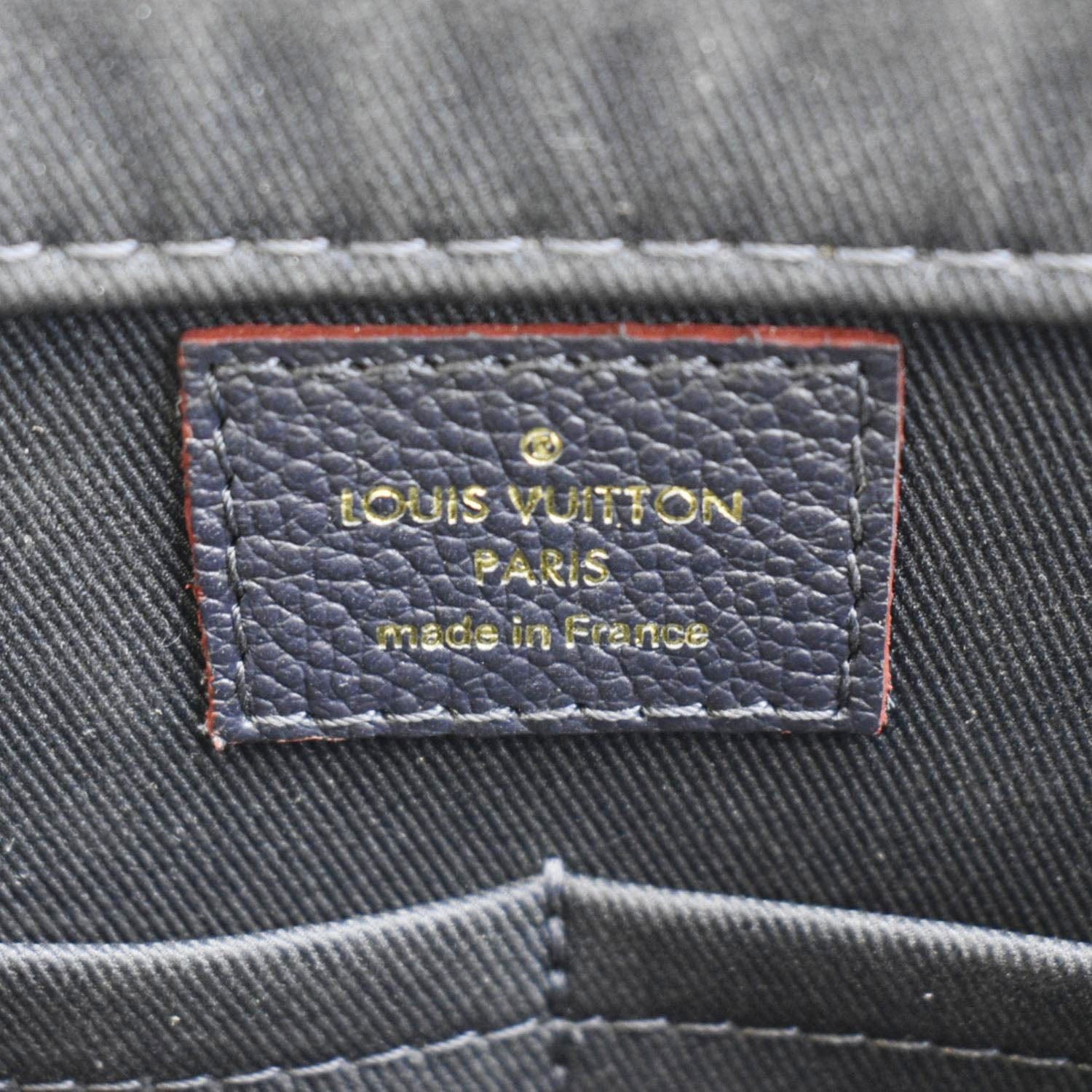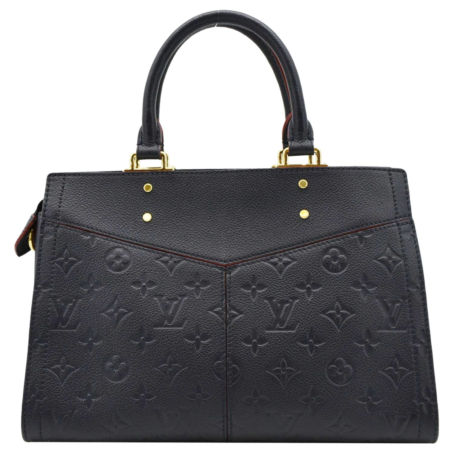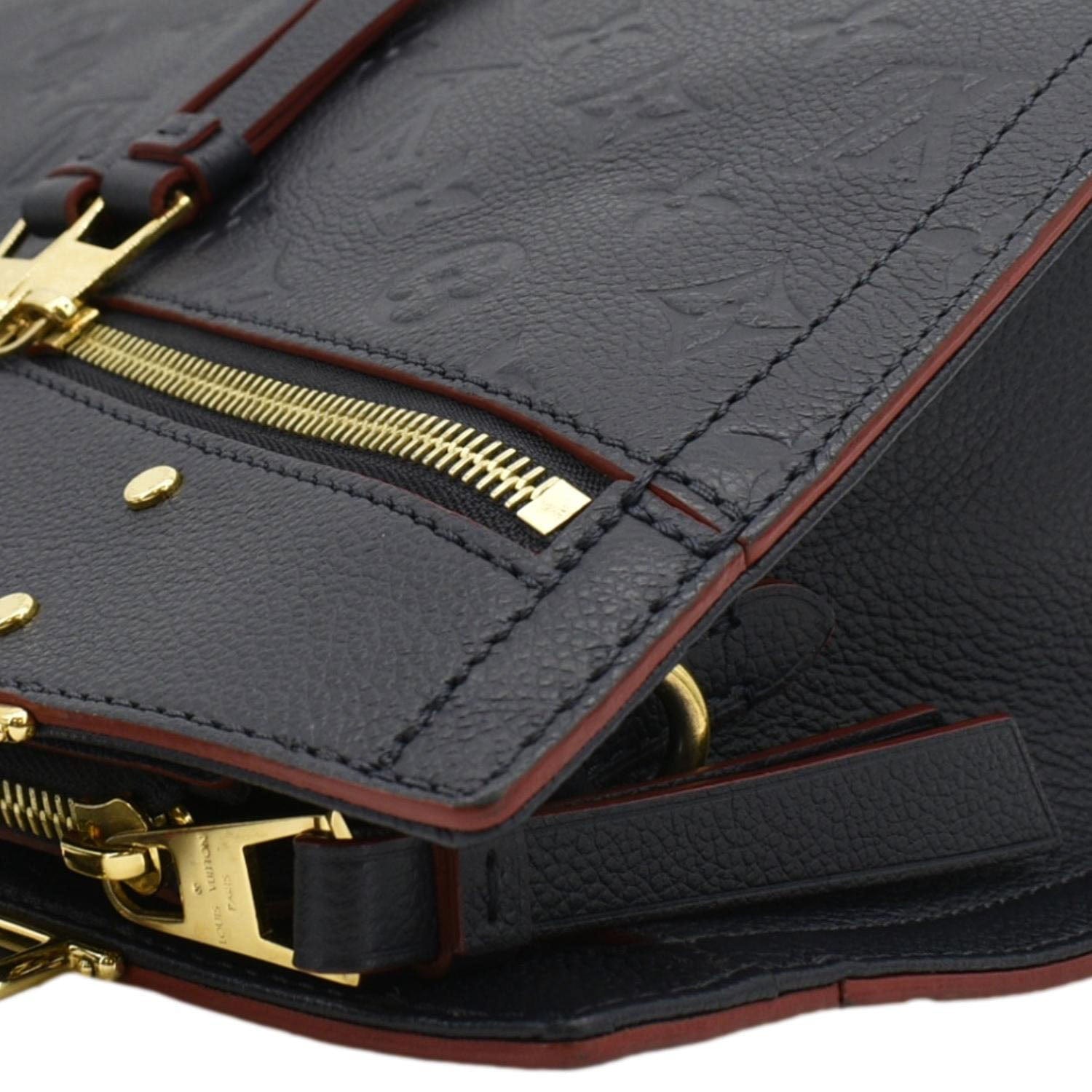 The Louis Vuitton Sully PM in Navy Blue Monogram Empreinte leather showcases a rich navy hue with red accents. This elegant shoulder bag is both stylish and practical, perfect for any occasion.
