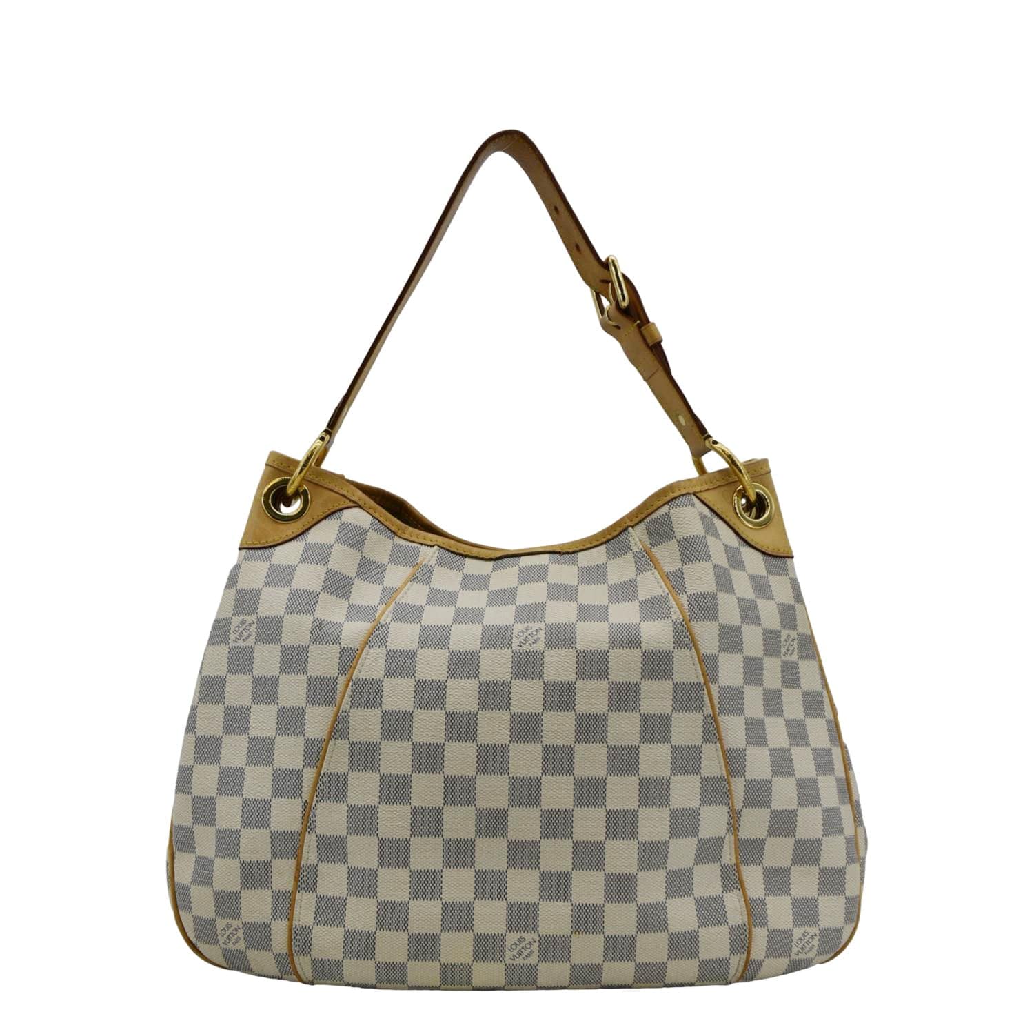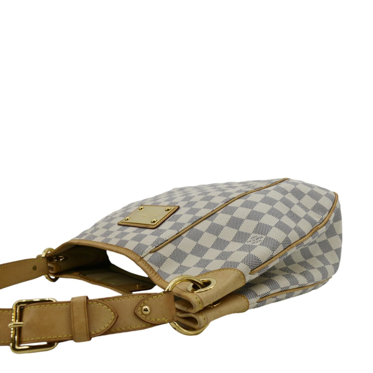 The Louis Vuitton Galliera PM Damier Azur Hobo Bag is a stunning blend of luxury and functionality, perfect for the discerning fashionista. Crafted from the iconic Damier Azur canvas, this bag showcases a chic white and blue checkerboard pattern, epitomizing timeless elegance and sophistication.