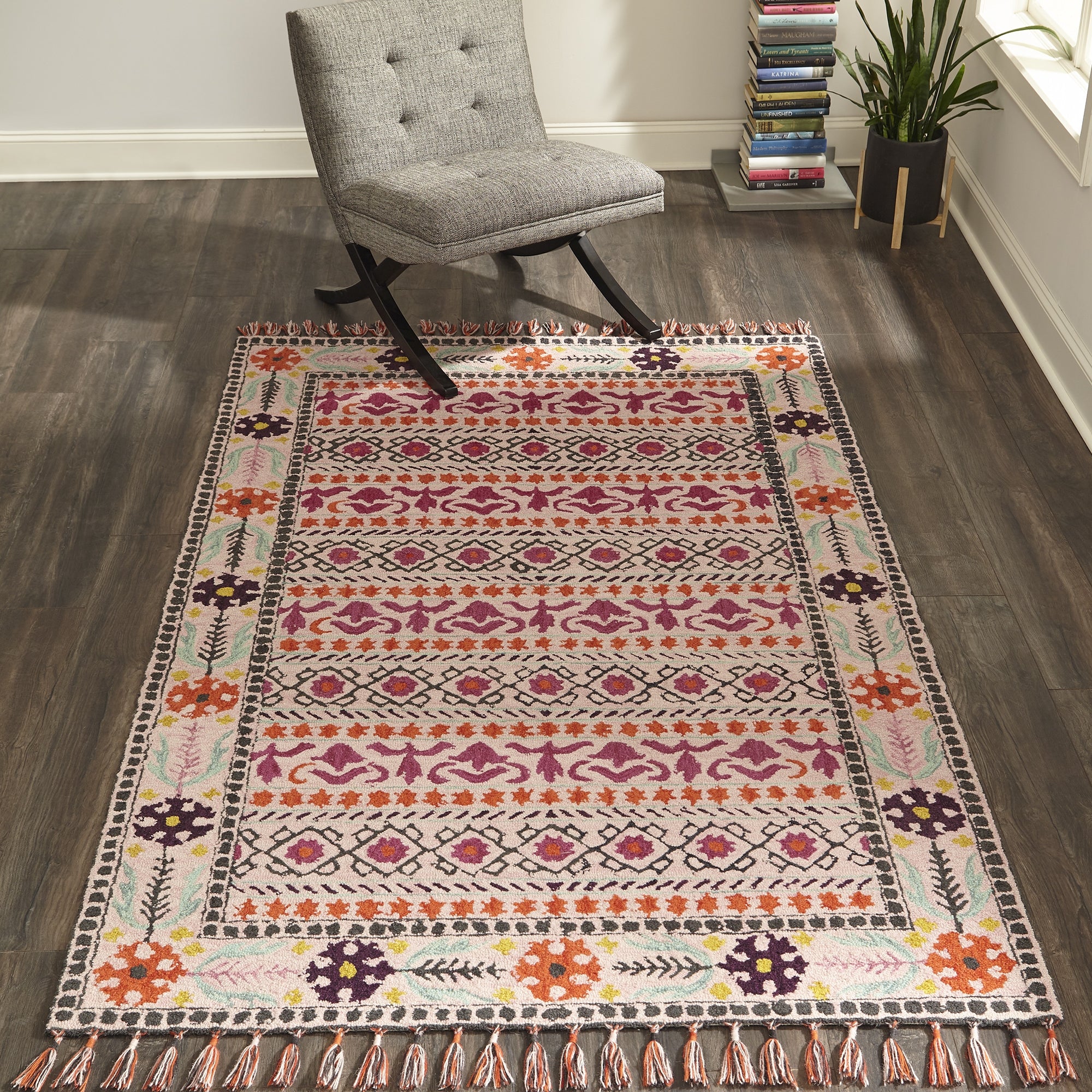 Southwestern motifs get a modern edge in the graphic design elements of this decorative area rug. Available in a stunning array of tribal patterns, each floorcovering features a geometric repeat inspired by iconic tribal prints. Diamonds, crosses, medallions and stars form repeating stripes and intricate linework while tassels at the top and bottom of the rug accentuate the exotic vibe of the with a fun, fringed border. Exceptional in style and composition, each rug is han