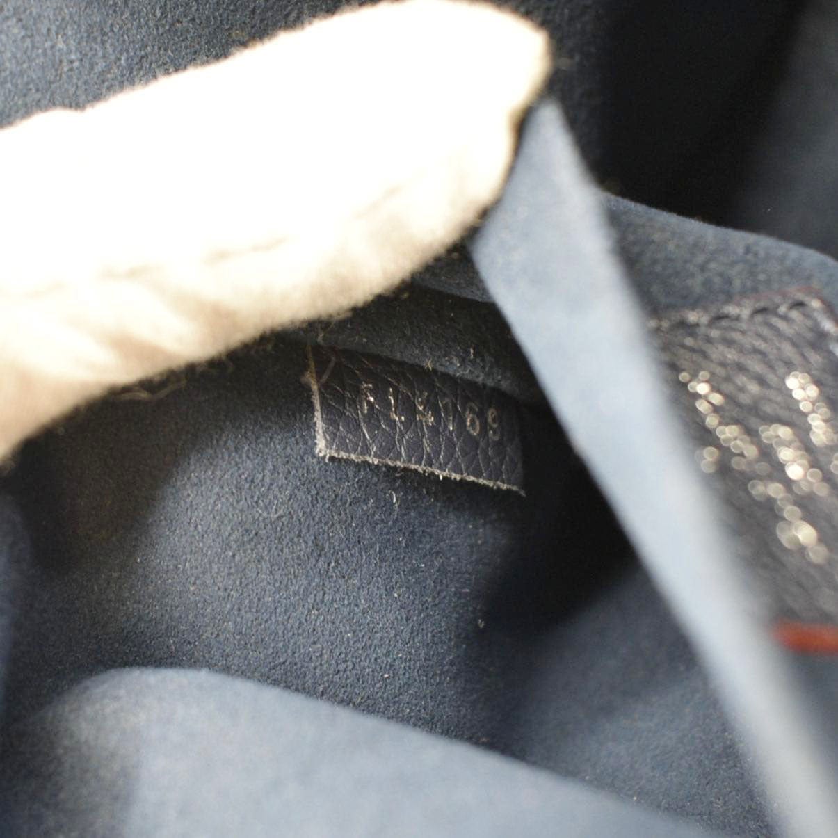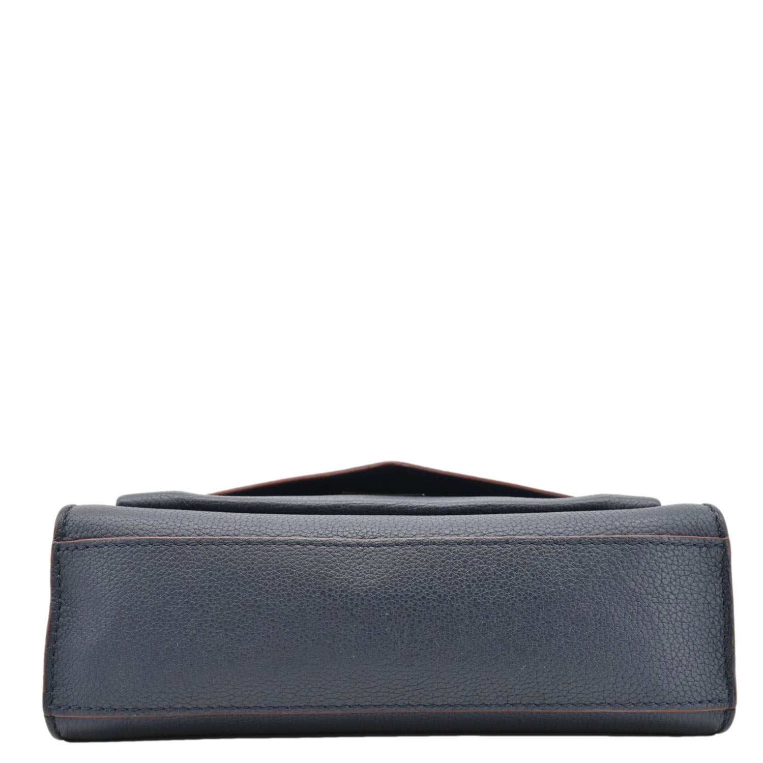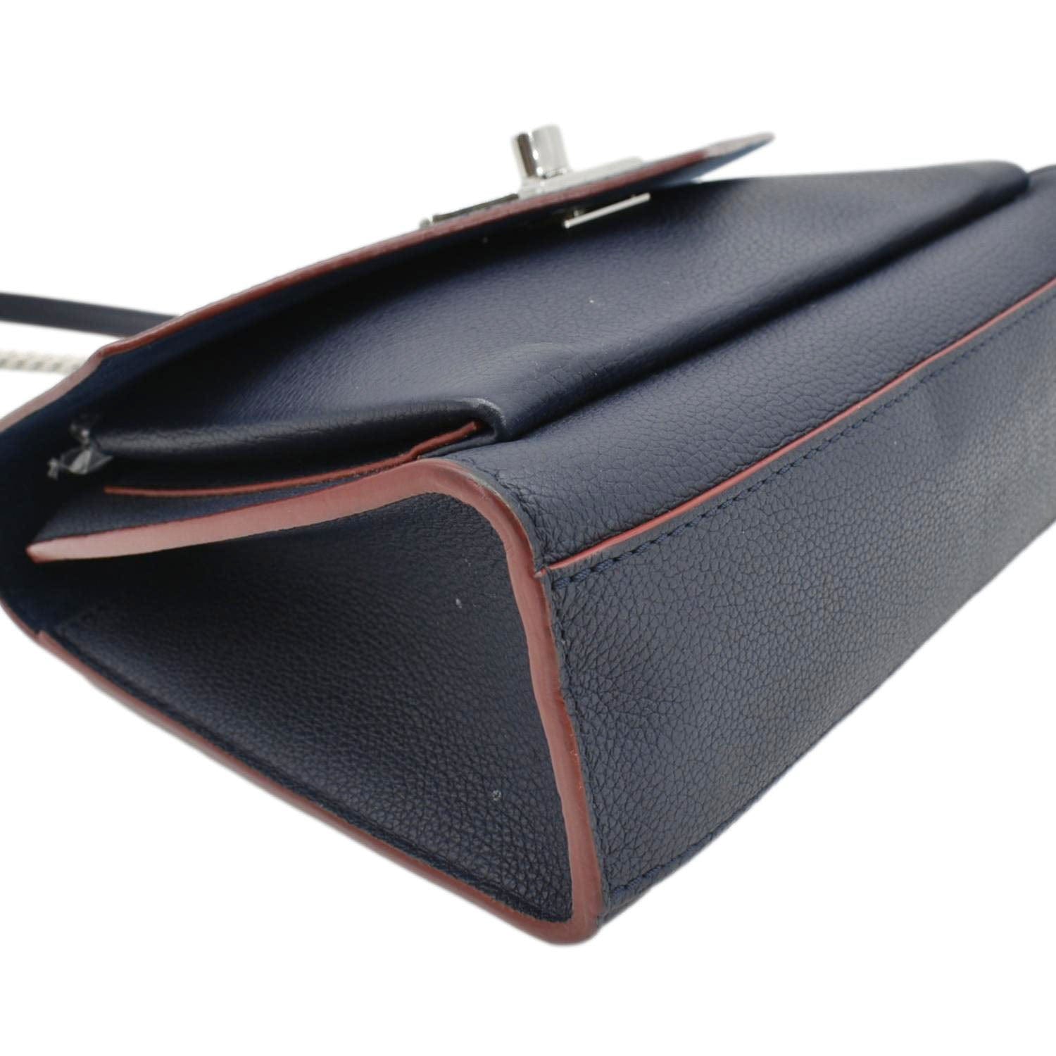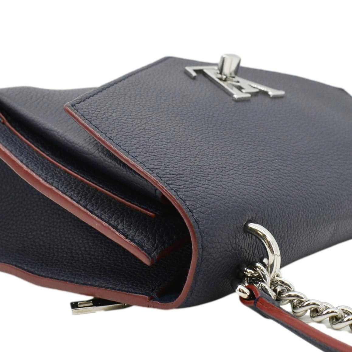 The LOUIS VUITTON Mylockme shoulder bag, crafted from navy blue leather, features a sleek design with a chain strap, blending sophistication with functionality. Its versatile style is perfect for both casual and formal occasions.