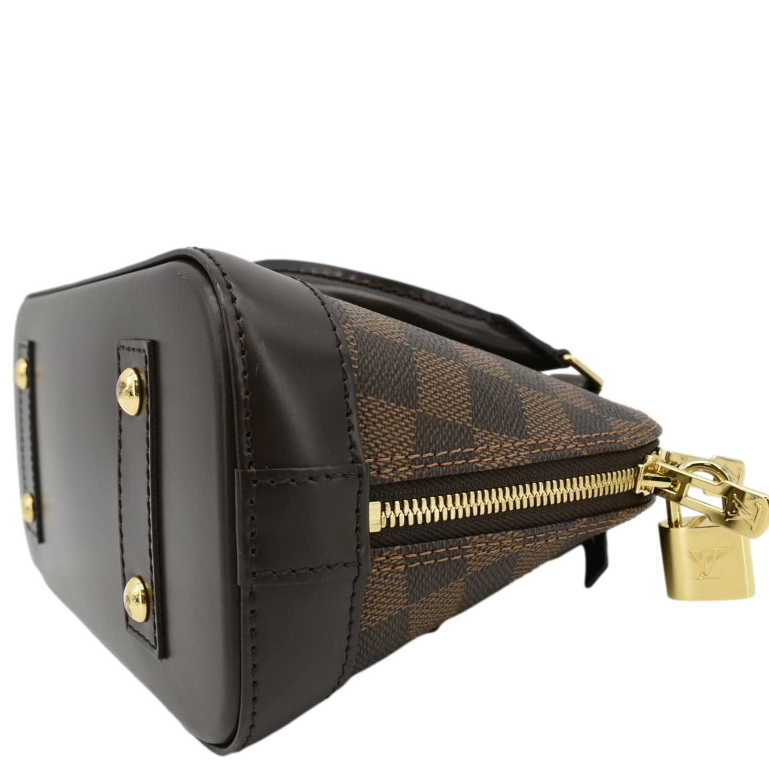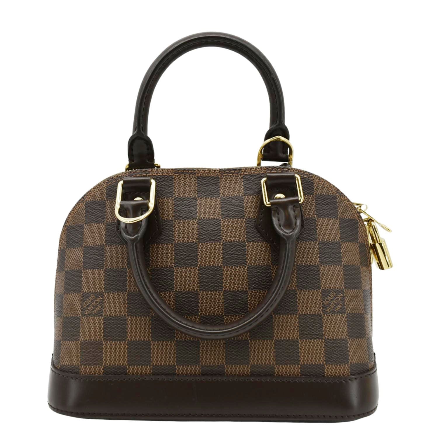 Elevate your elegance with the iconic LOUIS VUITTON Alma BB Damier Ebene Satchel Bag in classic brown. Crafted with signature Damier Ebene canvas, it seamlessly blends style and functionality for a timeless accessory.