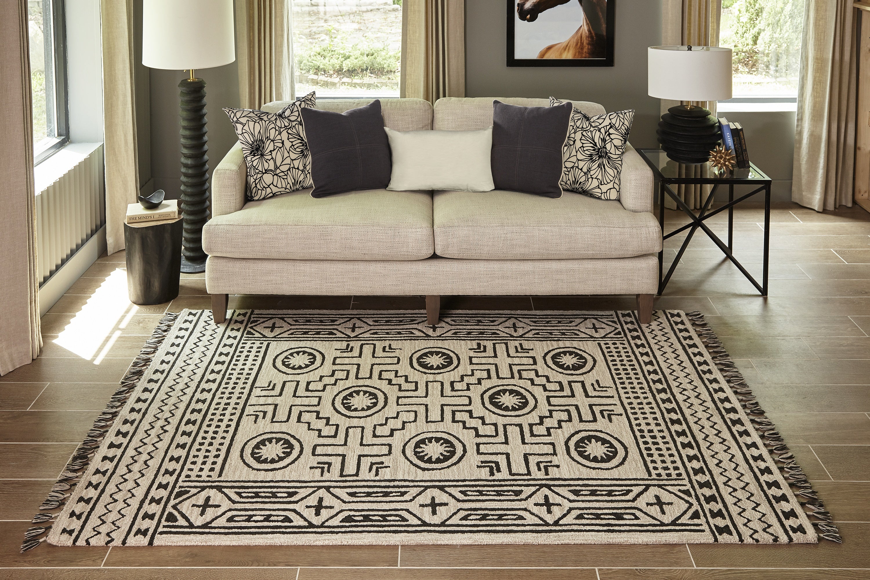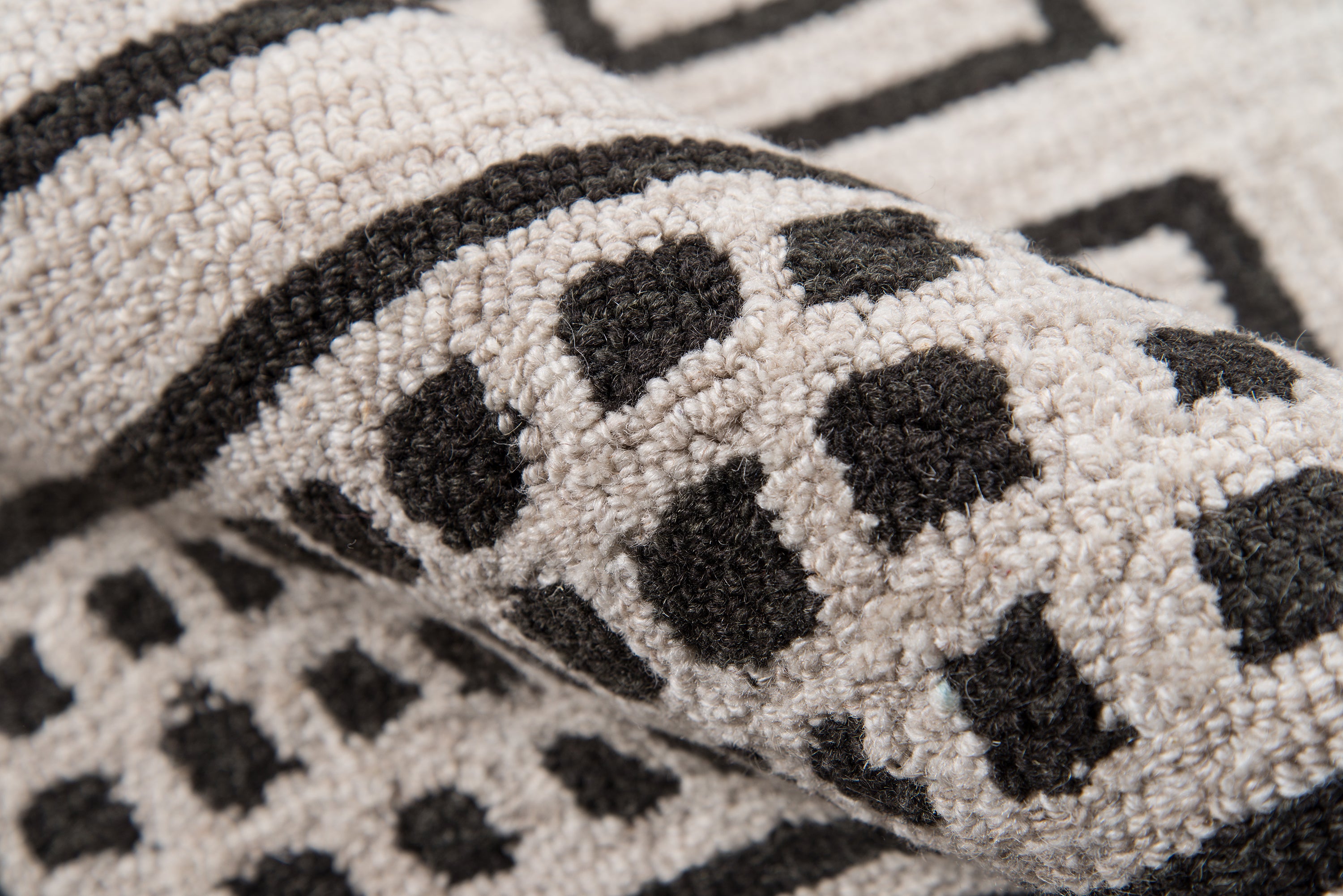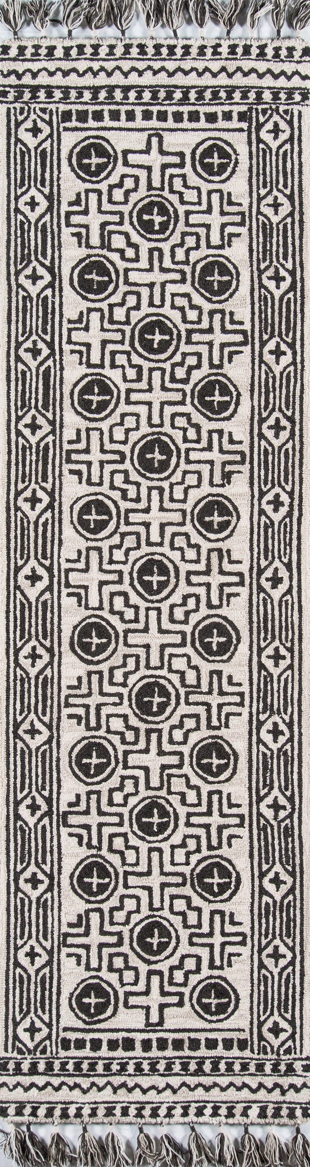 Southwestern motifs get a modern edge in the graphic design elements of this decorative area rug. Available in a stunning array of tribal patterns, each floorcovering features a geometric repeat inspired by iconic tribal prints. Diamonds, crosses, medallions and stars form repeating stripes and intricate linework while tassels at the top and bottom of the rug accentuate the exotic vibe of the with a fun, fringed border. Exceptional in style and composition, each rug is hand hooked from natural wool threads.