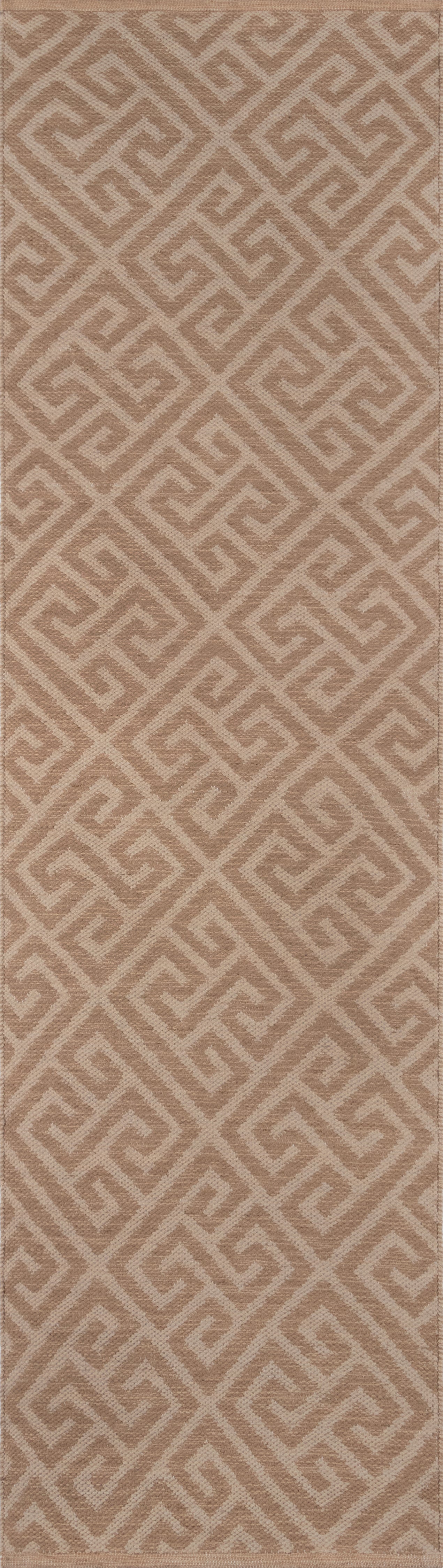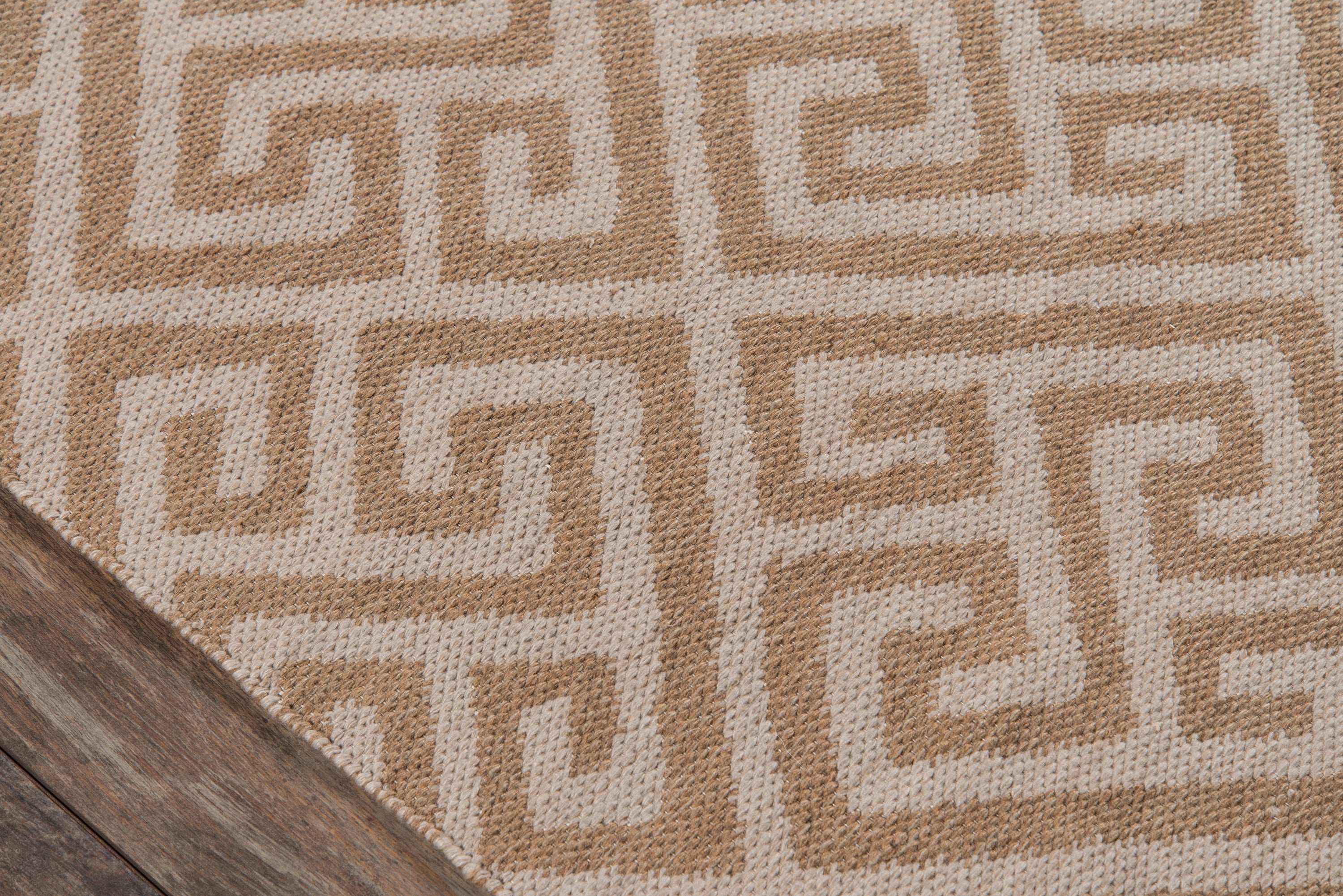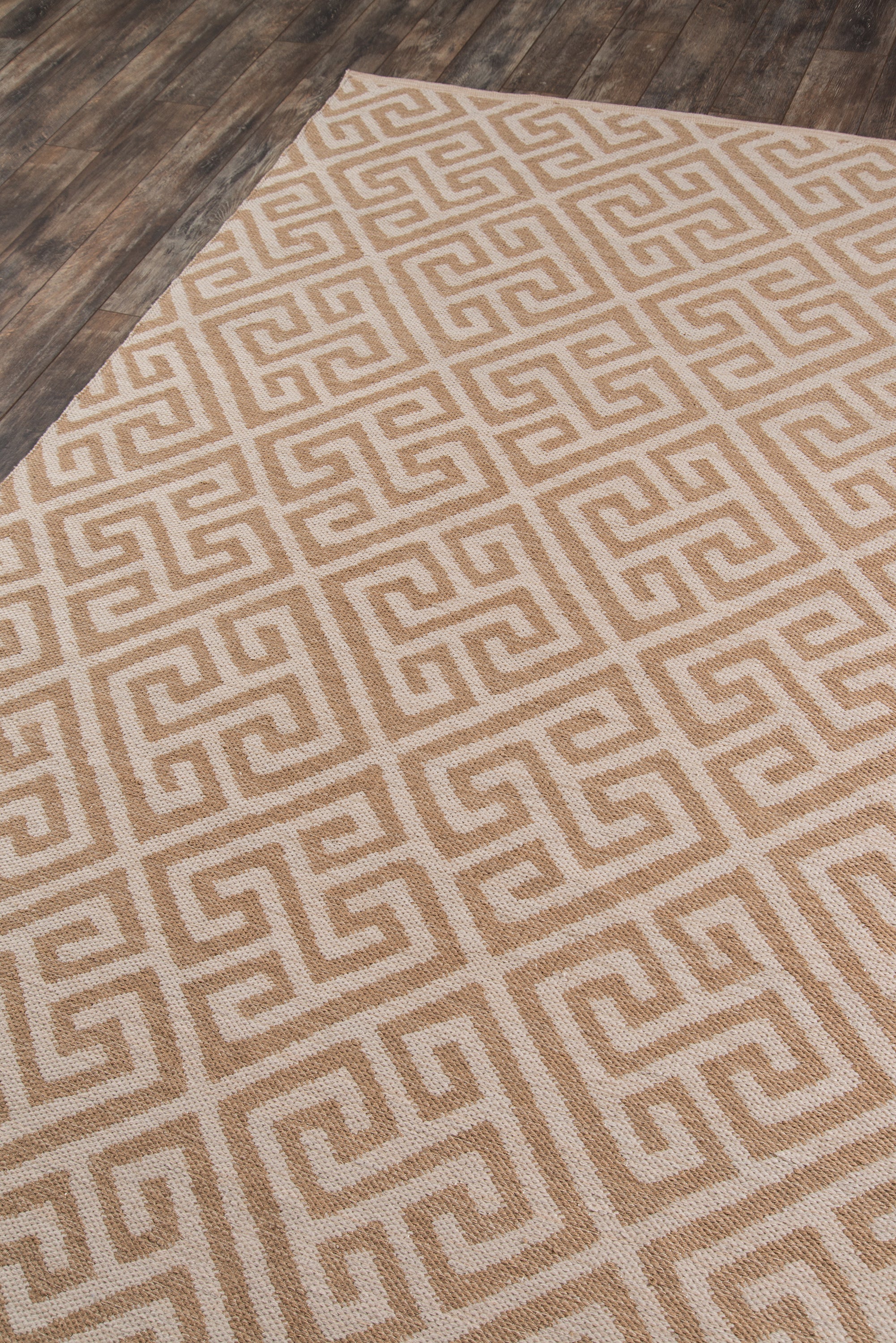Shake up the scenery with the graphic all-over pattern of this indoor/outdoor area rug. A true statement piece in sun or shade, the tonal brown-on-brown palette blends beautifully among natural surroundings, while meandering Greek key motifs define a patio or pool deck with a punch of geometric panache. Exposure to the elements are no match for handwoven construction and UV resistant recycled plastic fibers that retain color and surface quality as they transition from season to season. The weatherproof floorcovering is a distinctive accent rug within the Madcap Cottage by Momeni collection that artfully addresses the label’s love of leisure. Bring the adventure home.