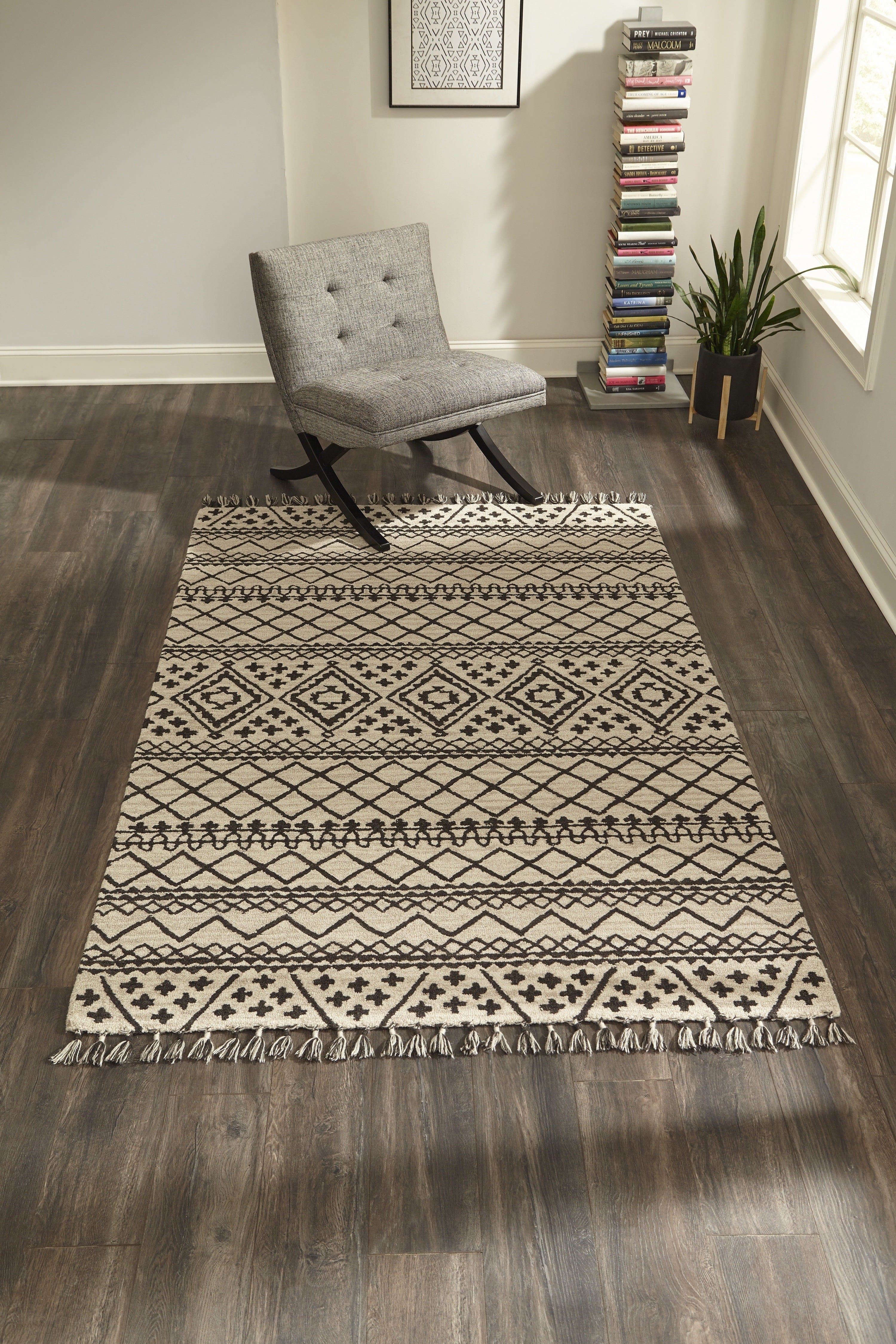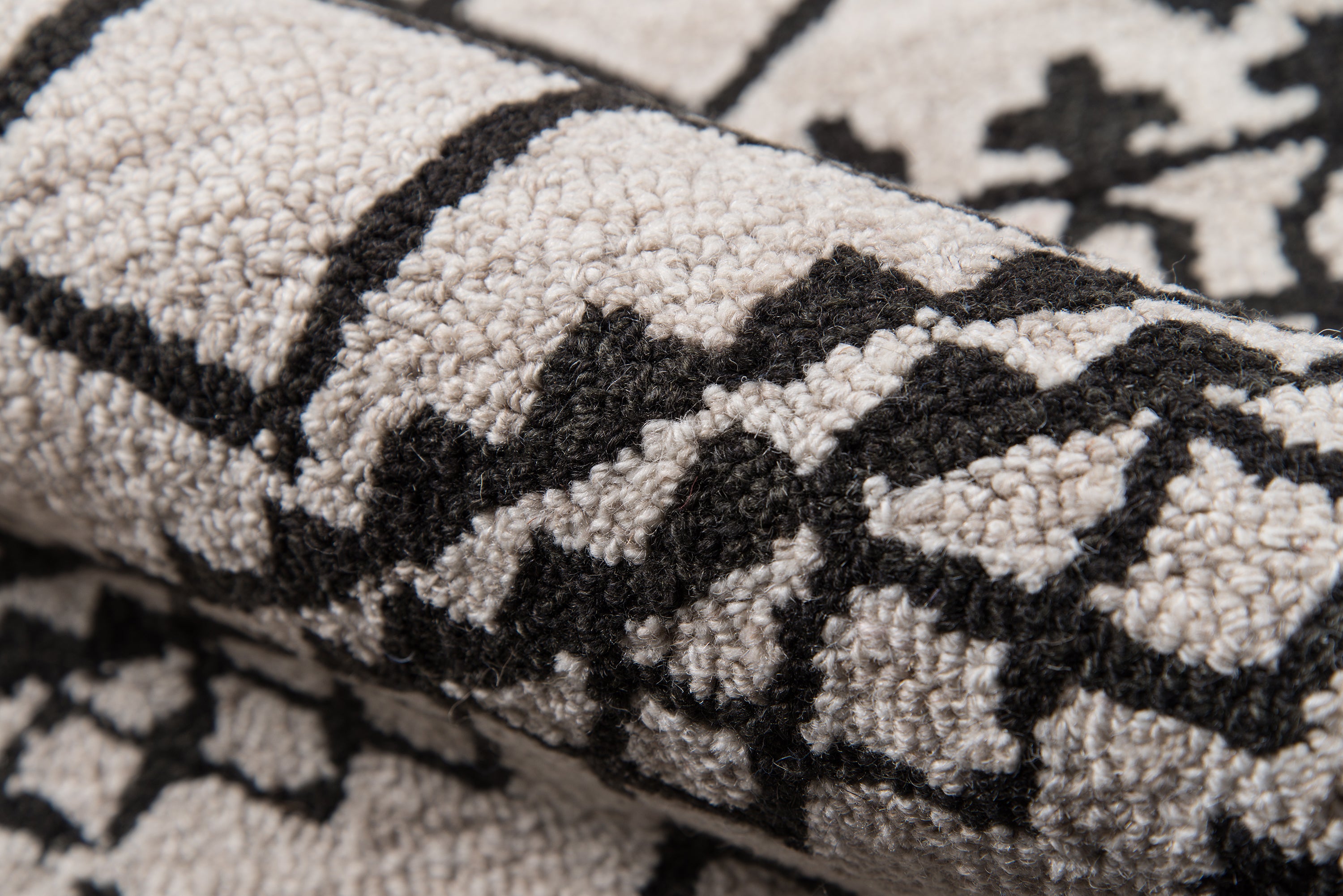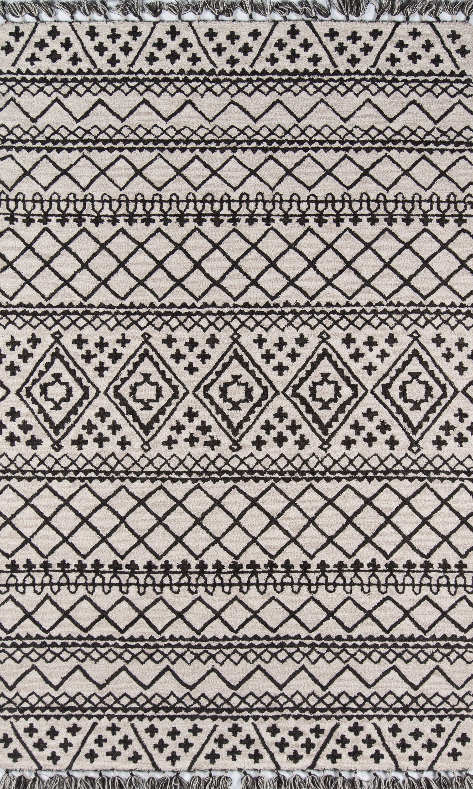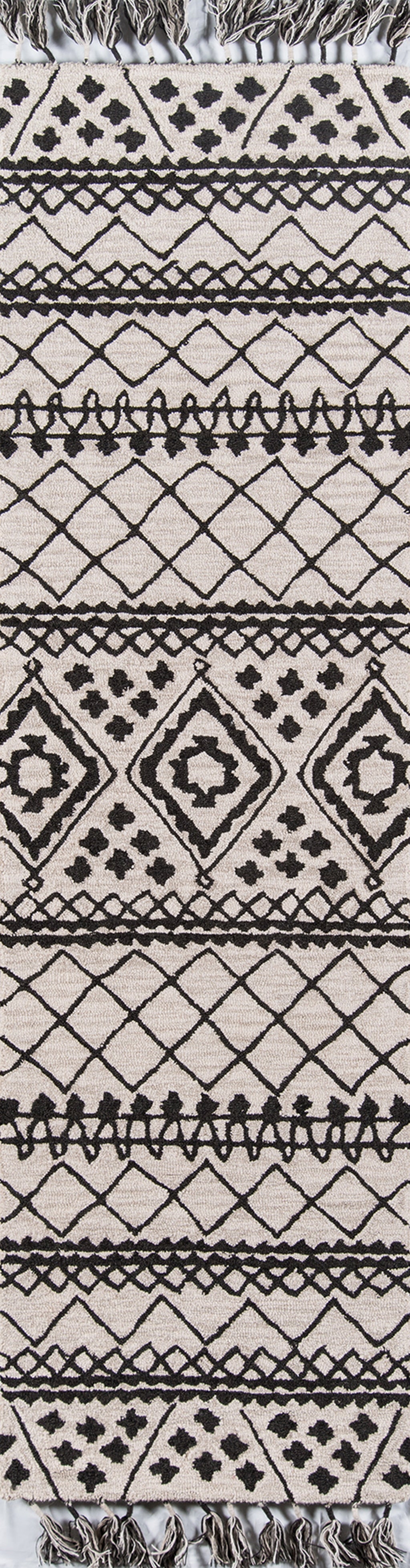 Southwestern motifs get a modern edge in the graphic design elements of this decorative area rug. Available in a stunning array of tribal patterns, each floorcovering features a geometric repeat inspired by iconic tribal prints. Diamonds, crosses, medallions and stars form repeating stripes and intricate linework while tassels at the top and bottom of the rug accentuate the exotic vibe of the with a fun, fringed border. Exceptional in style and composition, each rug is hand hooked from natural wool threads.