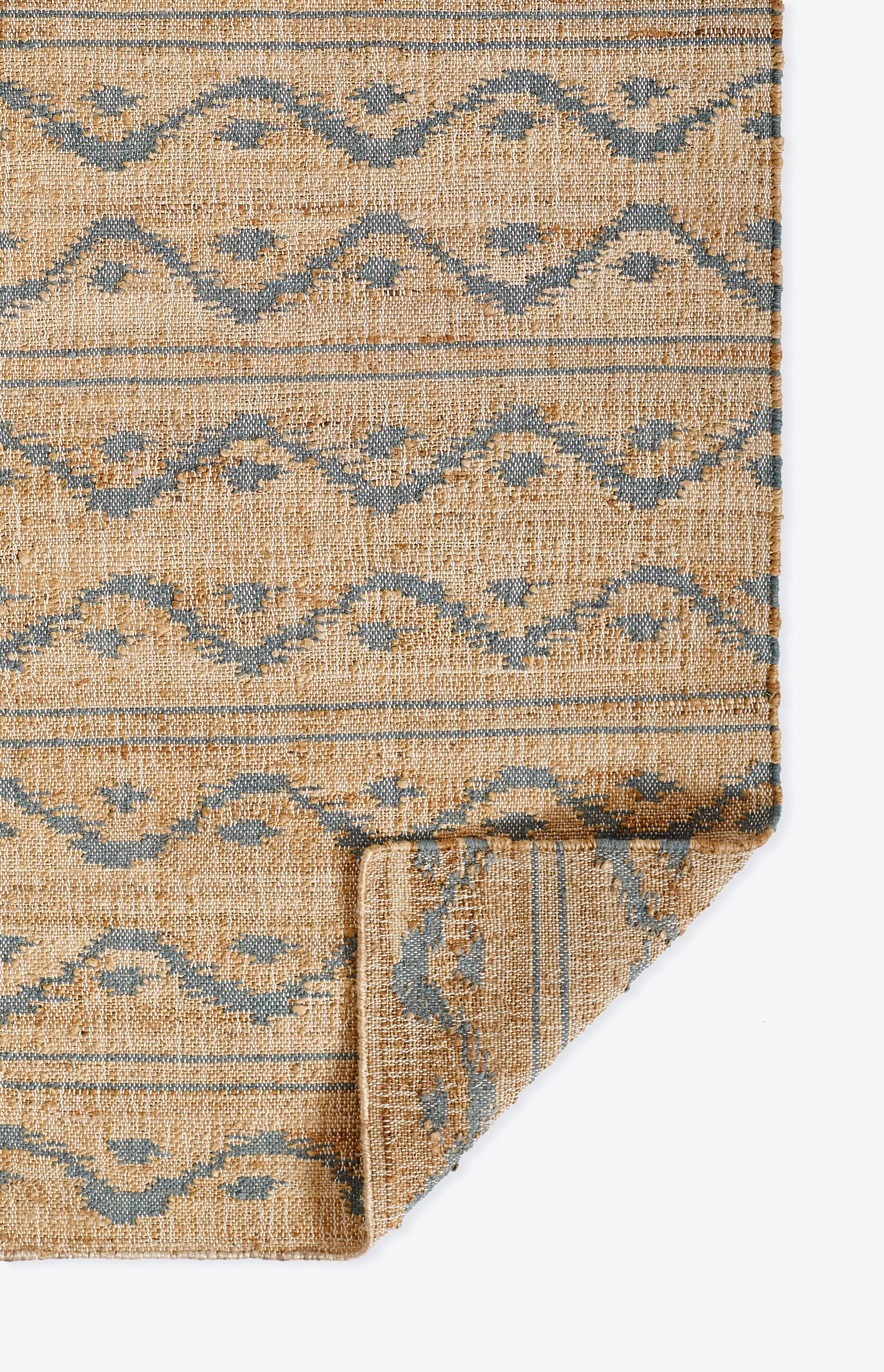 This beautifully handwoven jute and wool rug is brought to you from the Orchard Collection by Erin Gates. With an ebbed pattern reminiscent of the tide coming and leaving the shoreline, and a soft blue contrasting color against the natural jute, you will truly feel a sense of serenity and flow from this rug.