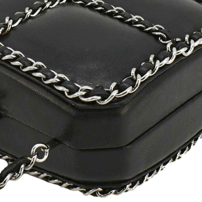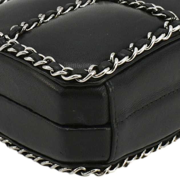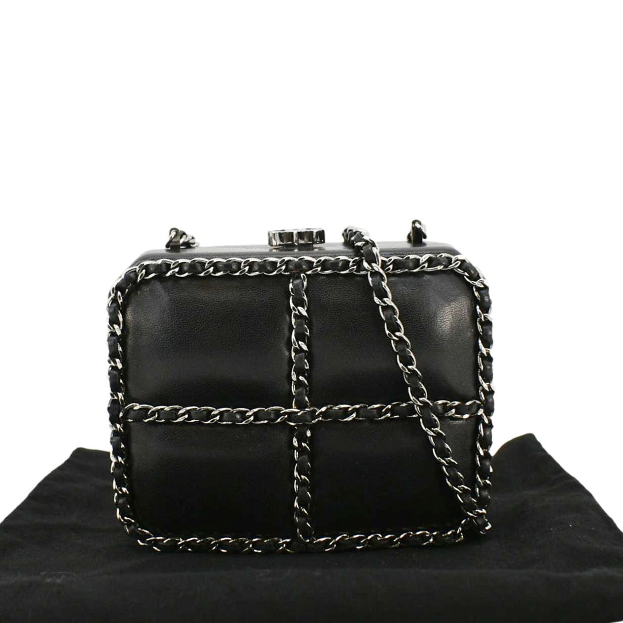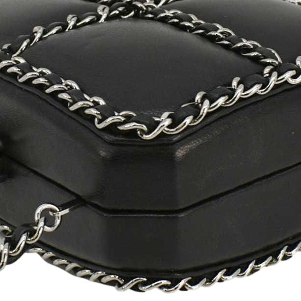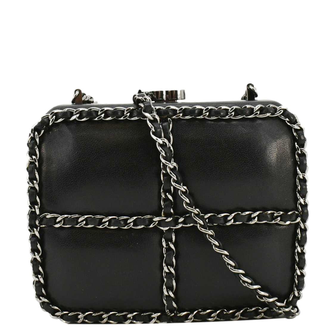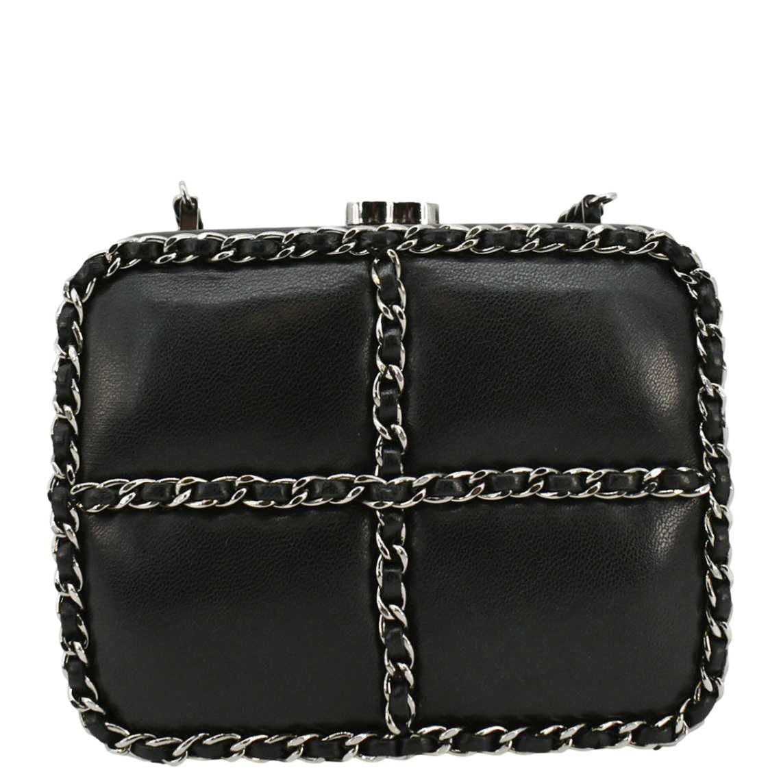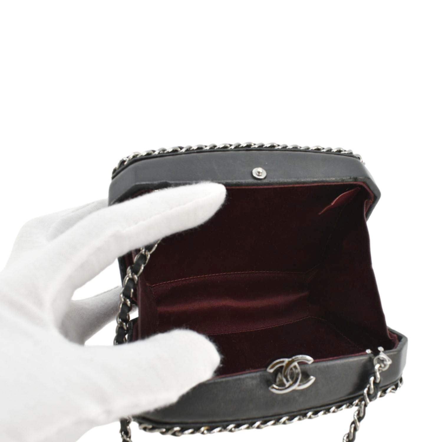 The CHANEL Minaudiere Lambskin Leather Chain Clutch in Black exudes luxury with its supple lambskin leather and chic design. This elegant clutch features a chain strap for versatile wear, making it perfect for sophisticated evening events.