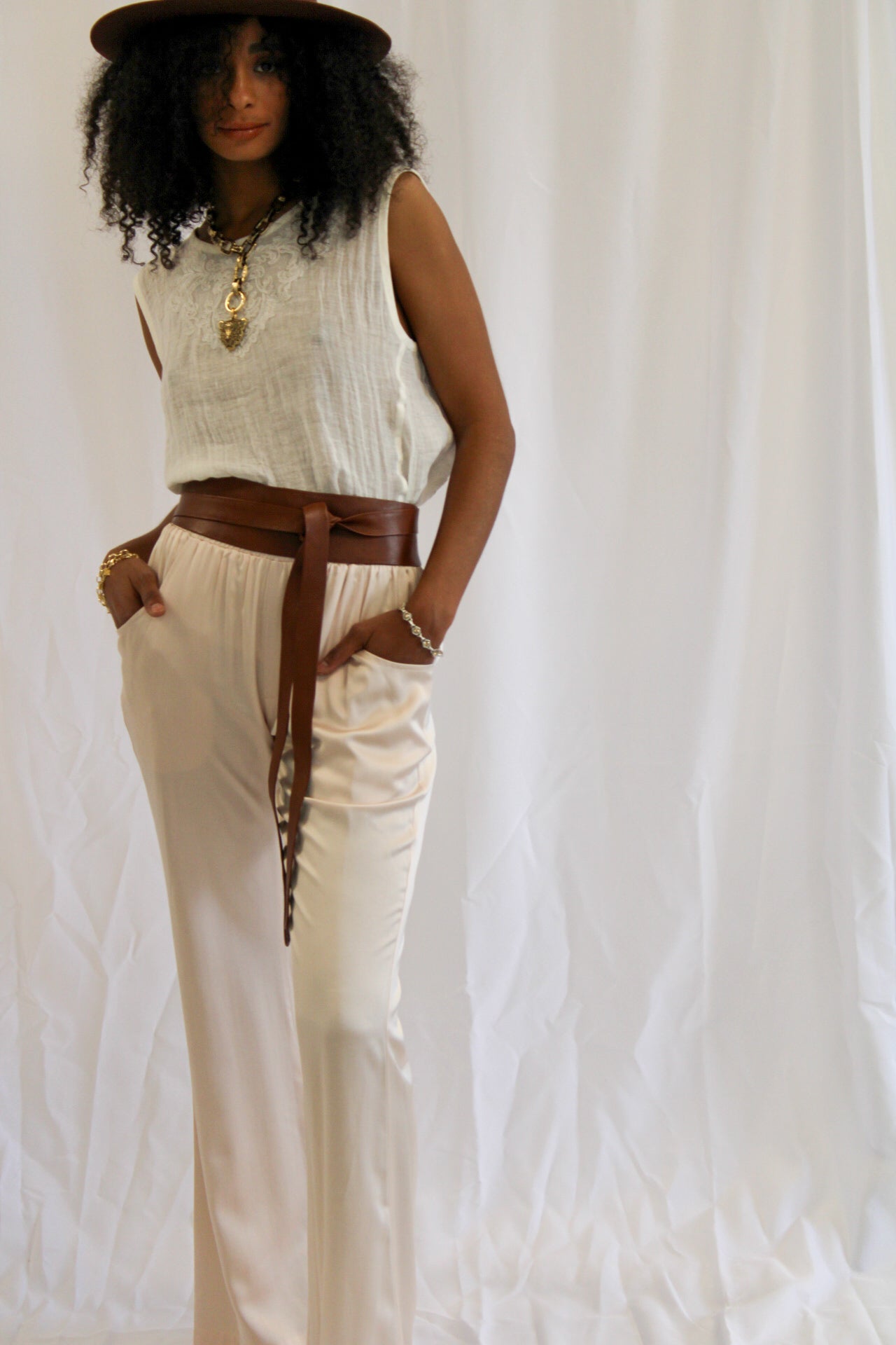 Good - The Item shows signs of use, including stains and watermarks on the leather, some inside dirt marks, and tarnish on gold color hardware. There is no unpleasant smell within the bag.